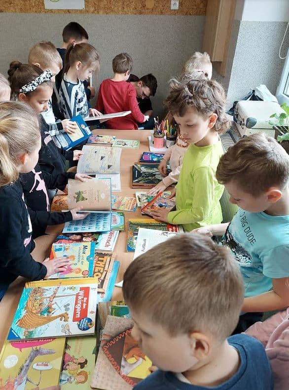 W dniu 05.04.22r., w ramach projektu „Winterreise”, odbyło się w naszej szkole spotkanie z przedstawicielami Centralnej Biblioteki J. von Eichendorffa w Opolu. Celem spotkania było zapoznanie uczniów klas II i III z literaturą niemieckojęzyczną oraz ukazaniem roli książki w dobie komputerów. Warsztaty odbywały się w języku niemieckim i prowadził je pan Marek Dziony. Uczniowie dowiedzieli się jak ważne jest czytelnictwo zarówno w języku polskim, jak i w obcych językach. Również chętnie angażowali się w zadania warsztatowe. Na koniec, w ramach konkursu, chętni uczniowie wypożyczyli książkę niemieckojęzyczną, do której będą robili plakat. Dzieci były bardzo aktywne i z zaangażowaniem brały udział w zajęciach.