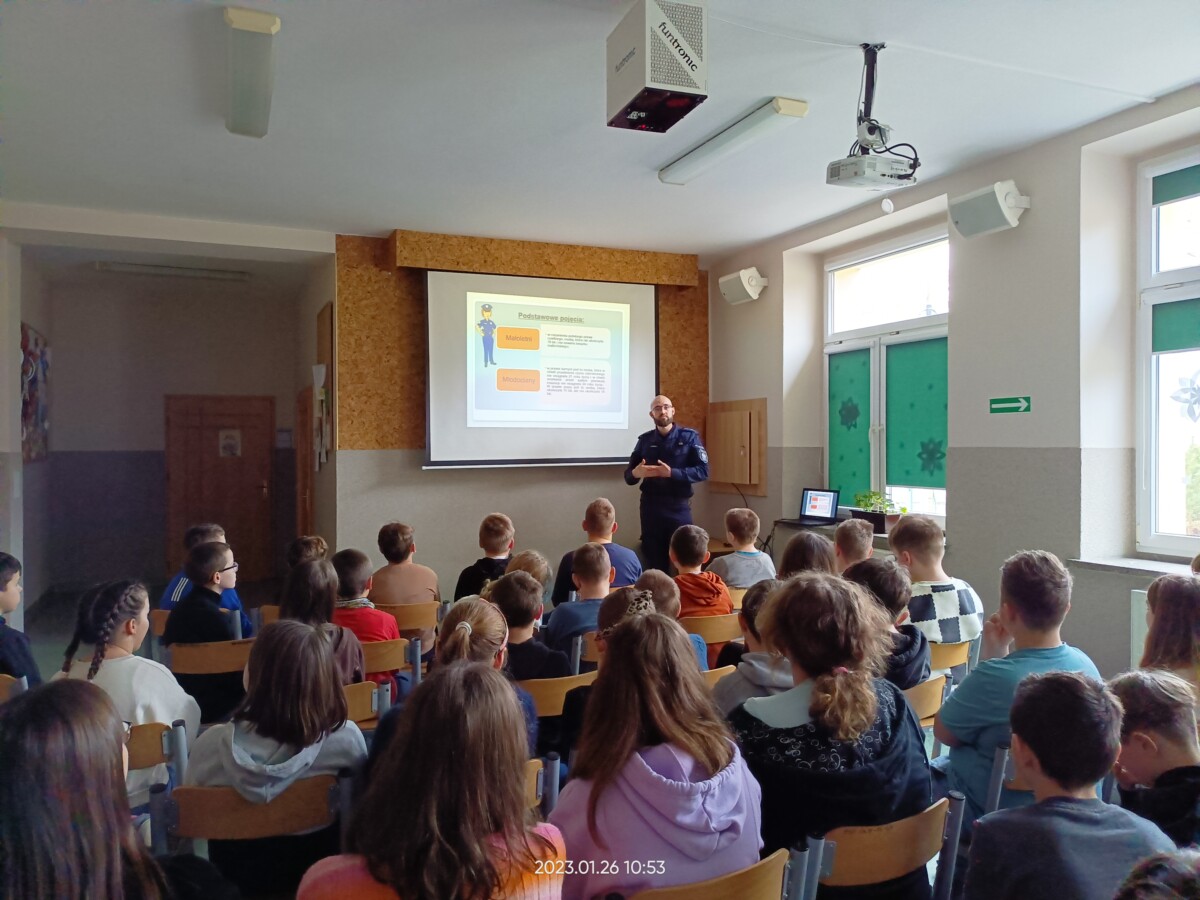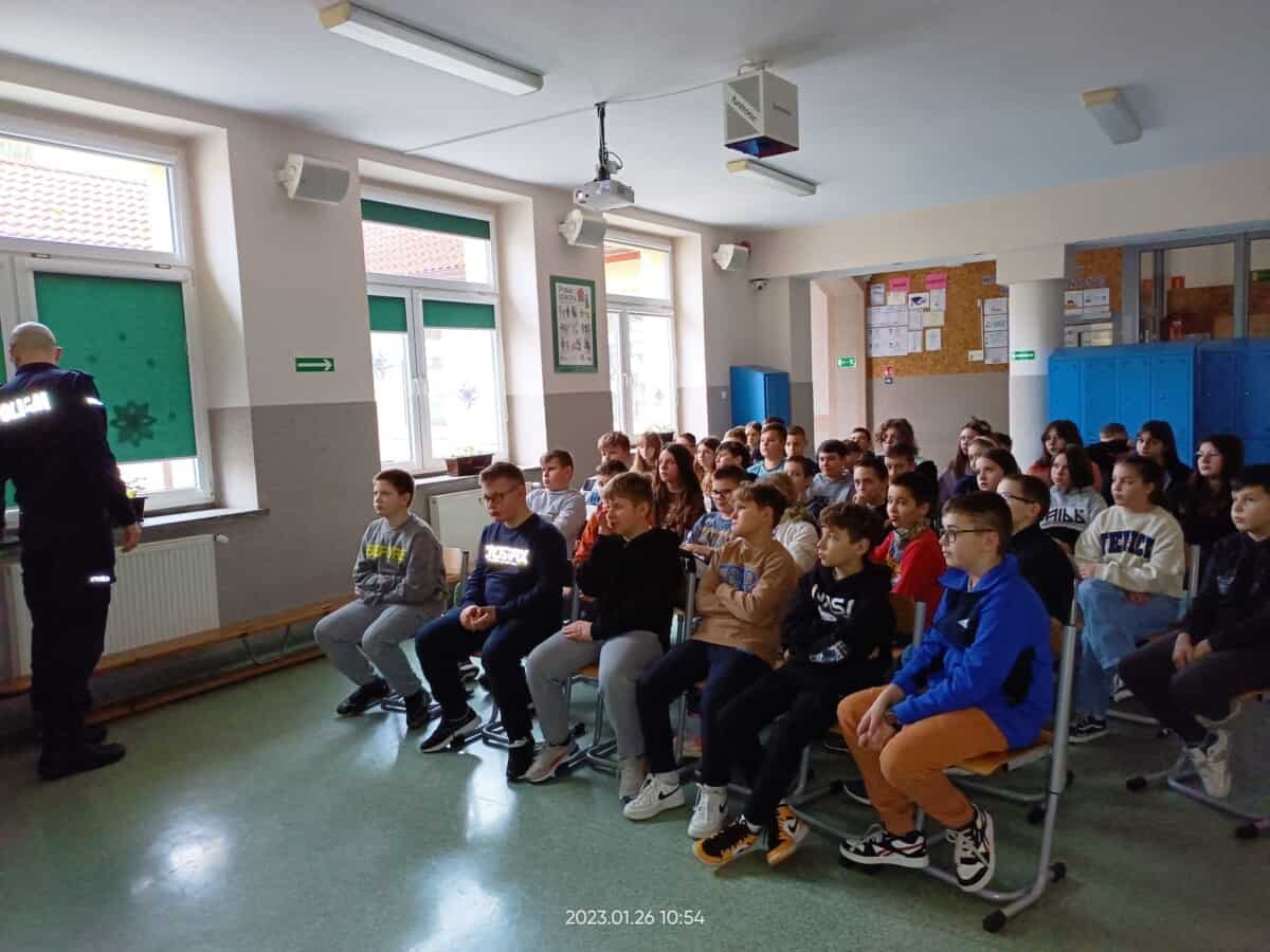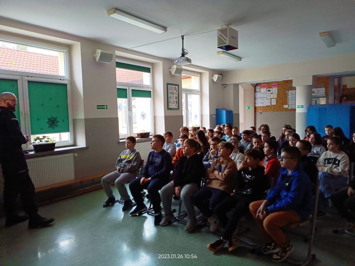 26 stycznia w naszej szkole gościł pan Mieszko Orski młodszy aspirant z Wydziału Prewencji Komendy Miejskiej Policji w Opolu. W spotkaniu uczestniczyli uczniowie klas V – VIII.