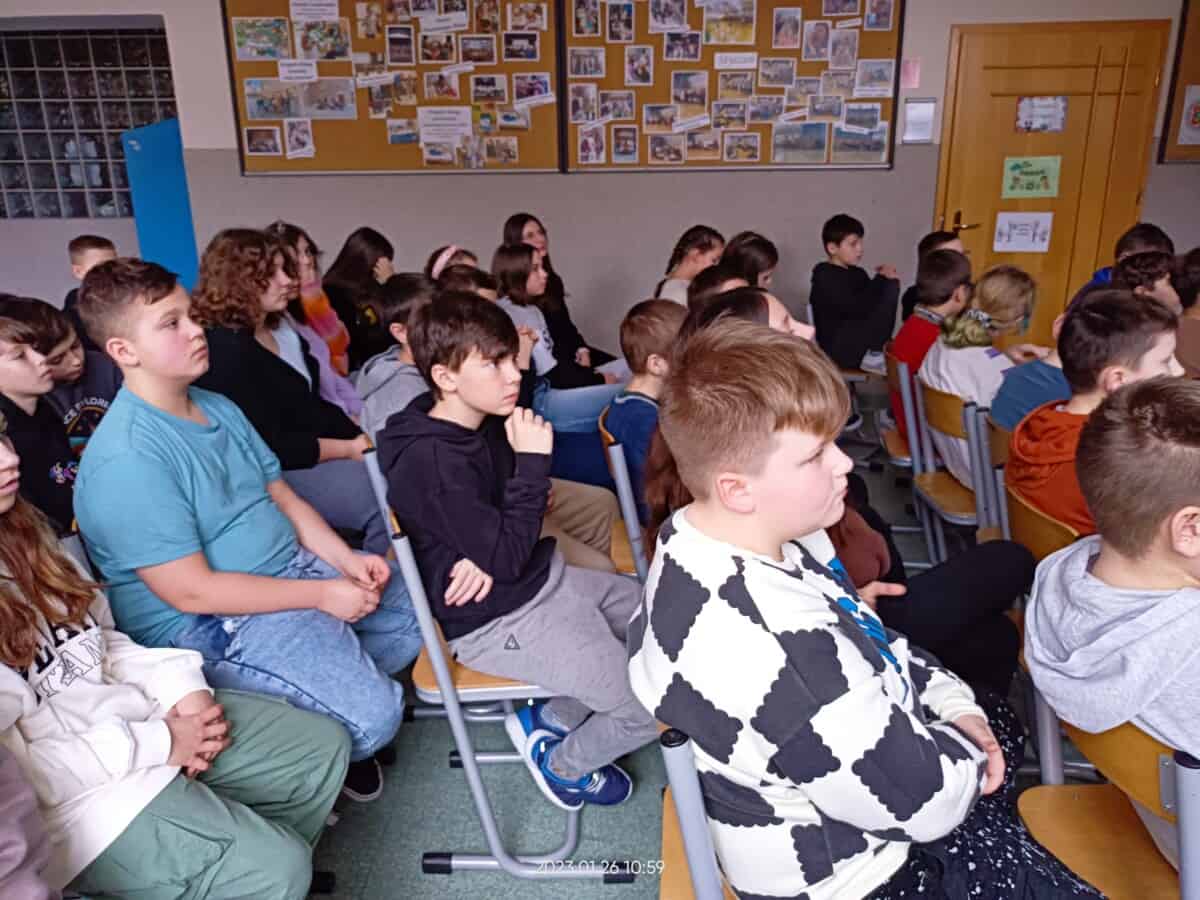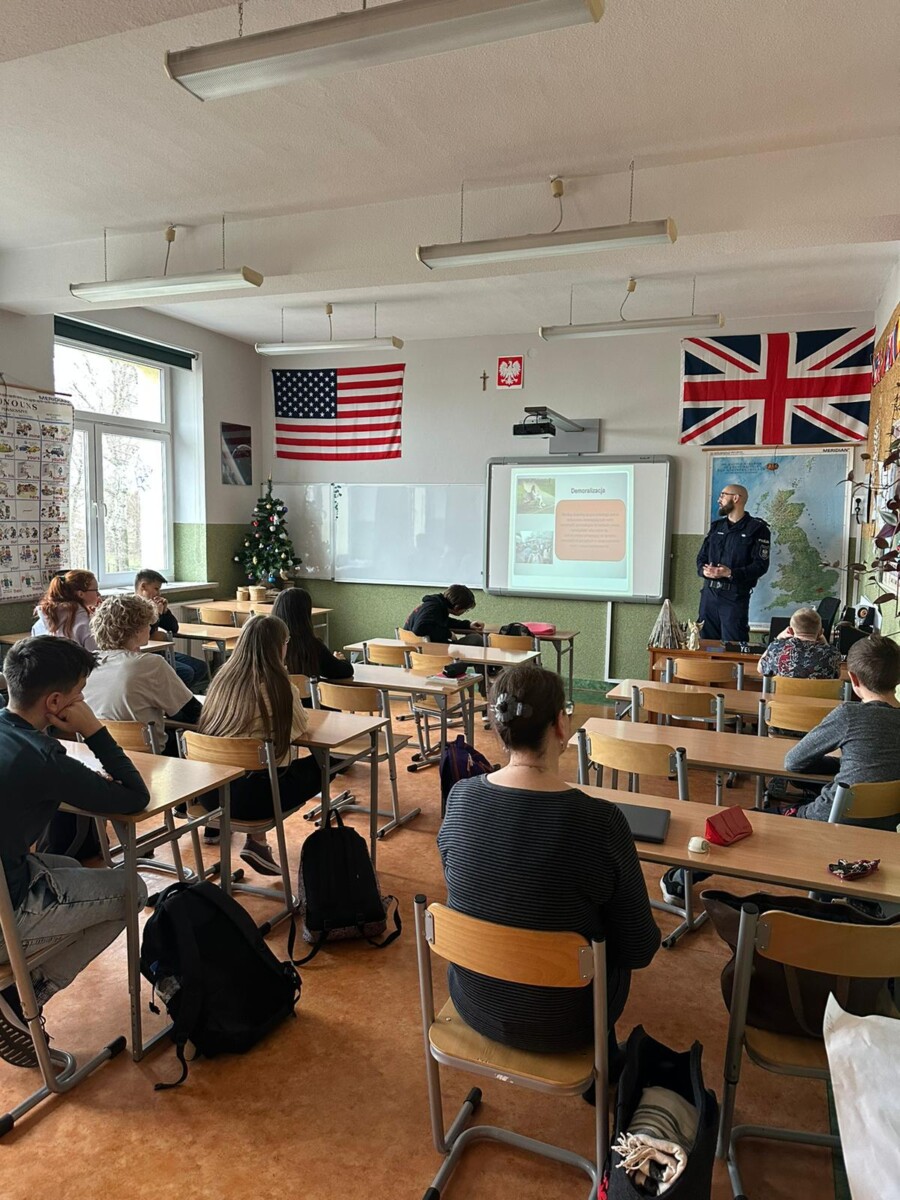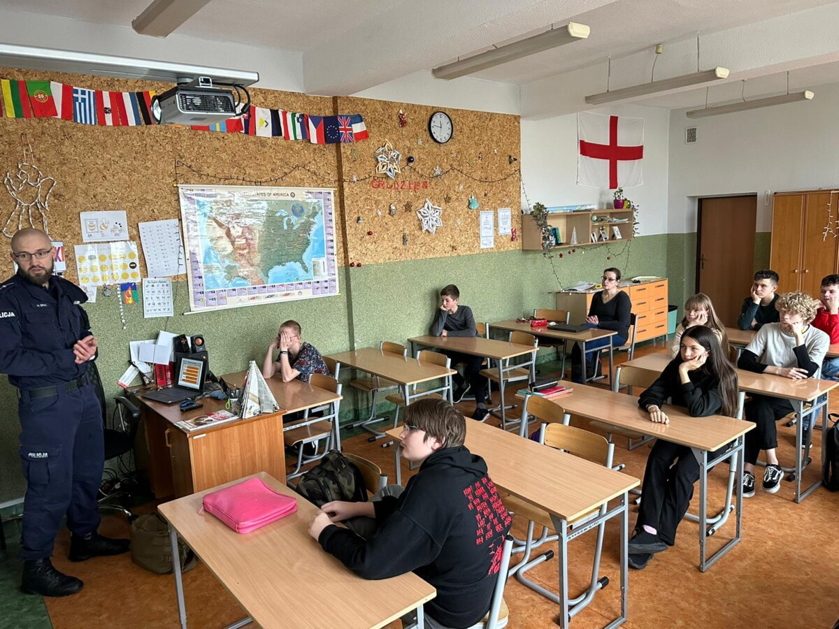 Po wysłuchaniu prelekcji uczniowie mieli możliwość zadania pytań funkcjonariuszowi policji, a samo spotkanie przebiegło w pozytywnej atmosferze, uczniowie wykazali duże zainteresowanie podejmowanymi tematami.