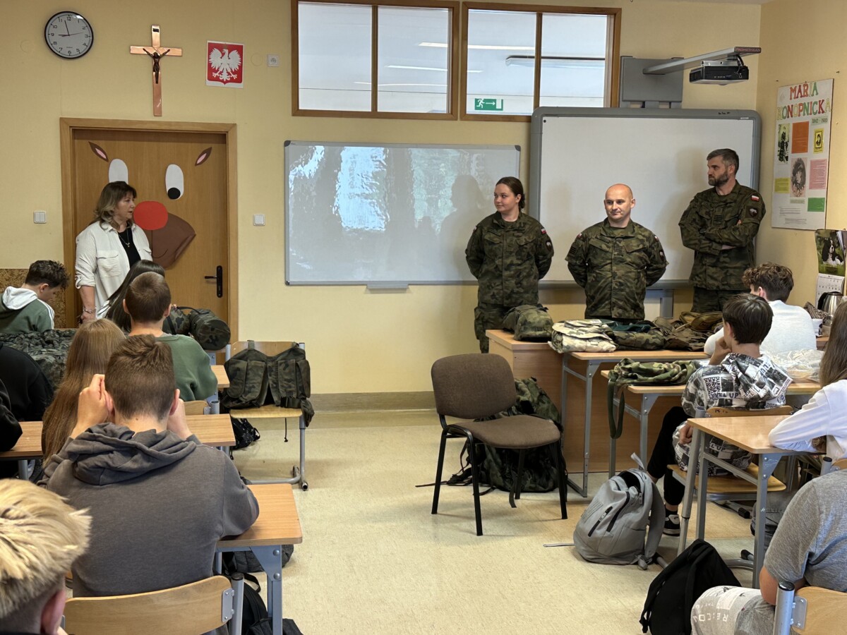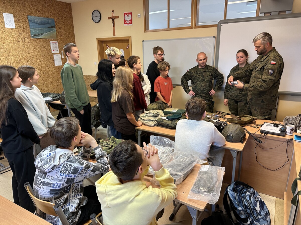 Nie zabrakło także elementów wychowania patriotycznego – uczniowie dowiedzieli się, jak ważną rolę odgrywają wartości takie jak odpowiedzialność, odwaga i służba dla Ojczyzny. Spotkanie zakończyło się pokazem sprzętu wojskowego.
