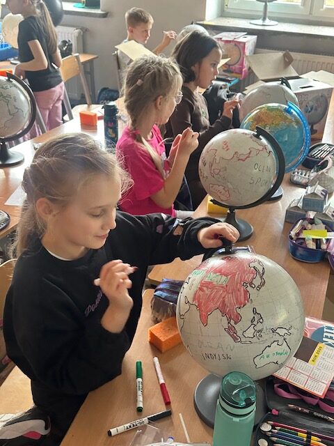 Podczas jednej z ostatnich lekcji uczniowie mojej klasy mieli okazję spojrzeć na świat z zupełnie innej perspektywy. Każde dziecko otrzymało własny globus, na którym mogło samodzielnie zaznaczyć kontynenty, morza i oceany.
