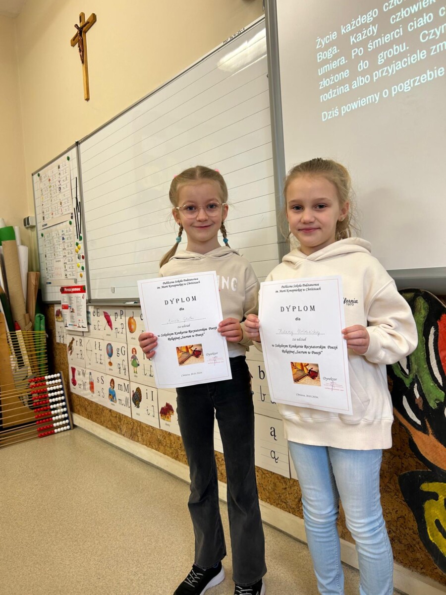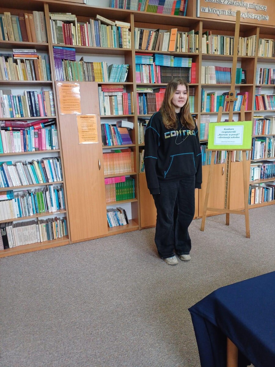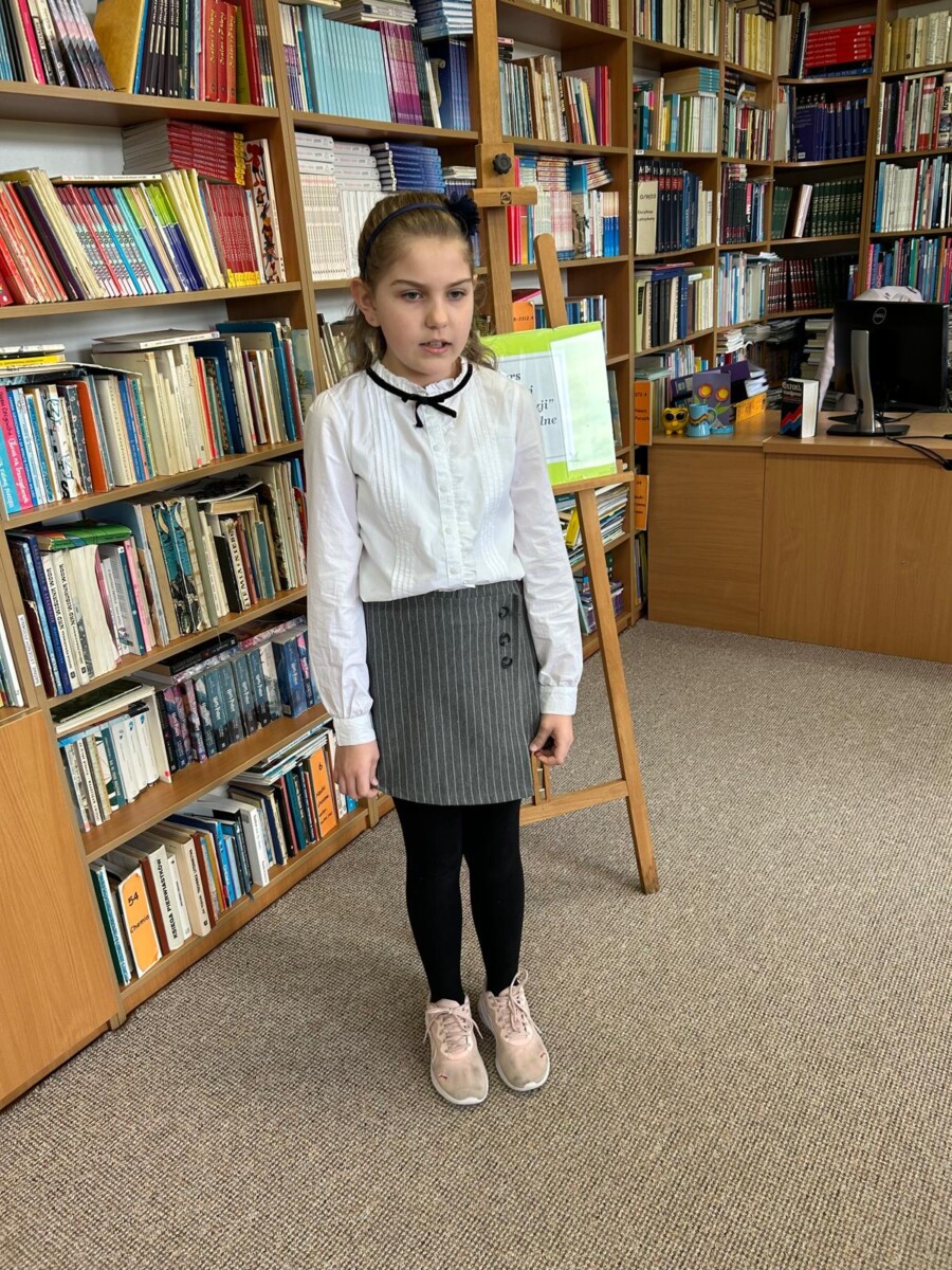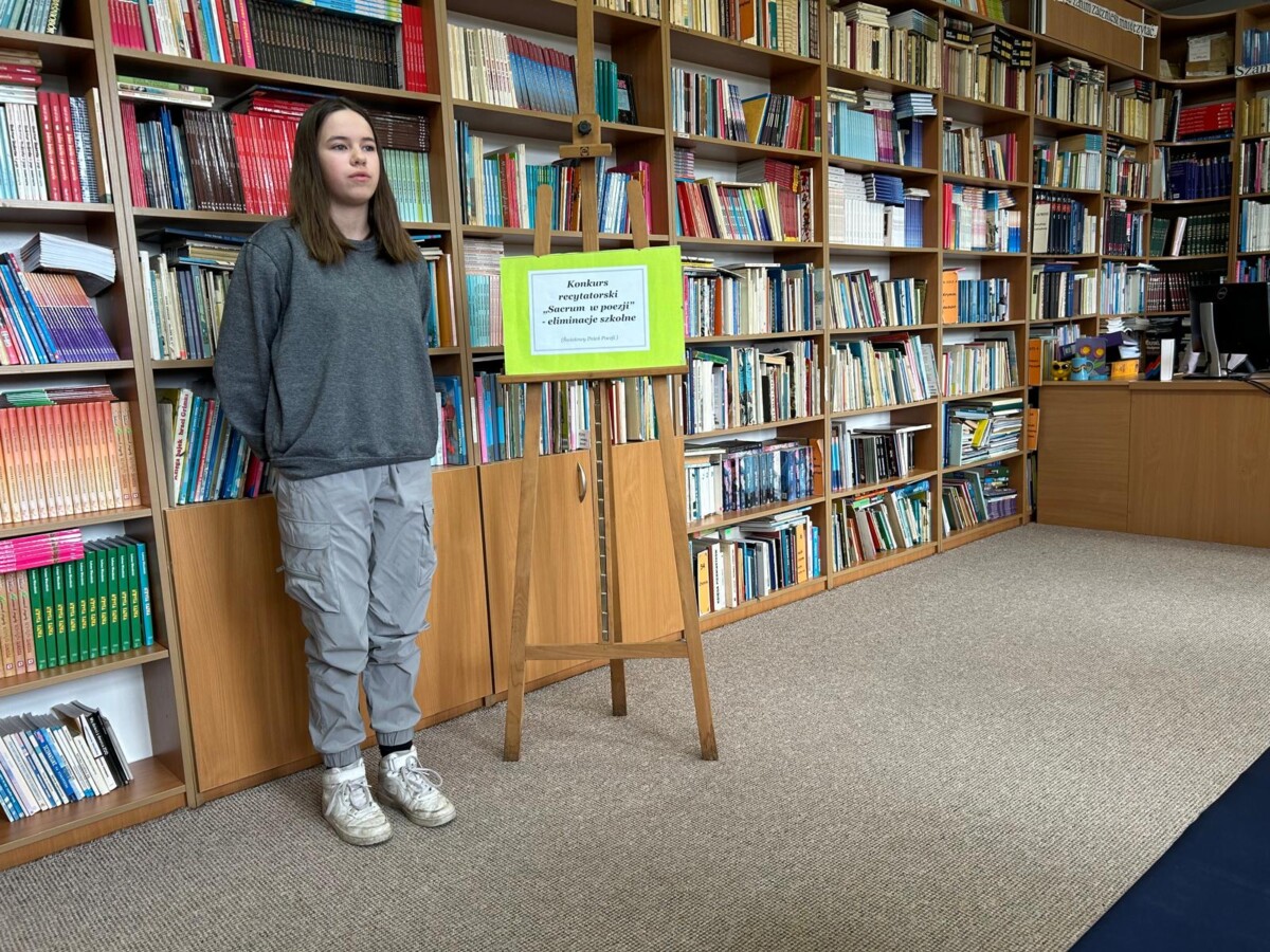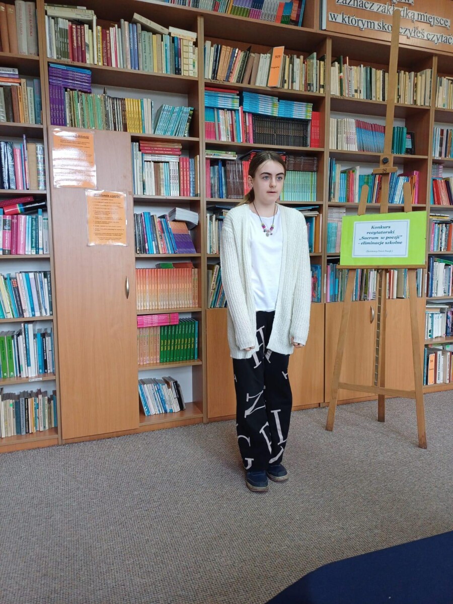 W ramach obchodów Światowego Dnia Poezji (21 marca) w naszej szkolnej bibliotece odbył się konkurs recytatorski poezji religijnej. Uczniowie recytowali wiersze znanych poetów min : ks. Jana Twardowskiego, Stanisława Bełzy, Jana Pawła II. Nie zabrakło także recytacji pieśni religijnych. Jury nie miało łatwego wyboru. Do konkursu przystąpiło 22 uczniów. Recytowano na poziomie klas 1-3, 4-6, 7-8 szkoły podstawowej. Na poziomie
