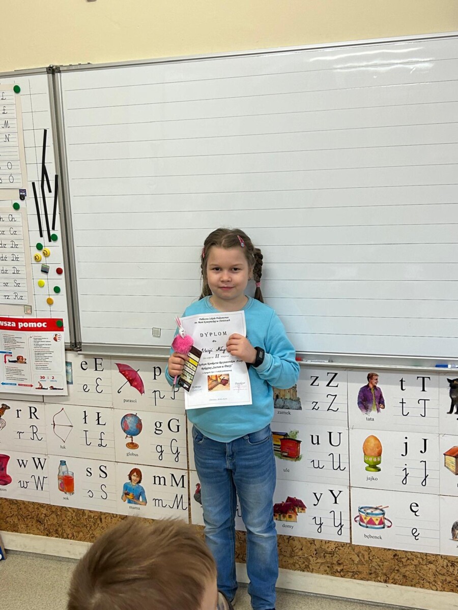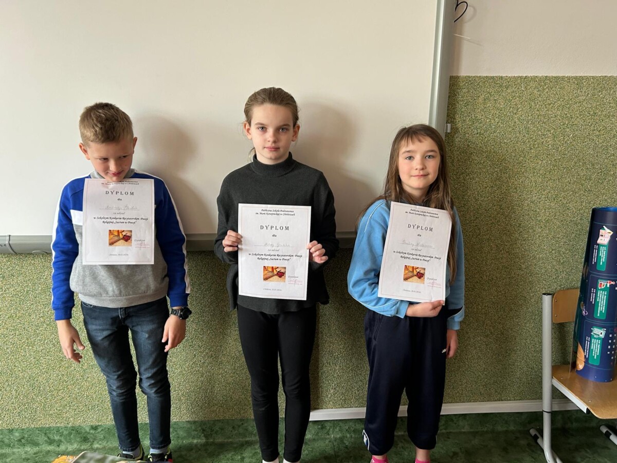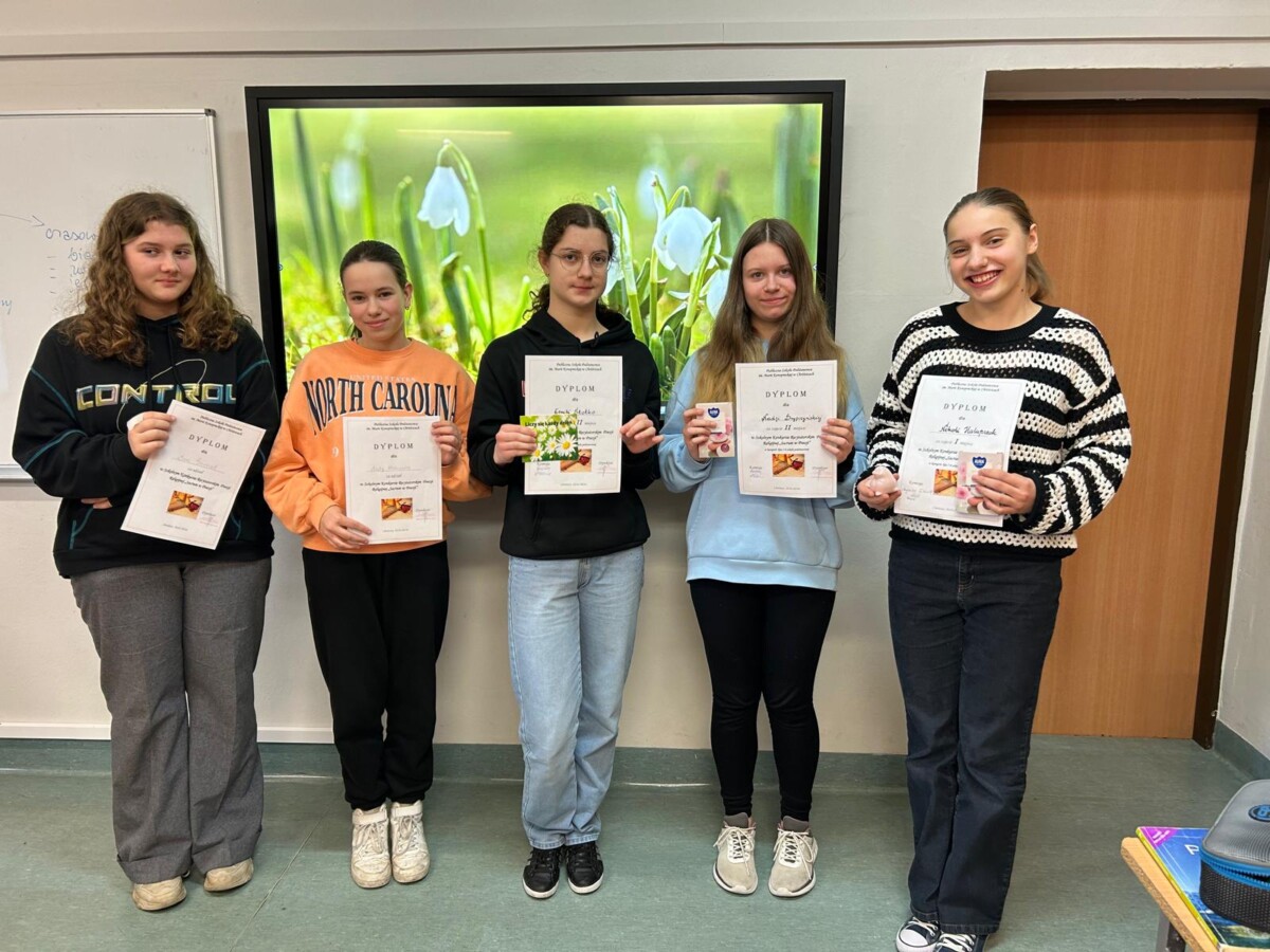 klas 1-3 laureatką została Amanda Puscz z klasy 3a. Na poziomie klas 4-6 zwyciężyła Natalia Gwizdała z klasy 5 a na poziomie klas 7-8 pierwsze miejsce zajęła Nikola Halupczok z klasy 7. Laureaci pierwszych miejsc będą reprezentować szkołę na etapie międzyszkolnym, który przed nami już niebawem. Eliminacje odbędą się 11 kwietnia. Życzymy powodzenia !