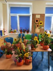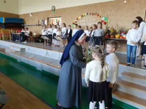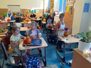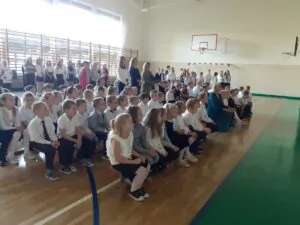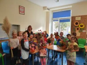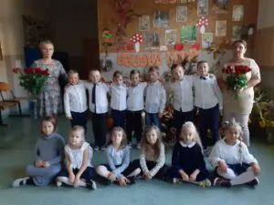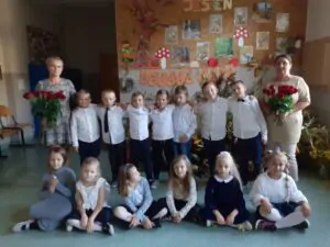 Pierwsza lekcja w klasie 1b -13.10.2023r. była nieco inna niż zawsze. Uczniowie dowiedzieli się co to była Komisja Edukacji Narodowej? Dlaczego 14 października obchodzimy Święto Komisji Edukacji Narodowej? Kto w tym dniu obchodzi swoje święto? Zdziwienie uczniów było bardzo duże, gdy powiedziałam im, że 250 lat temu nie wszyscy dorośli i dzieci umieli pisać i czytać. Umiejętność pisania i czytania posiadali tylko najbogatsi ludzie na całym świecie, Europie, Polsce tz. szlachta. Dopiero Komisja Edukacji Narodowej opracowała trójstopniowy model szkół podstawowych i średnich. Najniższą szkołą podstawową była szkoła parafialna przeznaczona dla dzieci chłopów i mieszczan. Komisja jako pierwsza opracowała szkolny podręczniki. Również dzięki działaniom Komisji język polski stał się osobnym przedmiotem. Dzieci nie potrafiły sobie wyobrazić, że kiedyś ktoś nie umiał pisać, czytać i dobrze liczyć. Po aktywnej dyskusji doszły do wniosku, że dobrze jest chodzić do szkoły i się uczyć . W tym dniu składały życzenia wszystkim pracownikom szkoły, wręczając własnoręcznie wykonane bukiety w dyni. Apel z okazji Święta Edukacji Narodowej – był pierwszym Uroczystym Apelem Pierwszoklasistów. Poprosiłam moich uczniów, aby po apelu, gdy wrócą ze szkoły do domów – złożyli życzenia również swoim rodzicom. Przecież rodzice są ich pierwszymi nauczycielami. Ten dzień się skończył, ale na długo zostanie we wspomnieniach dzieci……..