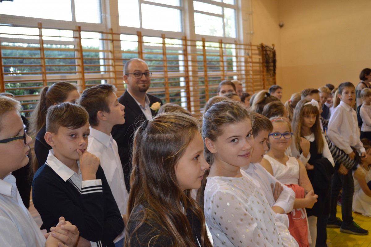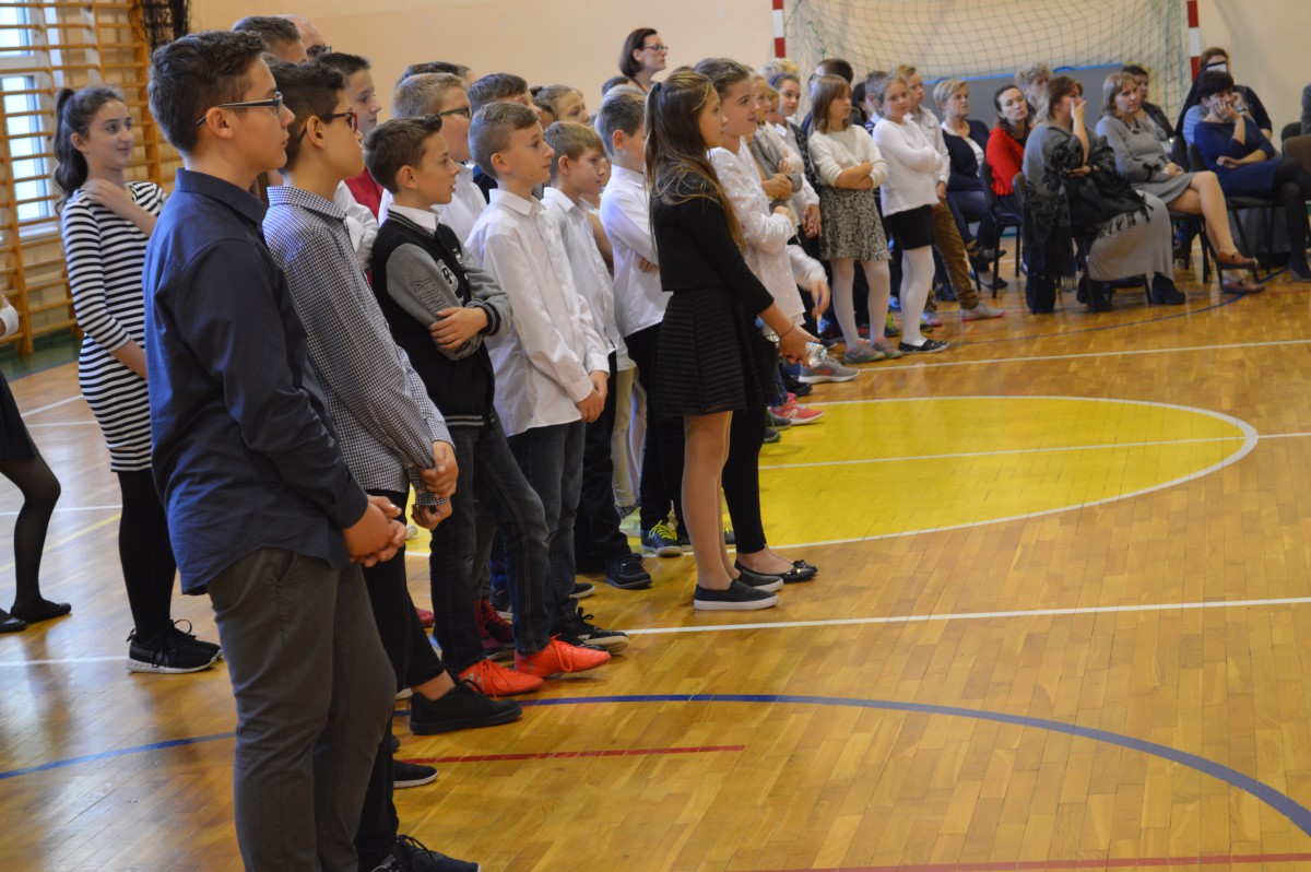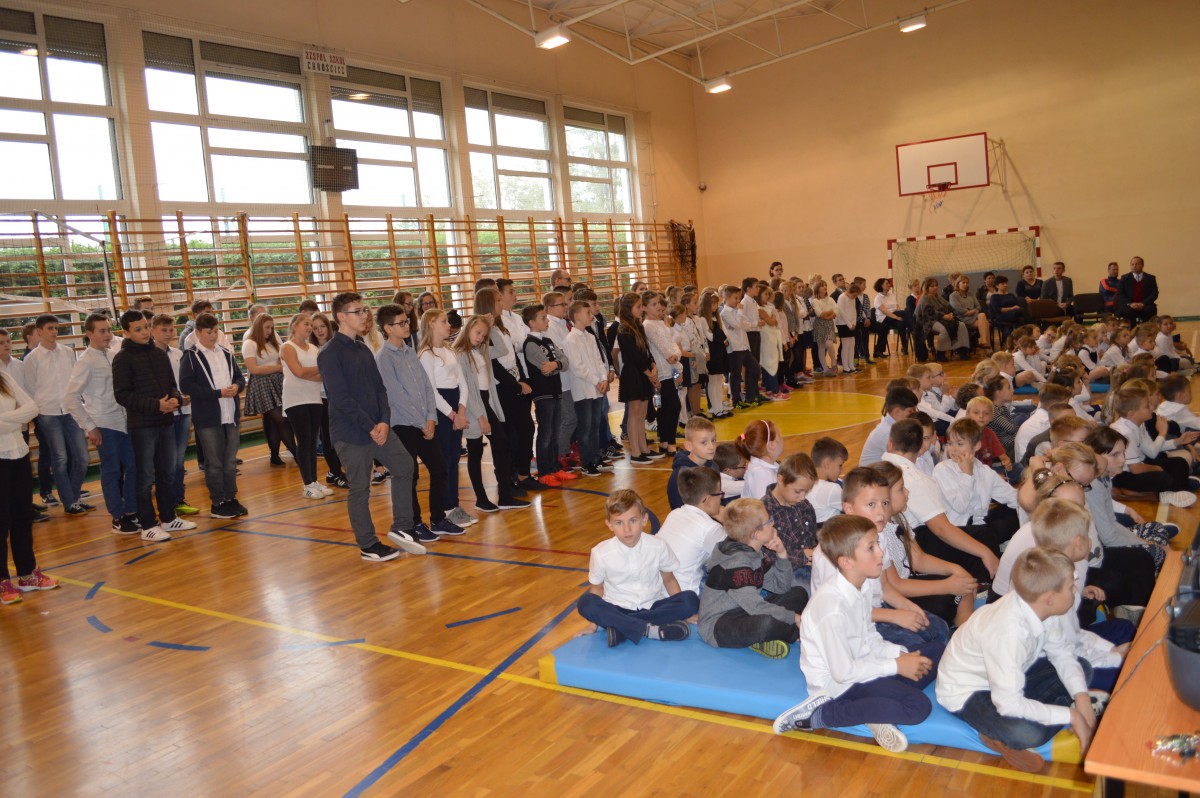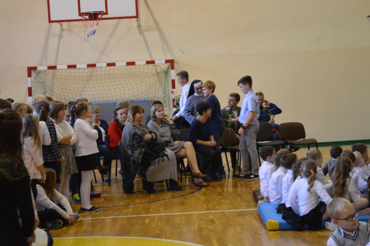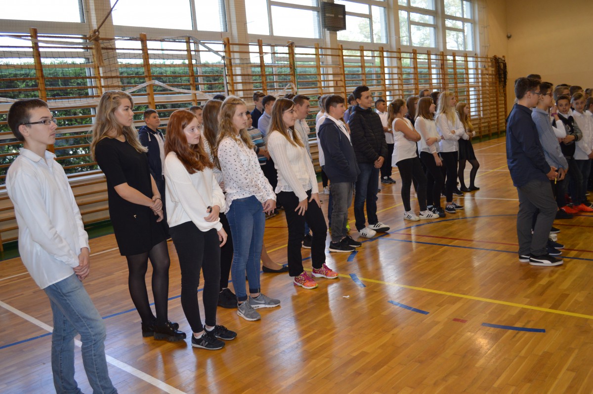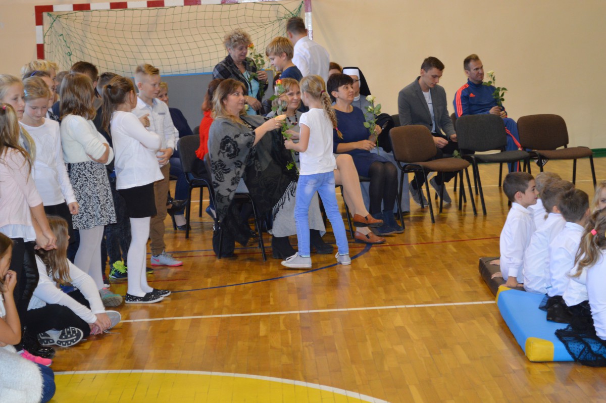 W piątek  13 października obchodziliśmy Dzień Nauczyciela. Podczas uroczystego apelu, który przygotował Samorząd Uczniowski przy współpracy z uczniami klasy 3 gimnazjum padło wiele wspaniałych życzeń ujętych słowem i piosenką. Swoje  przemówienie, pan dyrektor Mirosław Gutka skierował do wszystkich pracowników naszej szkoły, życząc wszystkiego co najlepsze oraz satysfakcji z wykonywanej pracy. W części artystycznej na scenie uczniowie zaprezentowali w humorystyczny sposób realia szkolnego życia. Nie zabrakło też kwiatów, którymi zostali obdarowani nauczyciele, ciepłych słów i własnoręcznie wykonanych laurek.