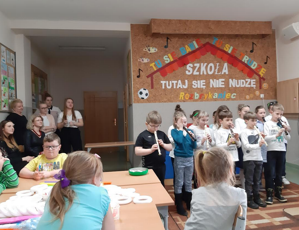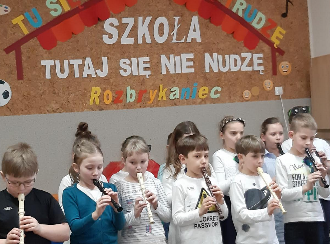 – uczniowie kl. 1 i 2 dali muzyczny popis gry na flecie, a później przedszkolaki spontanicznie stworzyły własną orkiestrę.
