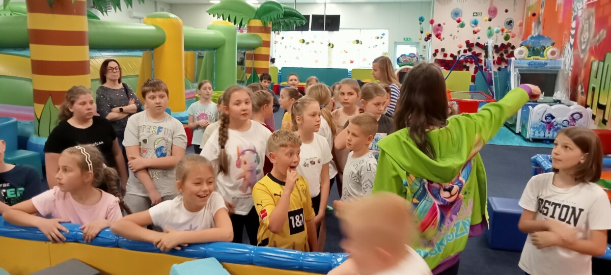 Dnia 25 kwietnia br. uczniowie klasy III oraz IVb brali udział w przedstawieniu „Safari” w wykonaniu Krakowskiego Teatru Muzycznego. Sztuka zawierała wiele elementów edukacyjnych dotyczących wzajemnych relacji uczniowskich, a także poszerzała wiedzę na temat geografii i folkloru Polski. Uczniowie z zainteresowaniem uczestniczyli w odbiorze sztuki. W dalszej części wyjazdu uczniowie skorzystali z atrakcji w „Hoplandii”. Atrakcji było bardzo wiele, a kolorowe dmuchańce, zjeżdżalnie i trampoliny, były oblegane przez 1.5h. Dzieci miały okazję sprawdzić swoją kondycję, wytrzymałość i sprawność fizyczną.