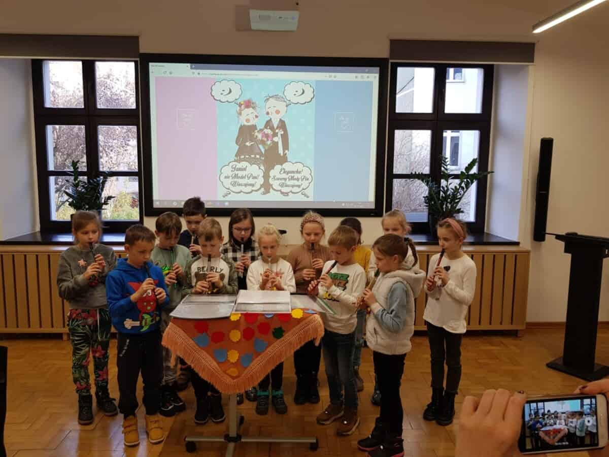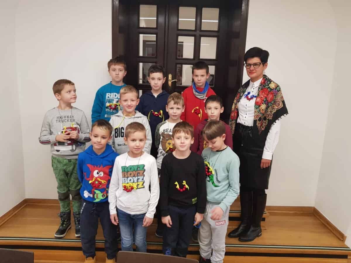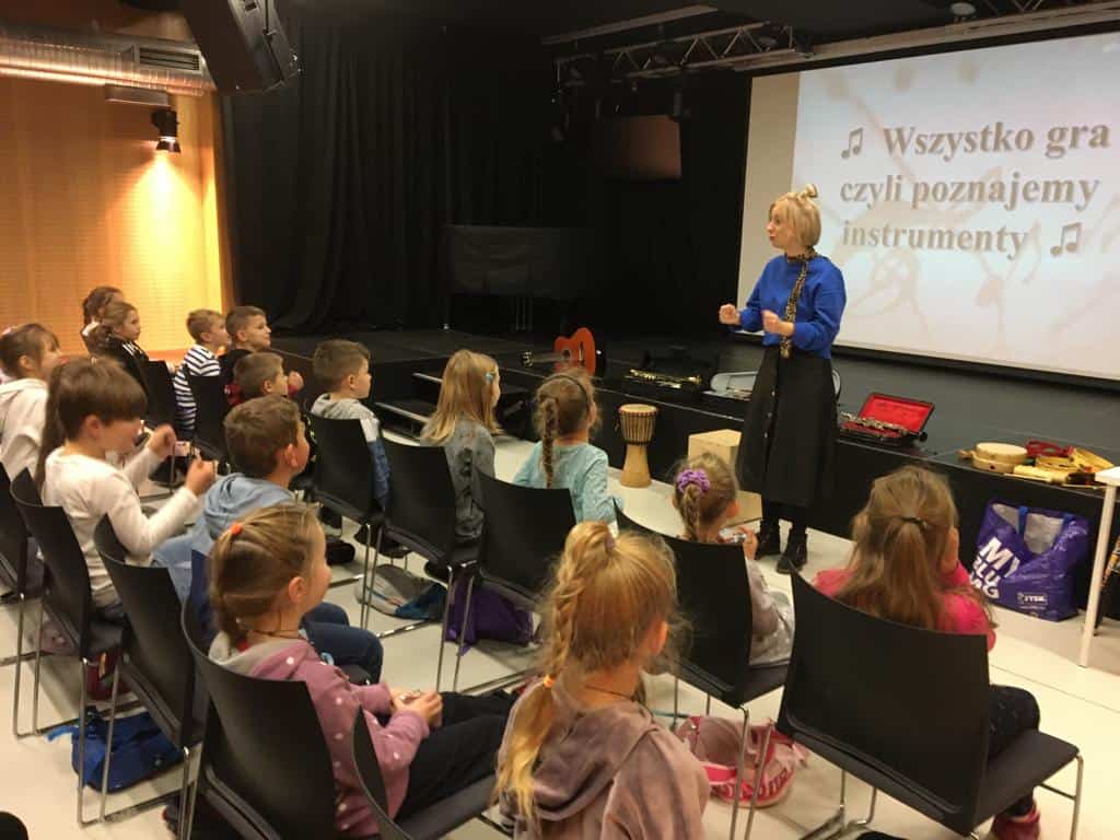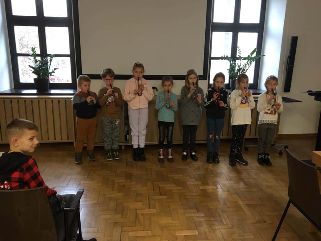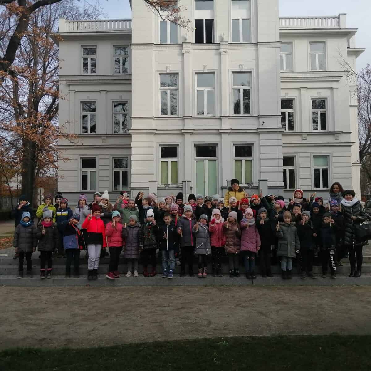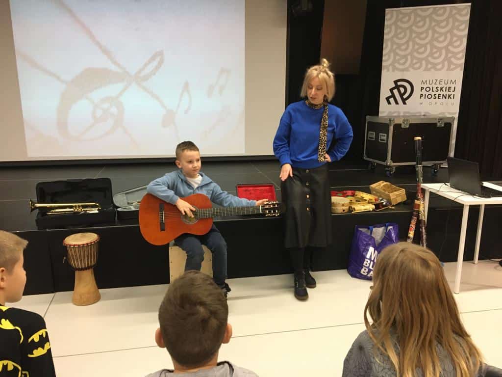 23 listopada uczniowie klas 1, 2a i 2 b pojechali do Opola na warsztaty. Pierwsze z nich” Triki z muzyki” odbyły się w Muzeum Piosenki Polskiej. Były to zajęcia z muzyki i dotyczyły różnych instrumentów muzycznych. Dzieci oglądały instrumenty i dowiedziały się do jakich grup należą. Wspólnie wykonały zadanie muzyczne grając na instrumentach perkusyjnych. Wykazali się wiedzą i umiejętnościami. Na zakończenie spotkania odbył się koncert przygotowany przez naszych uczniów. Wykonali oni trzy utwory na flażoletach. Pani Ola, która prowadziła warsztaty zachwyciła się grą i zaprosiła nas na ponowne spotkanie. Kolejne warsztaty „Kobiece tajemnice Karolinki” odbyły się w Archiwum Państwowym i dotyczyły strojów w jakich kiedyś chodzili Ślązacy. Uczniowie zapoznali się ze starymi fotografiami ukazującymi różnorodność strojów, a także poznali ich nazwy: jakla, kiecka, zapaska, mazelonka, anzug, galoty, żakiet, westa i woniaczka. W trakcie spotkania dzieci wykonały korale i ozdobiły chustę, która kiedyś była częścią garderoby kobiet. Na zakończenie wykonały na flażoletach utwór Poszła Karolinka do Gogolina. To było już kolejne spotkanie naszych uczniów w Archiwum Państwowym w Opolu. Po warsztatach przyszedł czas na relaks. Sprzyjająca pogoda była okazją do skorzystania z placu zabaw. Każdy uczeń otrzymał słodką niespodziankę w postaci rurki z kremem. Finałowym punktem wycieczki było wykonanie utworu na flażoletach i wspólne zdjęcie na deskach Amfiteatru Opolskiego.
