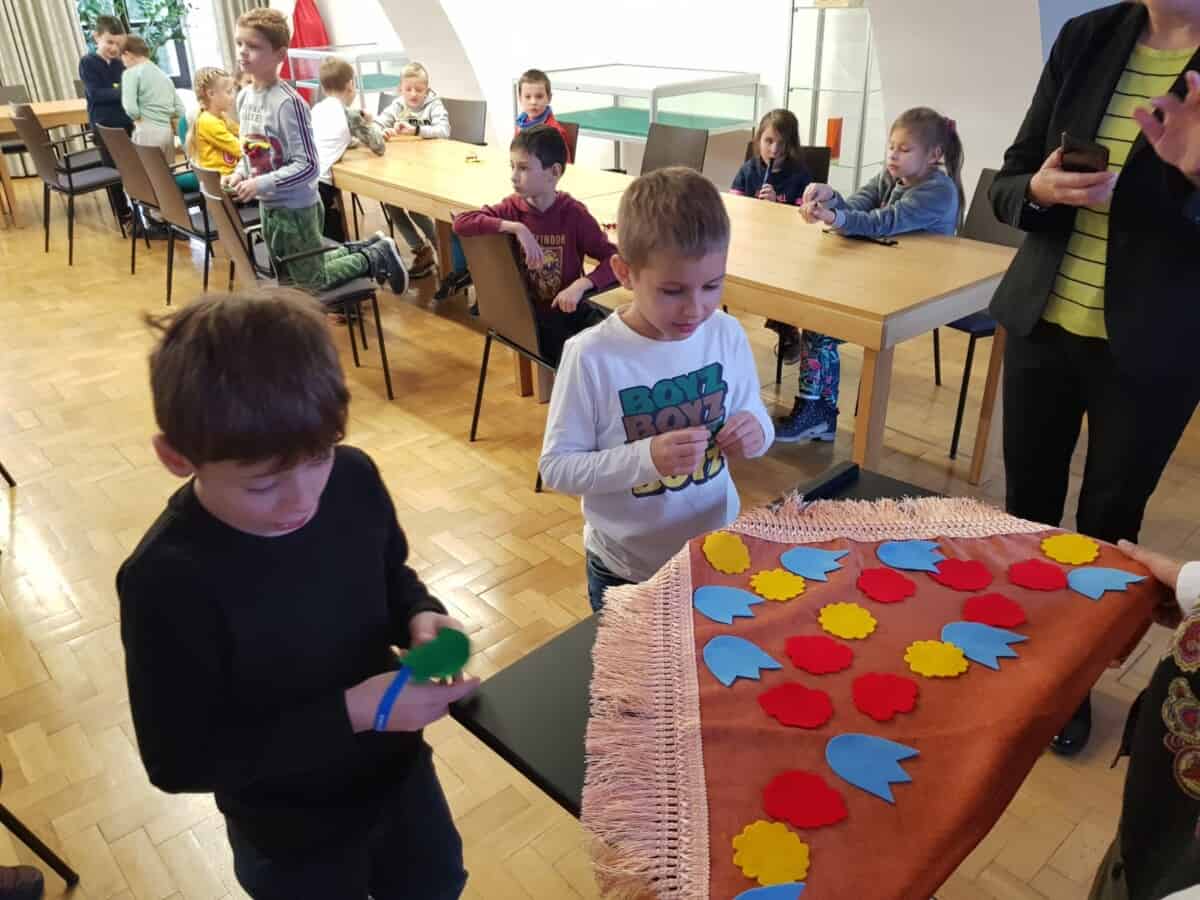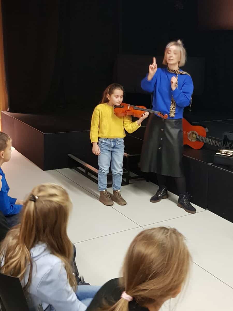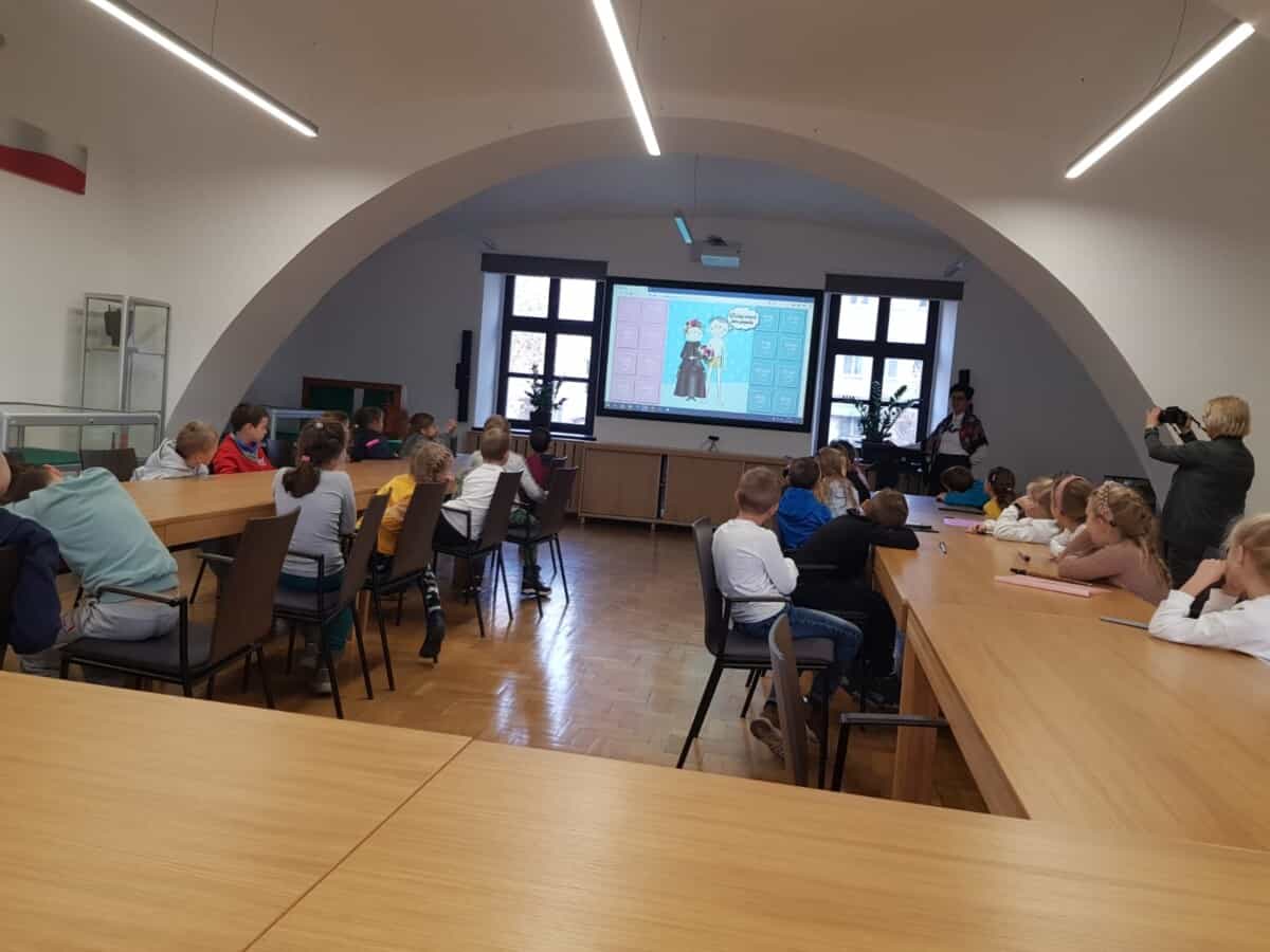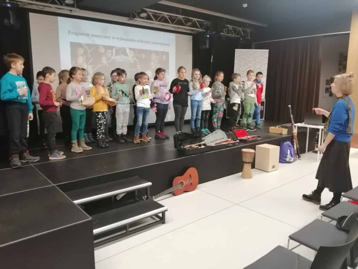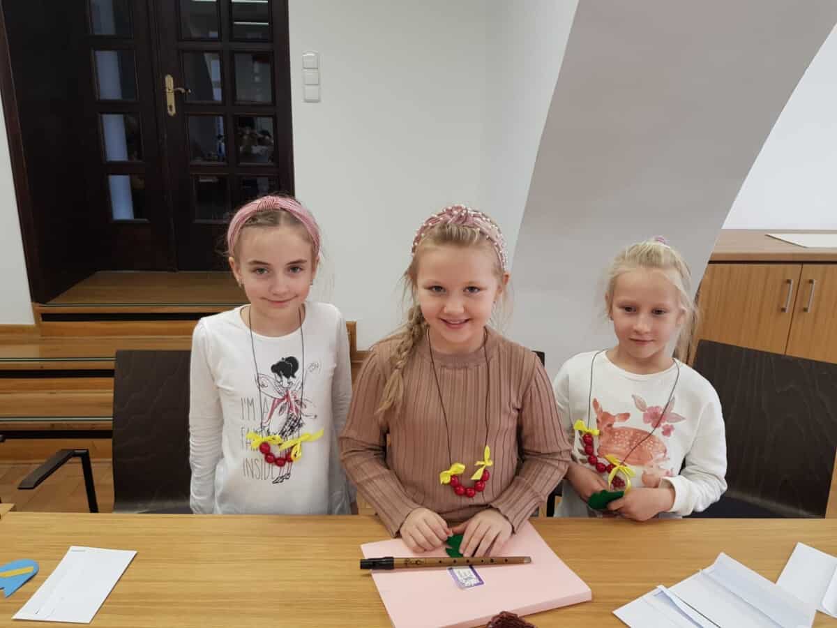 23 listopada uczniowie klas 1, 2a i 2 b pojechali do Opola na warsztaty. Pierwsze z nich” Triki z muzyki” odbyły się w Muzeum Piosenki Polskiej. Były to zajęcia z muzyki i dotyczyły różnych instrumentów muzycznych. Dzieci oglądały instrumenty i dowiedziały się do jakich grup należą. Wspólnie wykonały zadanie muzyczne grając na instrumentach perkusyjnych. Wykazali się wiedzą i umiejętnościami. Na zakończenie spotkania odbył się koncert przygotowany przez naszych uczniów. Wykonali oni trzy utwory na flażoletach. Pani Ola, która prowadziła warsztaty zachwyciła się grą i zaprosiła nas na ponowne spotkanie. Kolejne warsztaty „Kobiece tajemnice Karolinki” odbyły się w Archiwum Państwowym i dotyczyły strojów w jakich kiedyś chodzili Ślązacy. Uczniowie zapoznali się ze starymi fotografiami ukazującymi różnorodność strojów, a także poznali ich nazwy: jakla, kiecka, zapaska, mazelonka, anzug, galoty, żakiet, westa i woniaczka. W trakcie spotkania dzieci wykonały korale i ozdobiły chustę, która kiedyś była częścią garderoby kobiet. Na zakończenie wykonały na flażoletach utwór Poszła Karolinka do Gogolina. To było już kolejne spotkanie naszych uczniów w Archiwum Państwowym w Opolu. Po warsztatach przyszedł czas na relaks. Sprzyjająca pogoda była okazją do skorzystania z placu zabaw. Każdy uczeń otrzymał słodką niespodziankę w postaci rurki z kremem. Finałowym punktem wycieczki było wykonanie utworu na flażoletach i wspólne zdjęcie na deskach Amfiteatru Opolskiego.