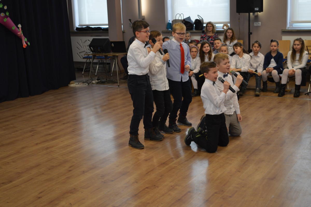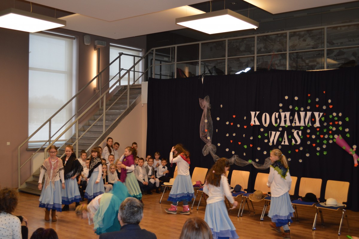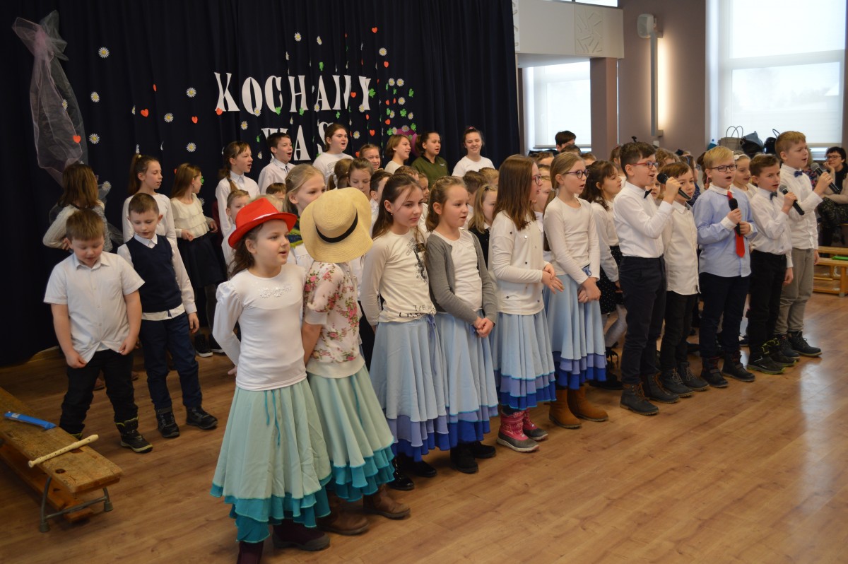 Gdy zbliża się Dzień Babci i Dziadka, wszystkie wnuki zastanawiają się jaką niespodziankę przygotować. Z tej okazji nasi uczniowie zaprosili swoich dziadków na uroczyste spotkanie w Sali wiejskiej. Przy pięknie udekorowanych stołach, przy kawie i pysznych ciastach babcie i dziadkowie oglądali program artystyczny przygotowany przez wnuki i wnuczki. Dzieci zaprezentowały wierszyki, piosenki, tańce, grę na fletach i scenkę o eleganckich babciach. Na koniec zaśpiewały „Sto lat”. Spotkanie przebiegło w ciepłej i miłej atmosferze, było wzruszenie i radość, bo nikt tak nie kocha jak dziadkowie.
