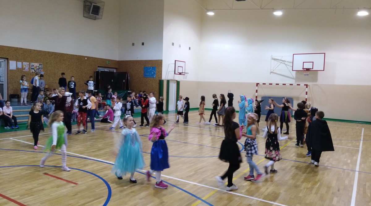 Imprezowaliśmy w dwóch grupach. Młodsza, czyli klasy 1-5 bawili się w ramach świetlicy i lekcji, a pozostałe, starsze klasy wieczorem.