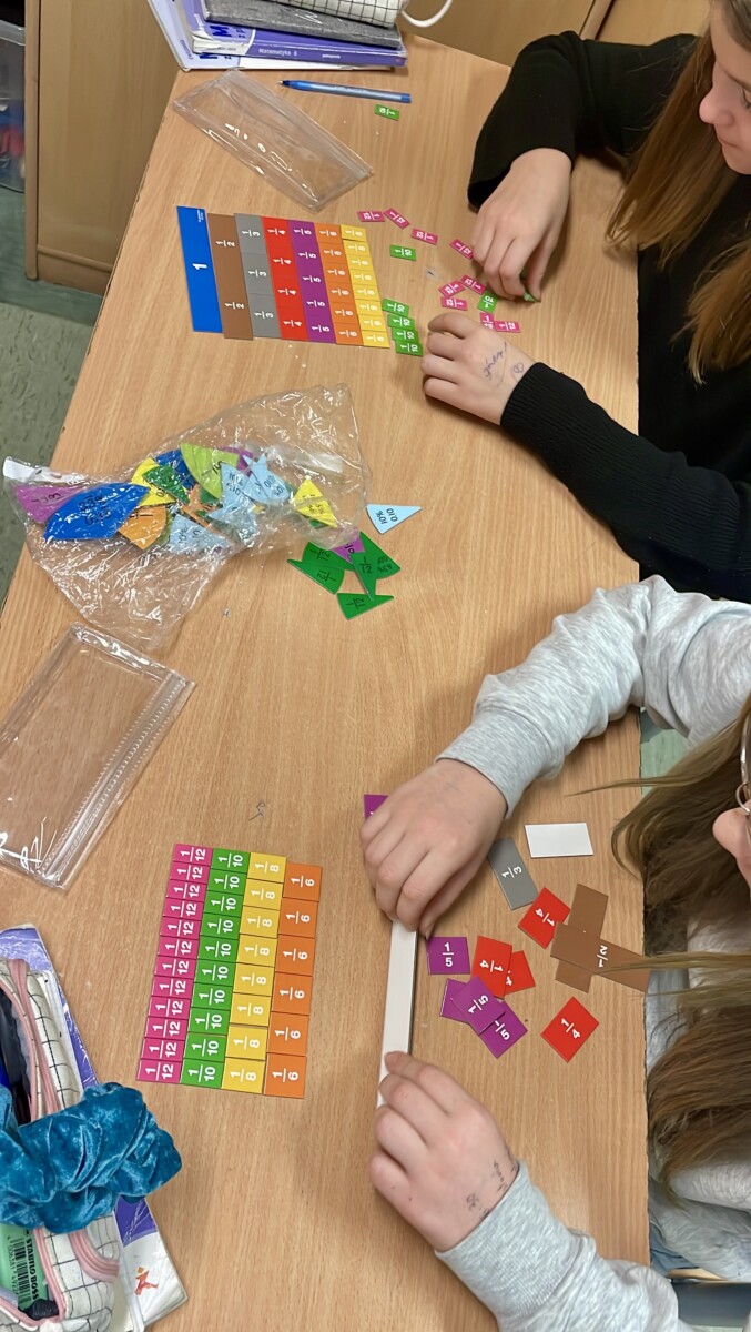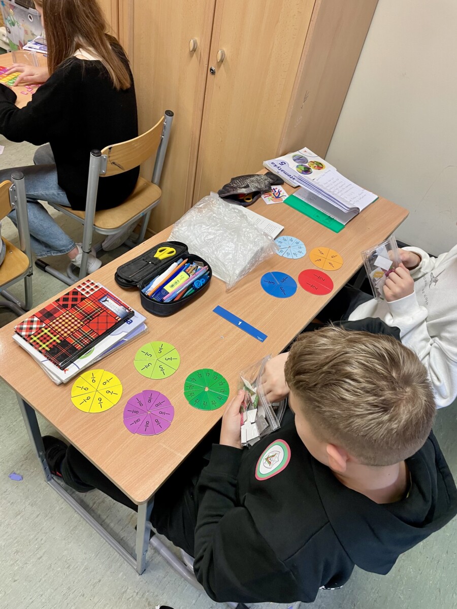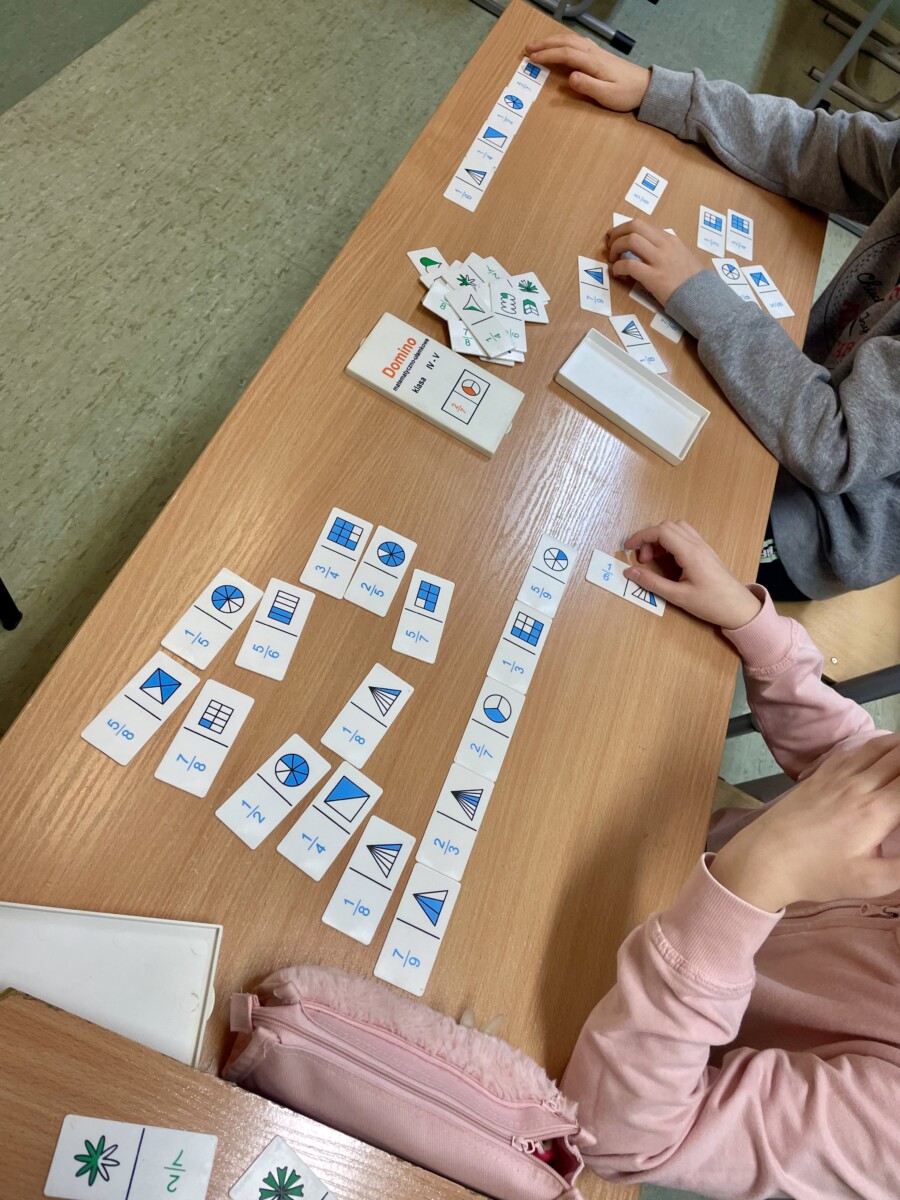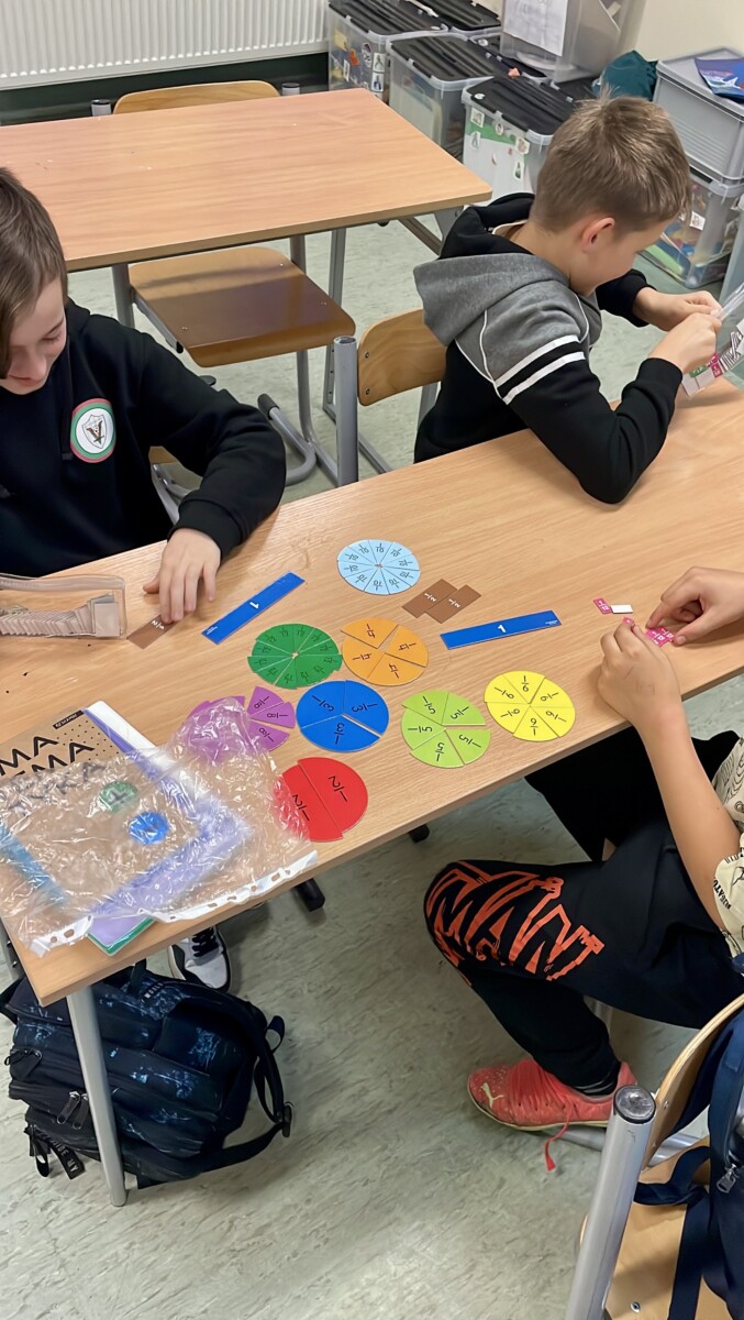 Na ostatnich lekcjach oraz na zajęciach dydaktyczno wyrównawczych z matematyki, z wielkim zaangażowaniem, nasi uczniowie zajadali ułamkowo podzielone owoce i czekoladę, układali kolorowe puzzle ułamkowe oraz domino matematyczno- ułamkowe. Wszystko to aby jak najlepiej poznać i zaprzyjaźnić się z ułamkami