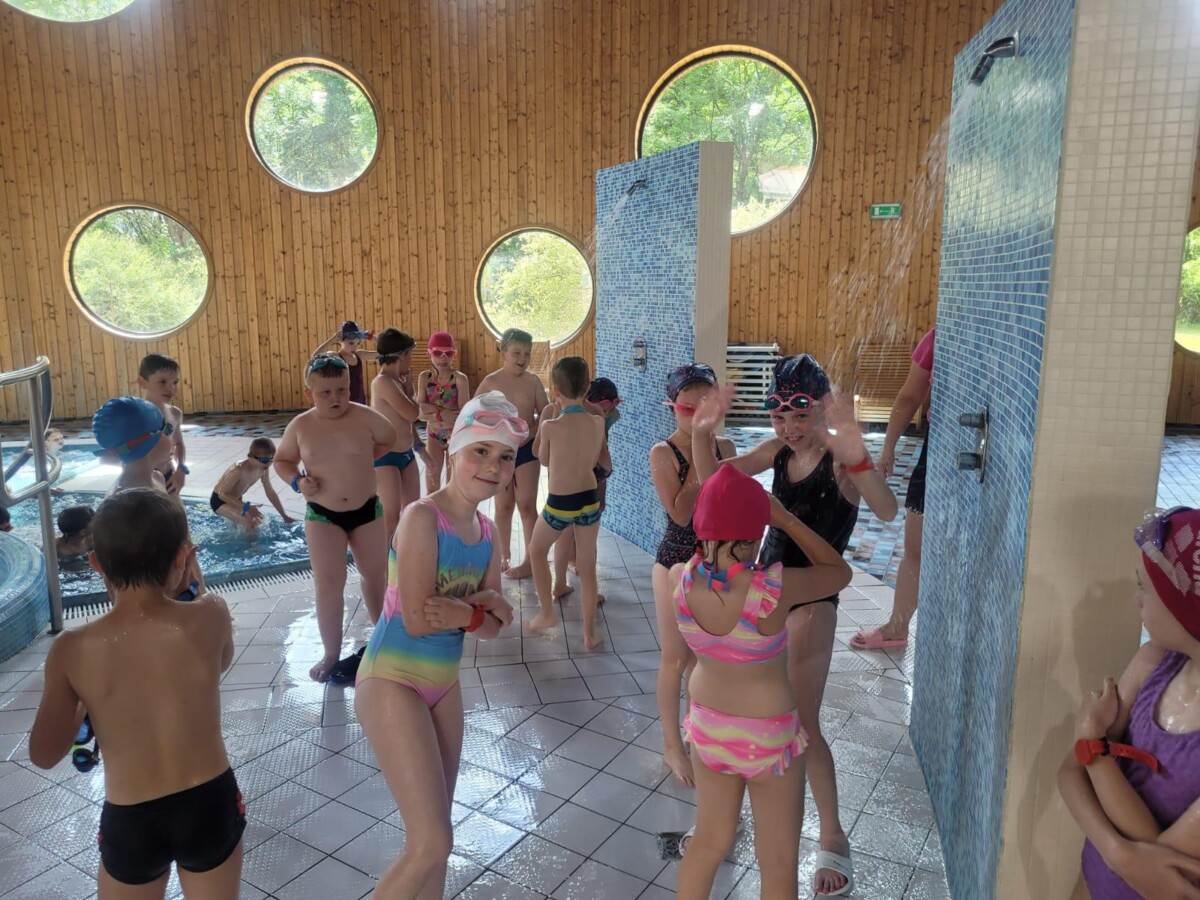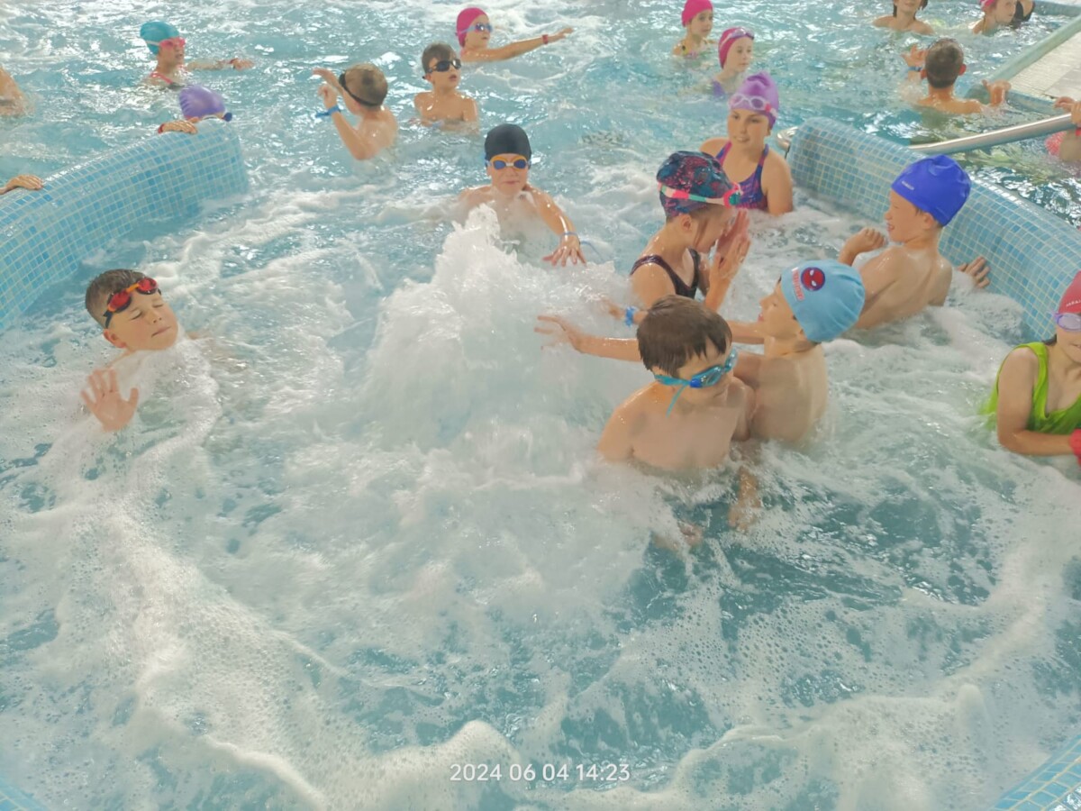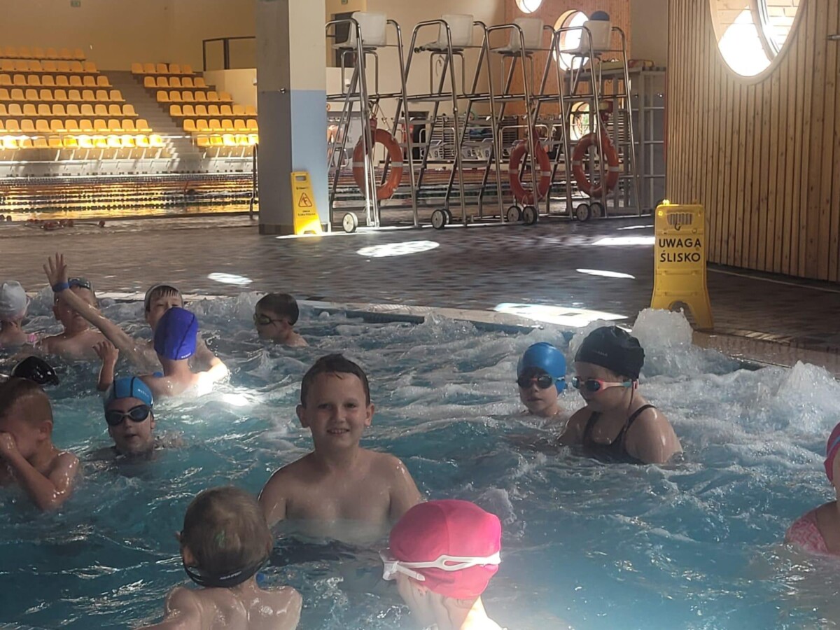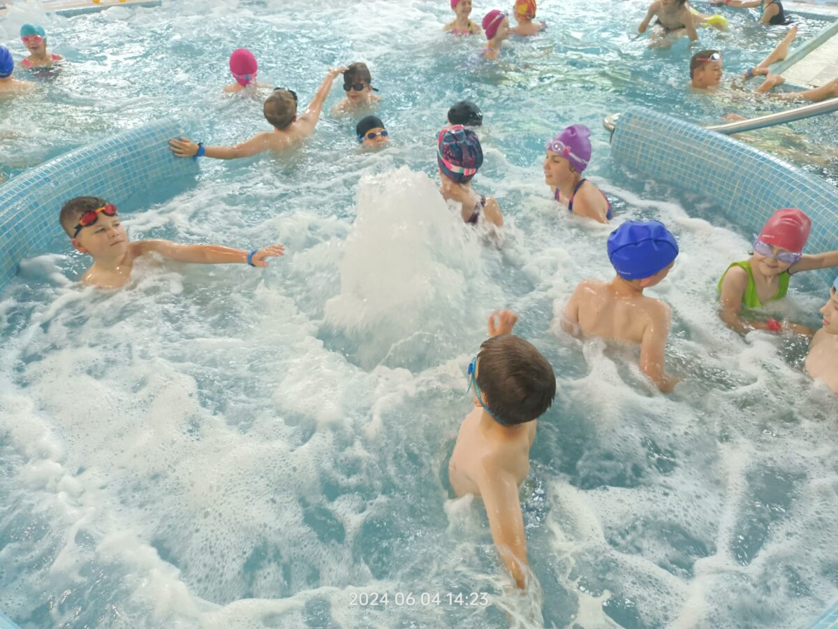 Uczniowie klasy drugiej rozpoczęli naukę pływania w ramach Programu Powszechnej Nauki Pływania „Umiem pływać”. Podstawowym celem projektu jest opanowanie przez uczniów elementarnych technik pływania oraz zdobycie umiejętności pływania stylem grzbietowym, a także uświadomienie dzieciom oraz  odzicom korzyści zdrowotnych, jakie niesie za sobą pływanie. Projekt będzie kontynuowany jeszcze na przełomie września i października.