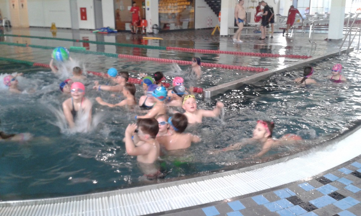 W dniu 20.05.19 r. odbył się już ostatni wyjazd na basen w ramach projektu „Umiem pływać”. Uczestnicy musieli wykonać skok do wody i pokonać dystans 25 metrów techniką dowolną w jak najszybszym tempie. Widać było wielką rywalizację pomiędzy dziećmi, ponieważ każde chciało mieć jak najlepszy czas. Następnie po ciężkim wysiłku nastąpił czas na relaks, podczas którego można było odpocząć w solance lub brać udział w siatkówce wodnej. Każdy z uczestników otrzymał dyplom ukończenia kursu „Umiem pływać”. Uczniowie zostali poprzez ten projekt zachęceni do prowadzenia aktywnego trybu życia. Większość z nich na pewno zawita w „Wodnej Nucie”, ale już w towarzystwie rodziców oraz rodzeństwa.