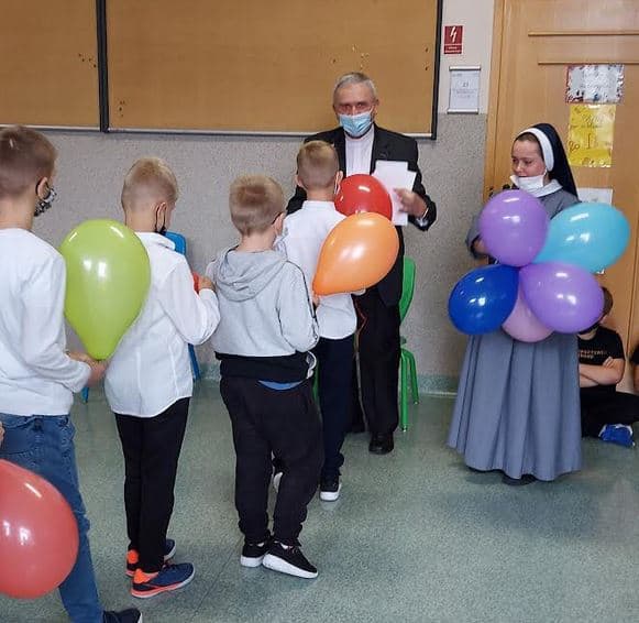 28 września obchodził swoje urodziny Ksiądz Proboszcz Zygmunt Jaworek. Z tej okazji uczniowie naszej szkoły przygotowali miłą niespodziankę. Na uroczystym apelu dzieci recytowały wierszyki urodzinowe, zaśpiewały piosenkę oraz zagrały na fletach i flażoletach specjalny utwór Amazing Grace. Klasa I a przygotowała laurki, a klasa II balony. Od całej społeczności szkolnej Ksiądz Proboszcz otrzymał ozdobne rośliny z życzeniami zdrowia, radości i Błogosławieństwa Bożego.