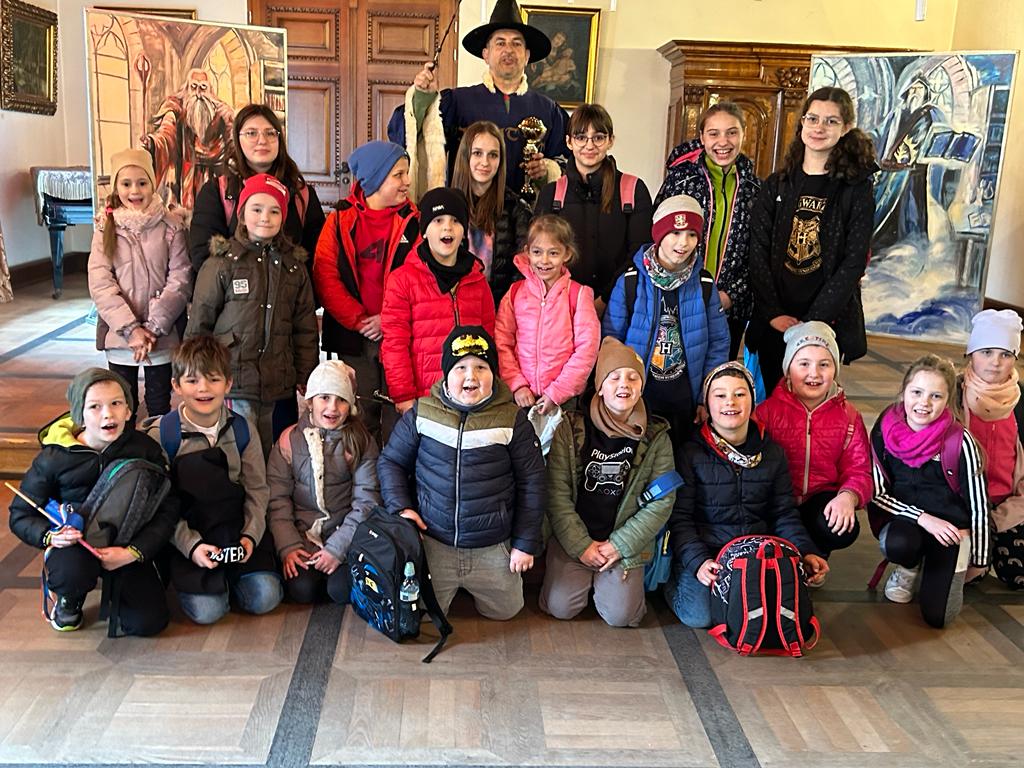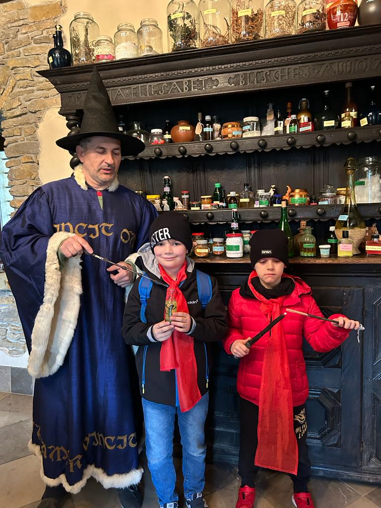 14 kwietnia br. wybraliśmy się na wycieczkę do Filii Hogwartu w Starych Tarnowicach, aby przeżyć przygodę jak Harry Potter. W szkole czarodziejstwa i magii przywitali nas Profesorowie, którzy podczas Ceremonii Przydziału podzielili nas na dwa zespoły – Domy. Od tego momentu zaczęliśmy rywalizować o Puchar Domów uczestnicząc w lekcjach. Podczas lekcji Iluzji nauczyliśmy się prostych sztuczek magicznych. Na zajęciach z Różdżkowania dowiedzieliśmy się z czego wykonana jest różdżka, jakie ma właściwości, poznaliśmy magiczne zaklęcia i samodzielnie każdy z nas wykonał dla siebie różdżkę. Bardzo ciekawa była lekcja