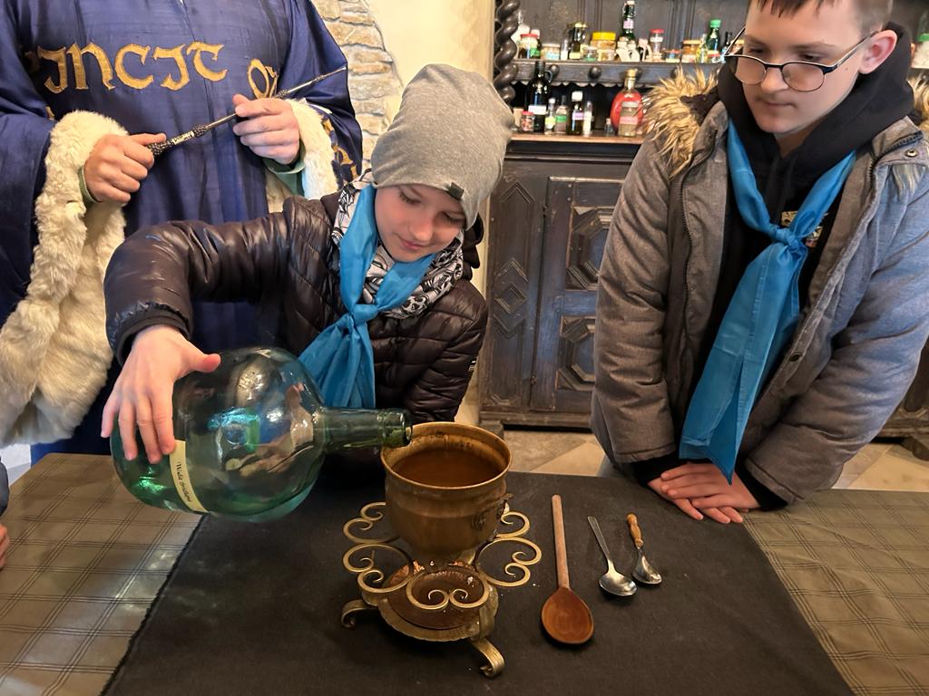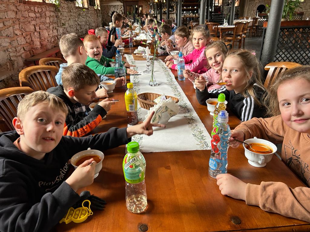 Eliksirów podczas, której sporządziliśmy eliksir według szczegółowego przepisu ze starych ksiąg. Na zakończenie uczniowie rozegrali między sobą mecz Quiddich’a. Zwycięskiej drużynie wręczony został Puchar Domów. Następnie zjedliśmy pyszny obiadek i udaliśmy się autokarem w drogę powrotną do