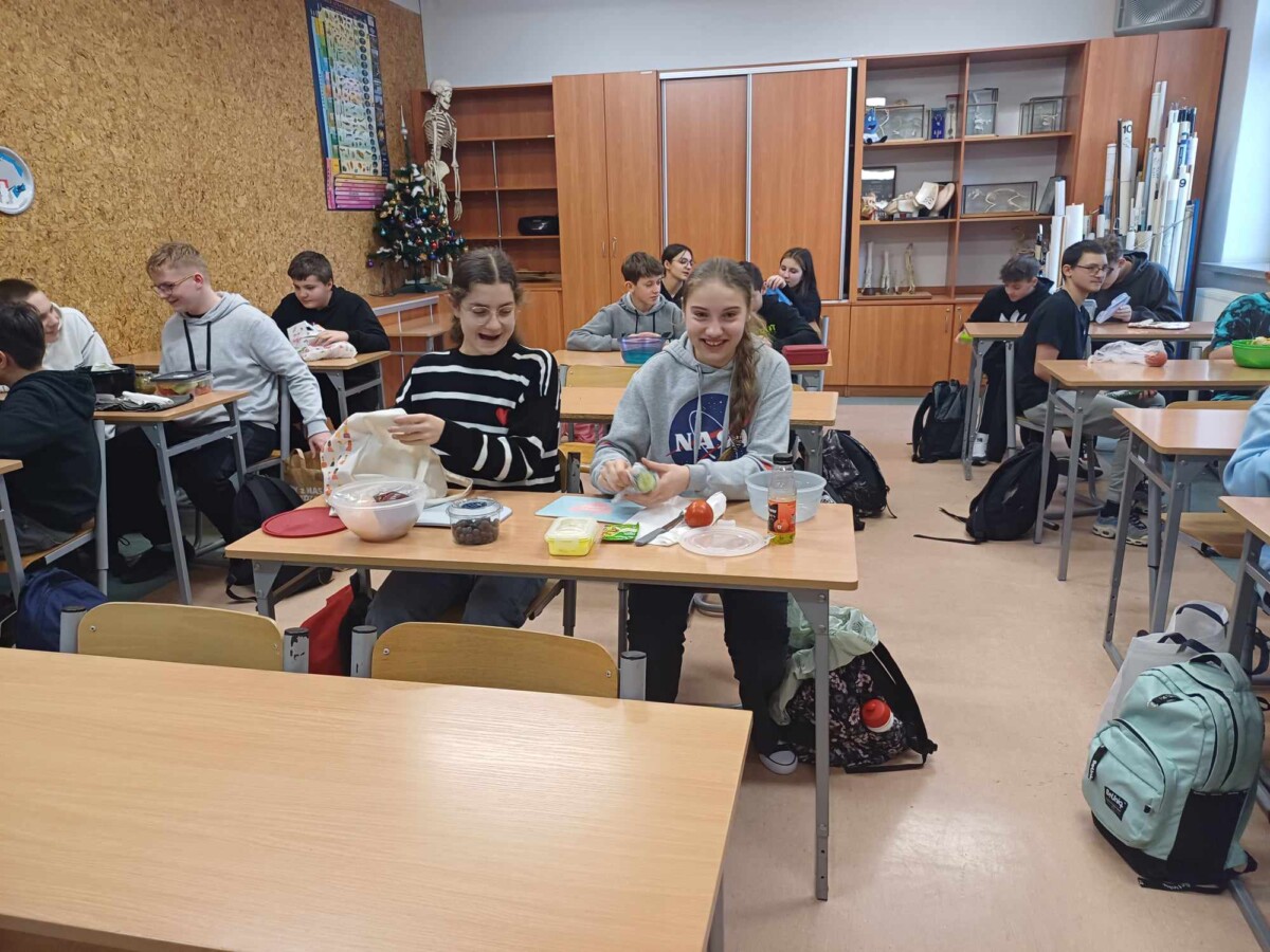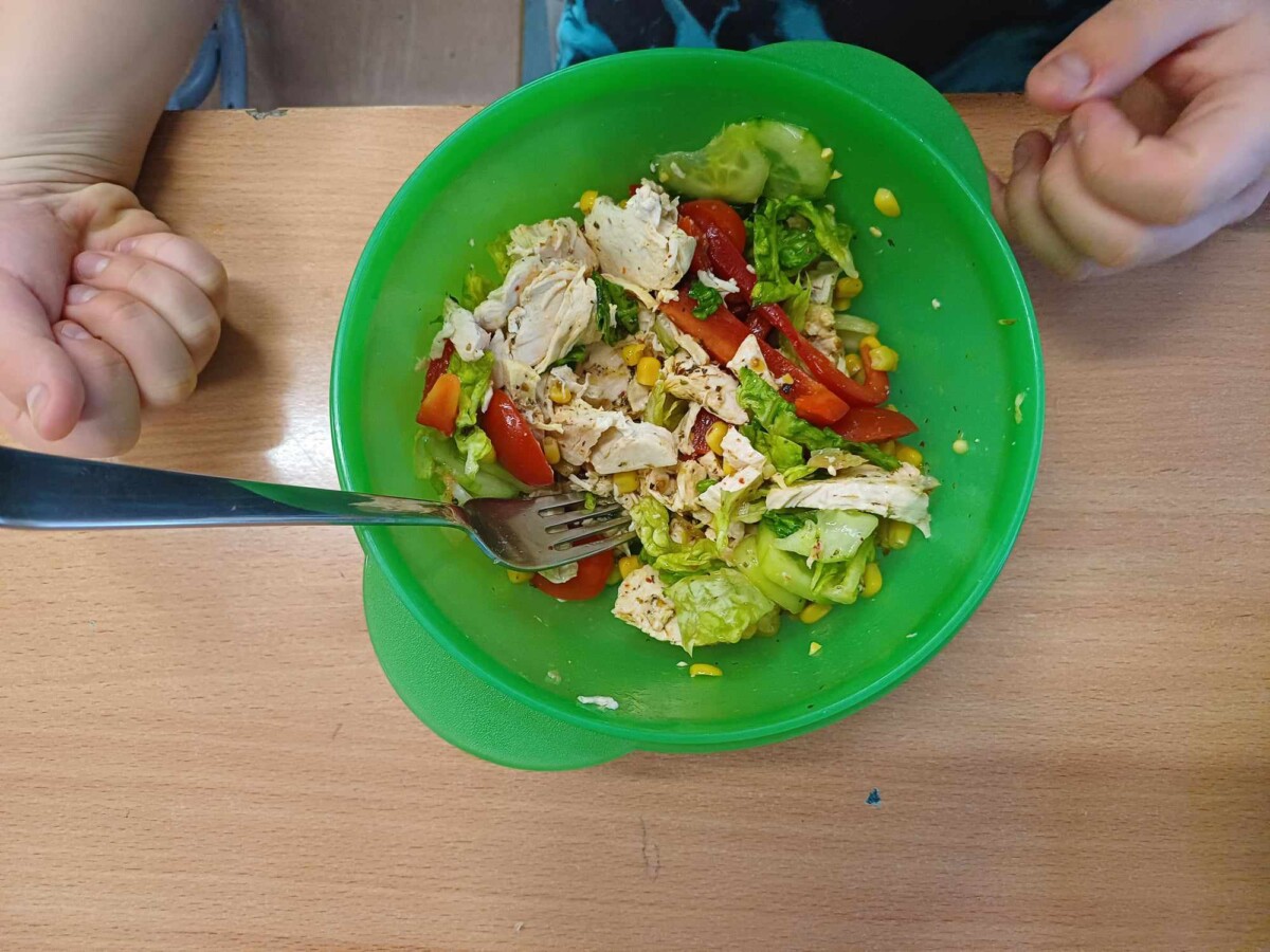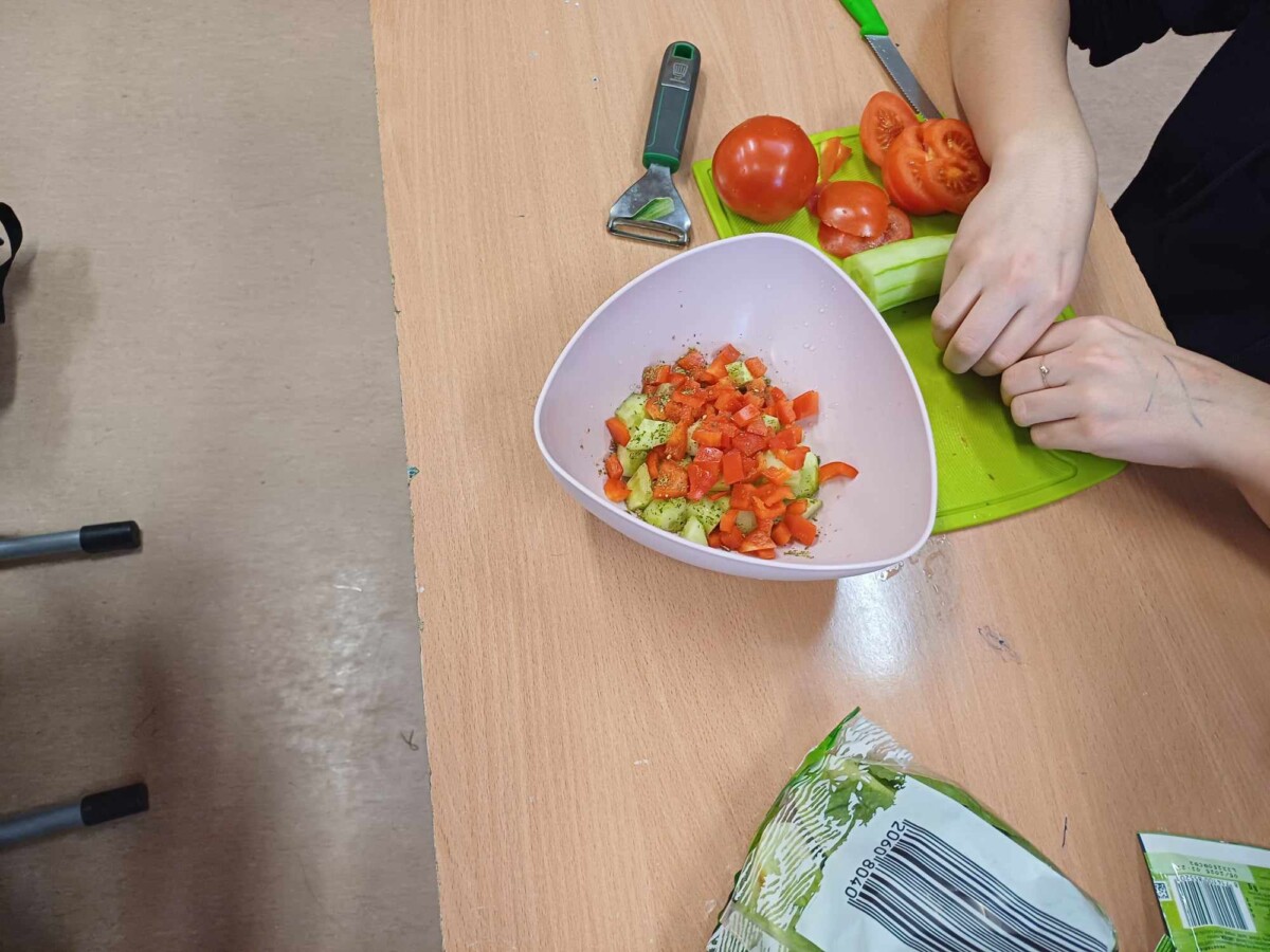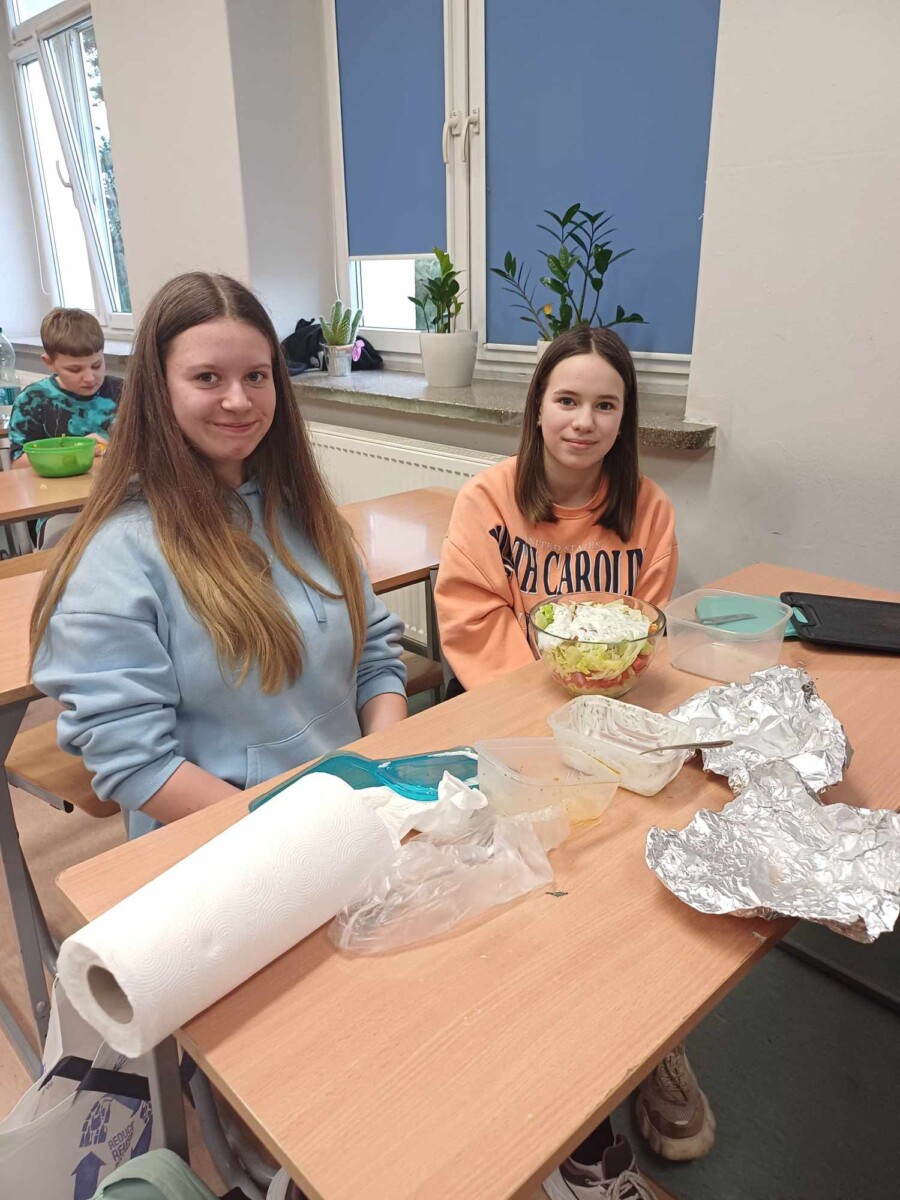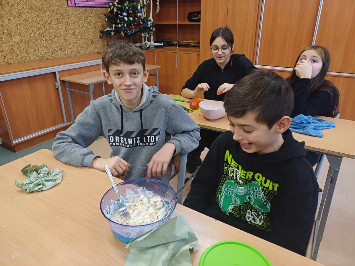 O tym jak ważna w życiu codziennym jest zbilansowana dieta dowiedzieli się uczniowie klasy VII podczas zajęć z wychowawcą. Istotnym aspektem był wpływ tego co jemy i jego oddziaływanie na nasze samopoczucie. Zdrowa dieta wpływa na poprawny rozwój oraz zmniejsza ryzyko chorób przewlekłych. Ponadto zwiększa odporność naszego organizmu, poprawia aparycję, a także pozytywnie wpływa na samopoczucie, usprawnia umysł i pomaga w walce ze stresem. Dlatego też uczniowie na podsumowanie zajęć robili surówkę lub sałatkę według własnego przepisu – im mniej kaloryczna tym lepsza, więc np. zamiast majonezu dodawali jogurt. Zajęcia miały być zachętą do systematycznego sięgania po zdrowe produkty.