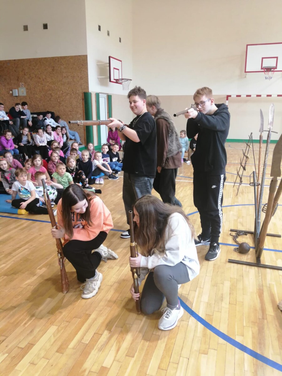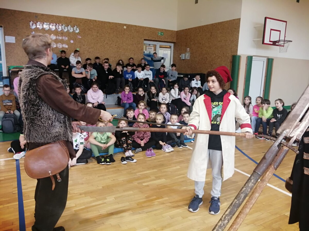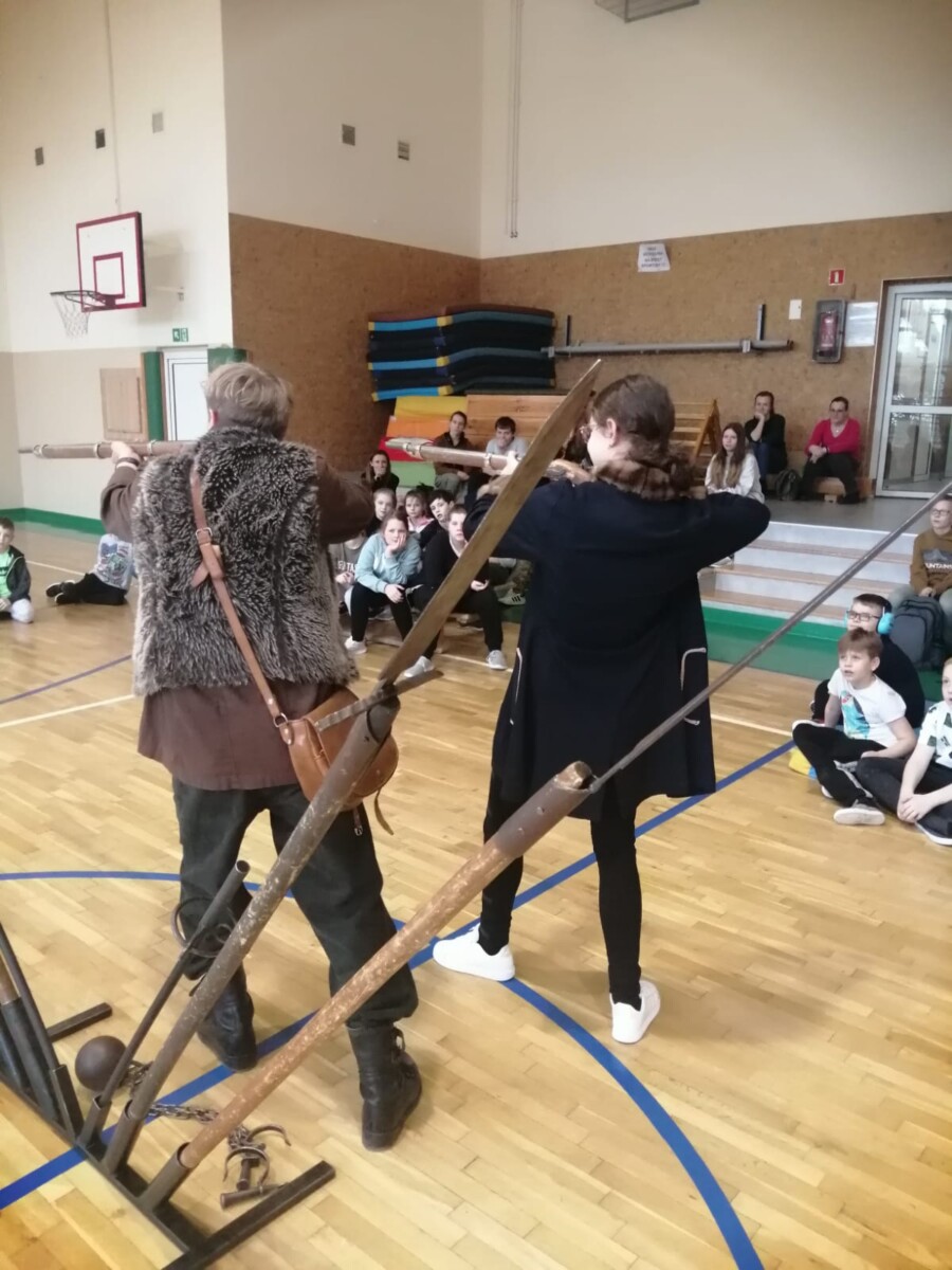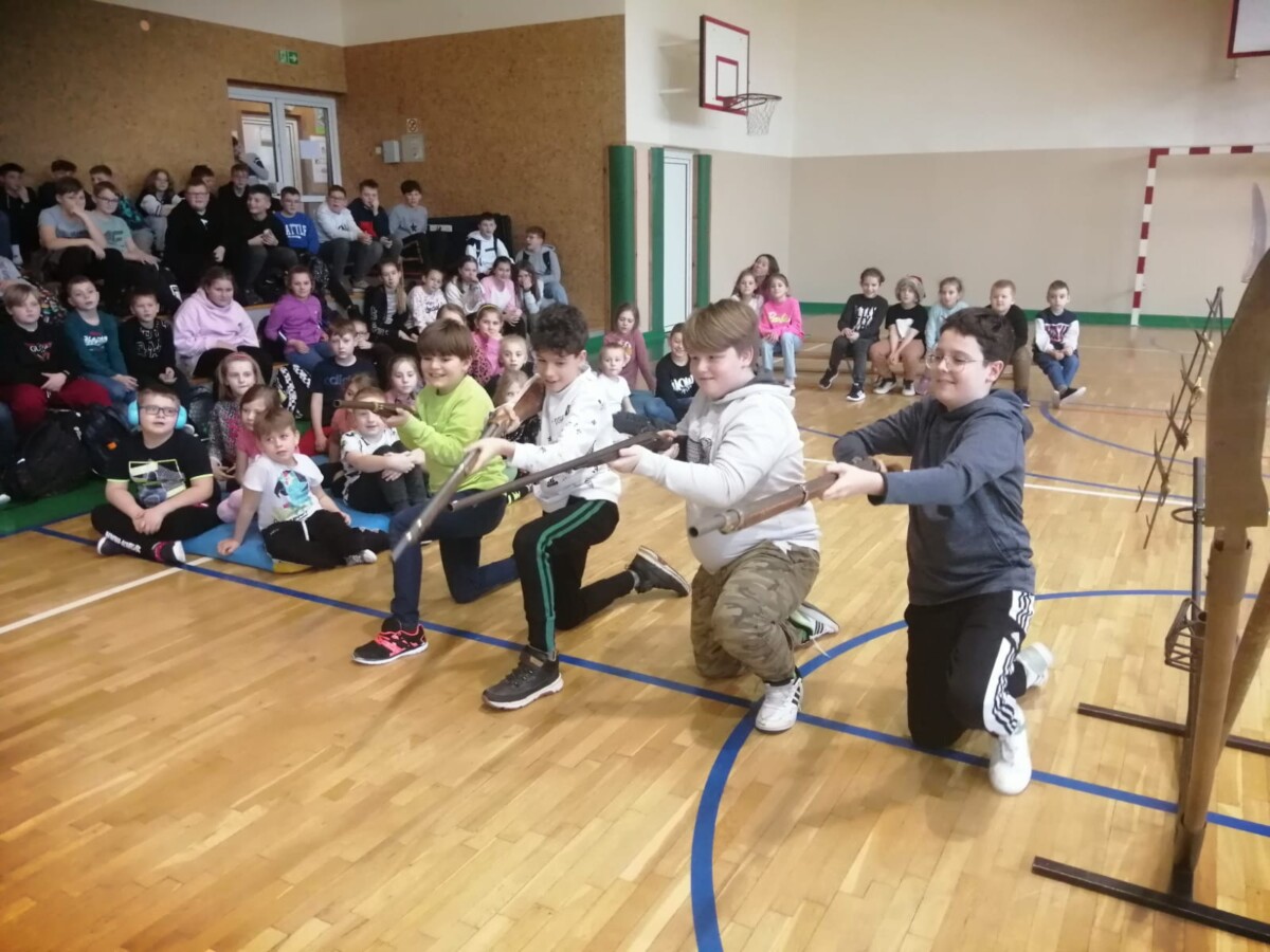 W naszej szkole 22 lutego bieżącego roku odbyły się warsztaty historyczne. Najmłodsi uczniowie zapoznali się z historią Polski, a starsi odświeżyli sobie historyczne fakty. Te 45 minut zdobytej wiedzy były super zabawą, nie tylko dla najmłodszych, ale również dla starszych uczniów naszej szkoły. Wybrane osoby miały możliwość przymierzenia starych strojów, zapoznania się z dawnymi rodzajami broni, stoczenia walki na miecze, a także wczucia się w role skazańca. Podsumowując, takie warsztaty zachęcają dzieci i młodzież do większego poznania dziejów naszej historii.