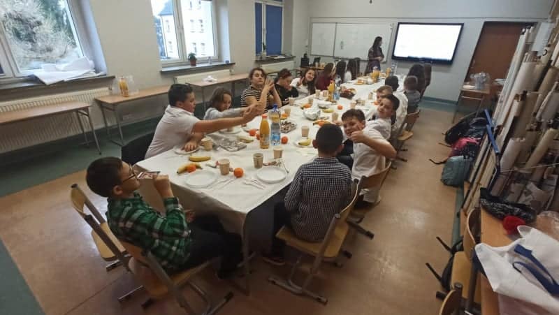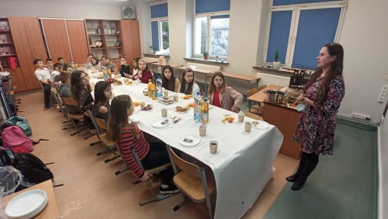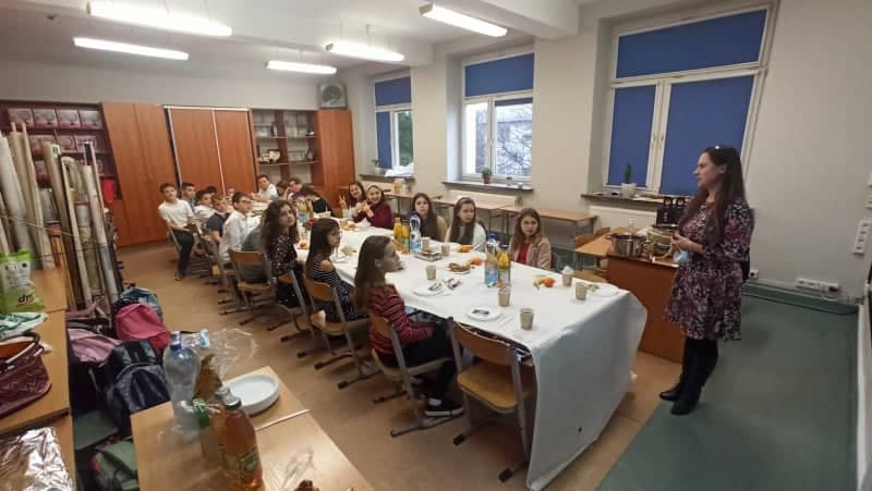 „Jest taki dzień, bardzo ciepły, choć grudniowy. Dzień, zwykły dzień, w którym gasną wszelkie spory. Jest taki dzień, w którym radość wita wszystkich. Dzień, który już każdy z nas zna od kołyski” – tekstem piosenki „Czerwonych gitar” możnaby najlepiej opisać atmosferę panującą na klasowej wigilii. Po przygotowaniach wigilijnego stołu nastąpiła już oficjalna część, na początku uczniowie wraz z wychowawcą i zastępcą wychowawcy obejrzeli nagranie ze szkolnych jasełek. Następnie zostały złożone życzenia, a później uczniowie wraz z wychowawcami rozpoczęli wigilijną konsumpcję. Nie obyło się bez tradycyjnego barszczu z uszkami, pierogów, czy świątecznych pierniczków. Na stole zagościły także inne pyszności. Zwieńczeniem było rozdanie prezentów oraz wspólne śpiewanie kolęd.