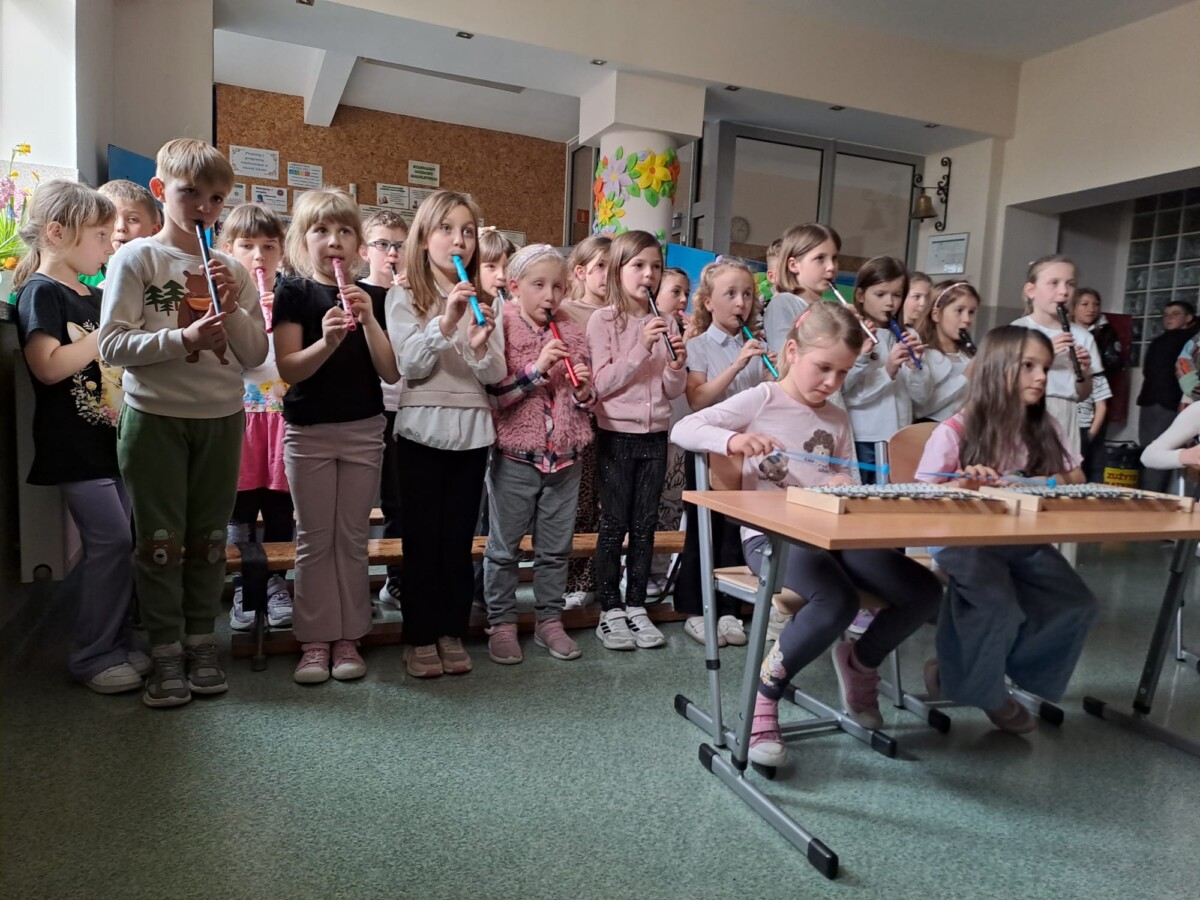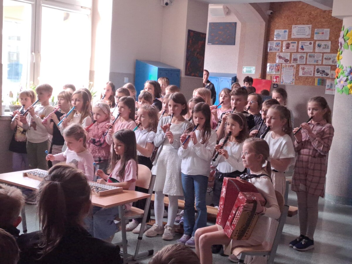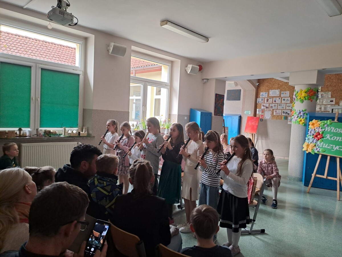 26 marca w naszej szkole odbył się Wiosenny Koncert Muzyczny. Swoje umiejętności gry na instrumentach muzycznych zaprezentowali uczniowie z klas I –III. Swoją przygodę z muzyką dzieci rozpoczęły we wrześniu w ramach zajęć świetlicowych. Co tydzień poznawały nowe utwory, które ćwiczyły w domu. Przez pół roku, dzieci opanowały grę nie tylko na flażoletach, fletach, ale również na dzwonkach chromatycznych i akordeonie. Na dzisiejszy koncert licznie przybyli Pani Dyrektor, nauczyciele, rodzice, a nawet dziadkowie. Na to muzyczne wydarzenie zostało przygotowanych 9 utworów. Dzieci z wielkim entuzjazmem i radością je zaprezentowały, włożyły w to dużo serca i ciężkiej pracy. Za swoje występy zostały nagrodzone gromkimi brawami.