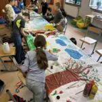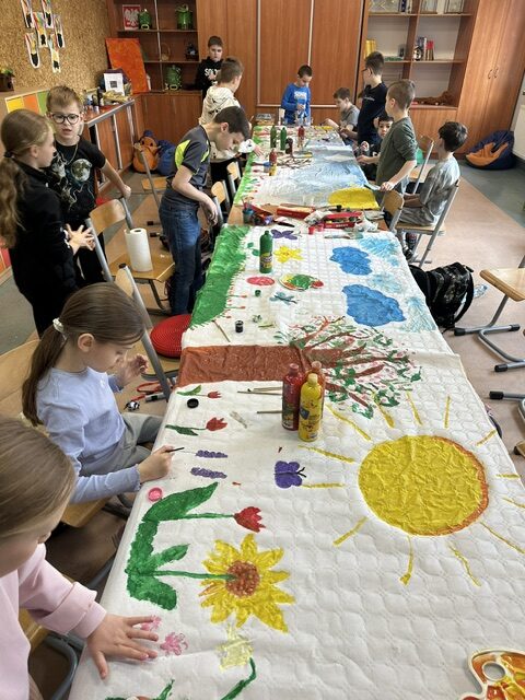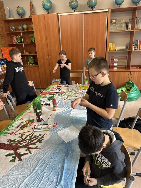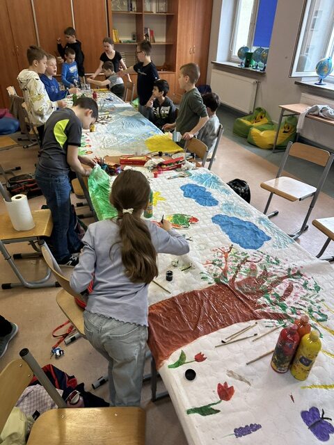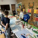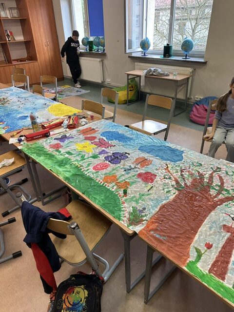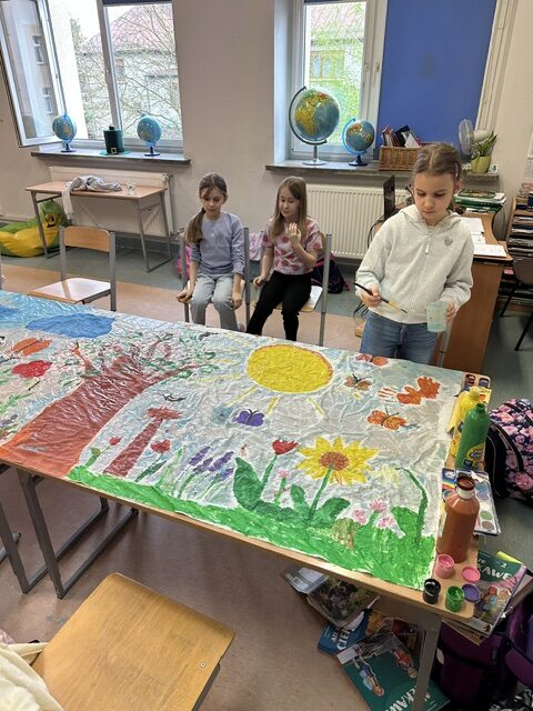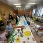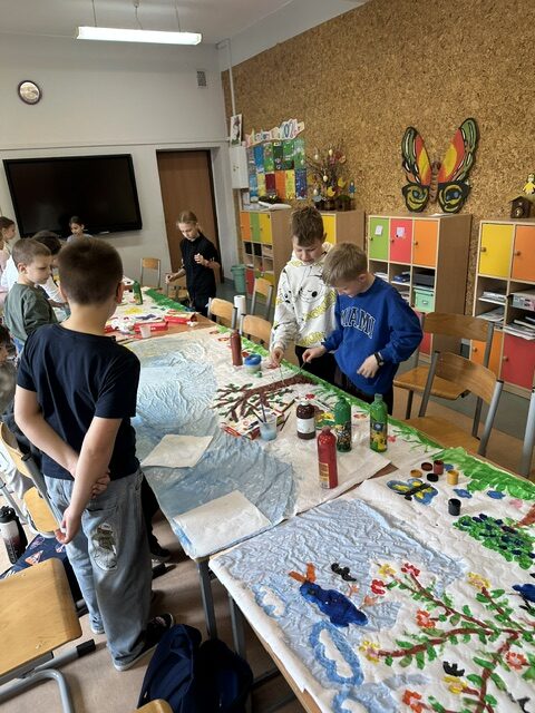Wraz z nadejściem wiosny uczniowie klasy 3a wzięli udział w zajęciach plastycznych, podczas których pracowali w grupach nad wspólnymi pracami. Tematem przewodnim była wiosna – pełna kolorów, słońca i budzącej się do życia przyrody. Dzieci z dużym zaangażowaniem tworzyły swoje dzieła, ucząc się jednocześnie współpracy, dzielenia pomysłami i wzajemnego wspierania. Efektem ich pracy są piękne, barwne kompozycje, które wprowadziły do klasy prawdziwie wiosenną atmosferę.