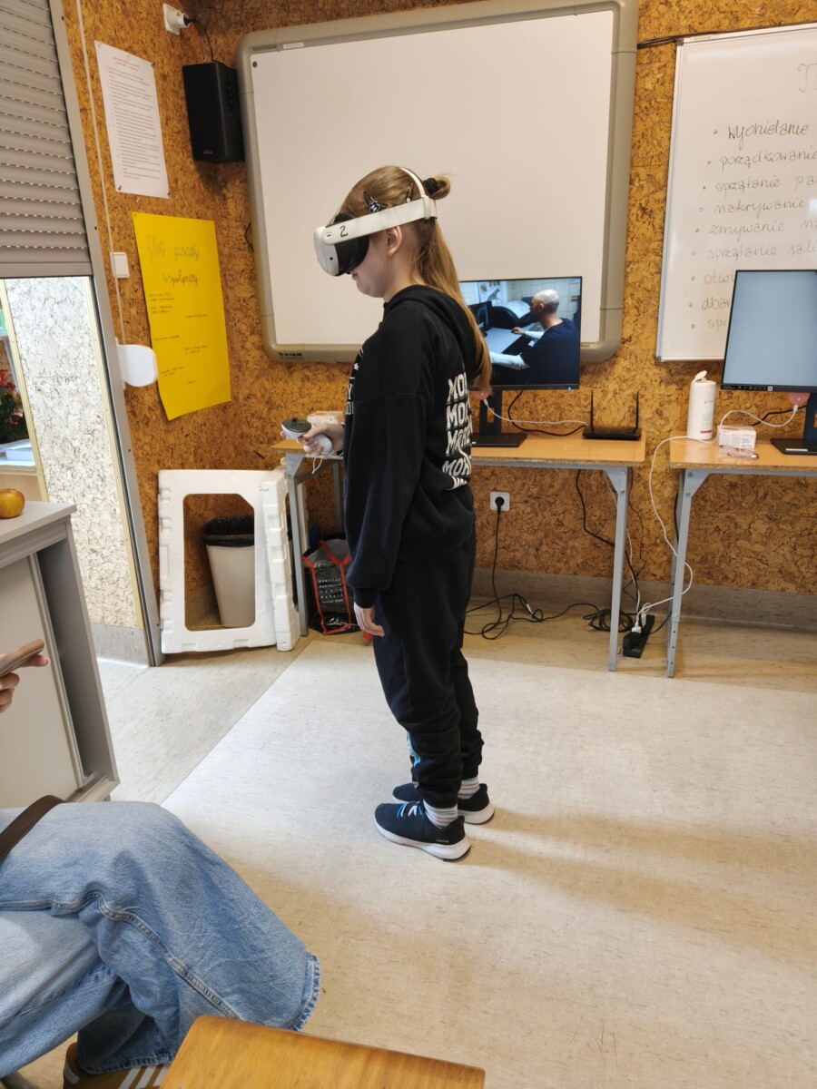Podczas zajęć uczniowie przenieśli się w wirtualną rzeczywistość, gdzie mogli „na własnej skórze” doświadczyć pracy w różnych profesjach. Dzięki technologii VR zobaczyli, jak wygląda dzień pracy m.in. spawacza, kosmetyczki czy operatora maszyn. Taka forma nauki pozwoliła im lepiej zrozumieć specyfikę poszczególnych zawodów oraz wymagania z nimi związane.