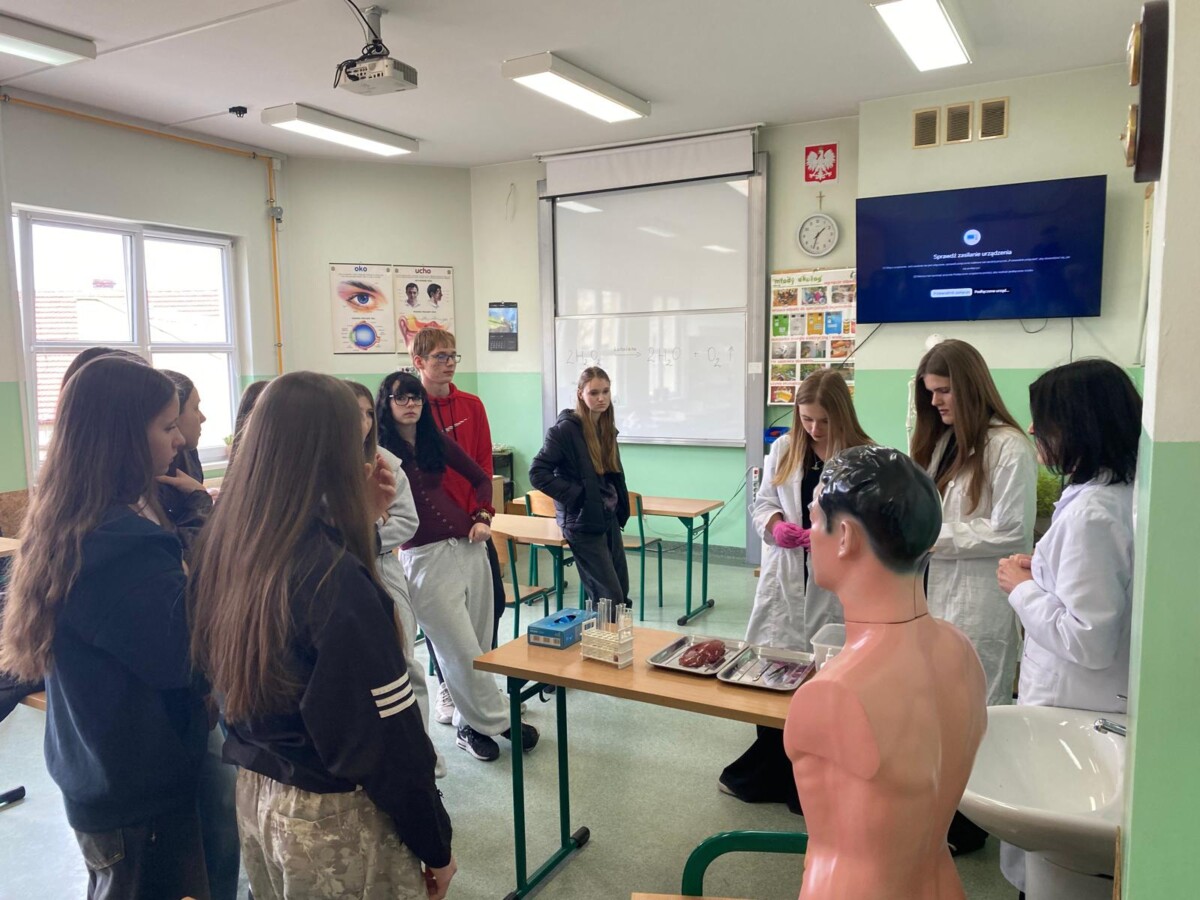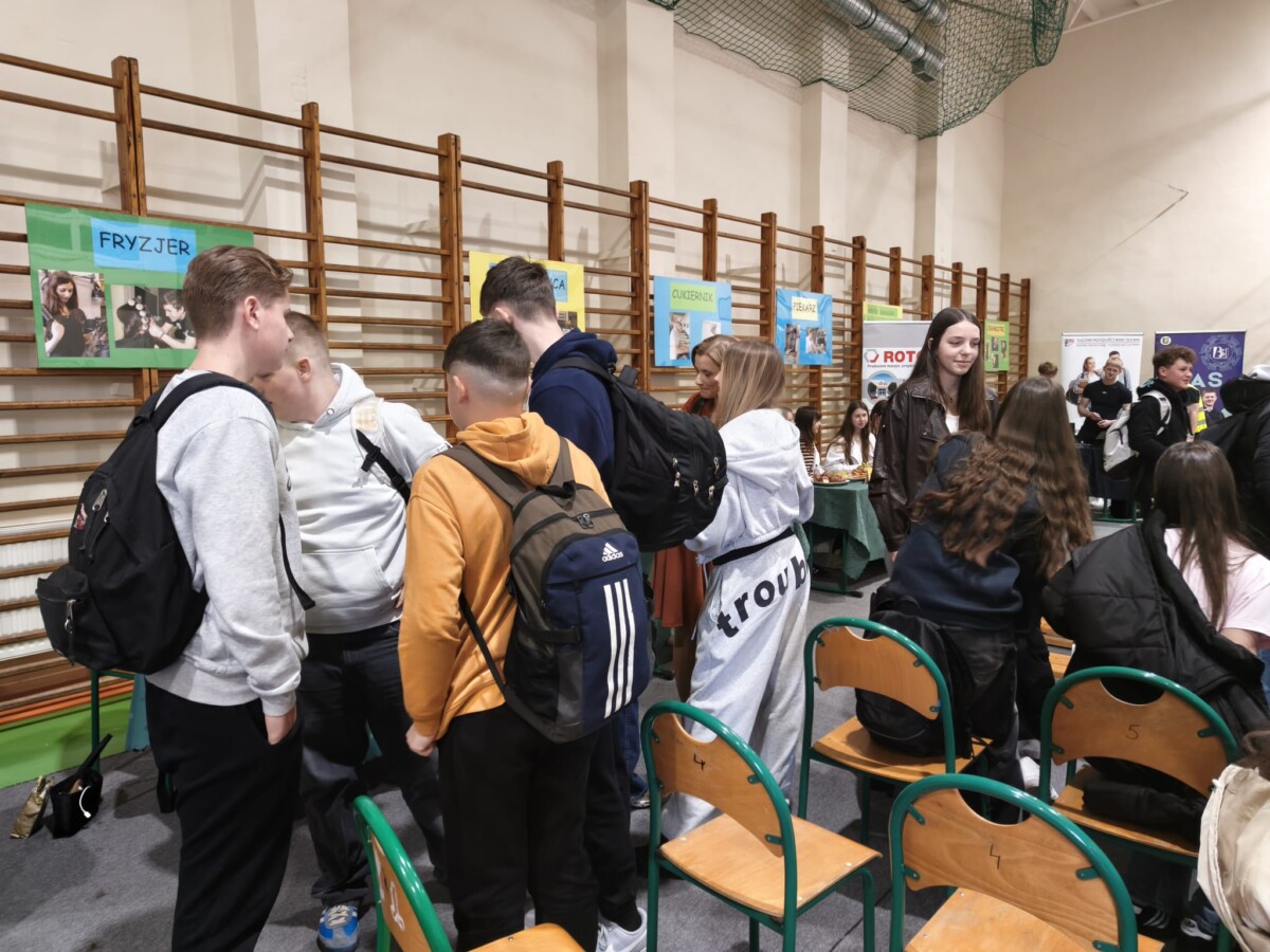 Ósmoklasiści aktywnie uczestniczyli w przygotowanych atrakcjach, zadając pytania i zbierając informacje pomocne przy wyborze dalszej ścieżki edukacyjnej. Wizyta przebiegła w miłej i przyjaznej atmosferze, a organizatorzy zadbali o to, by każdy mógł poczuć się swobodnie i zdobyć cenne wskazówki dotyczące przyszłości.