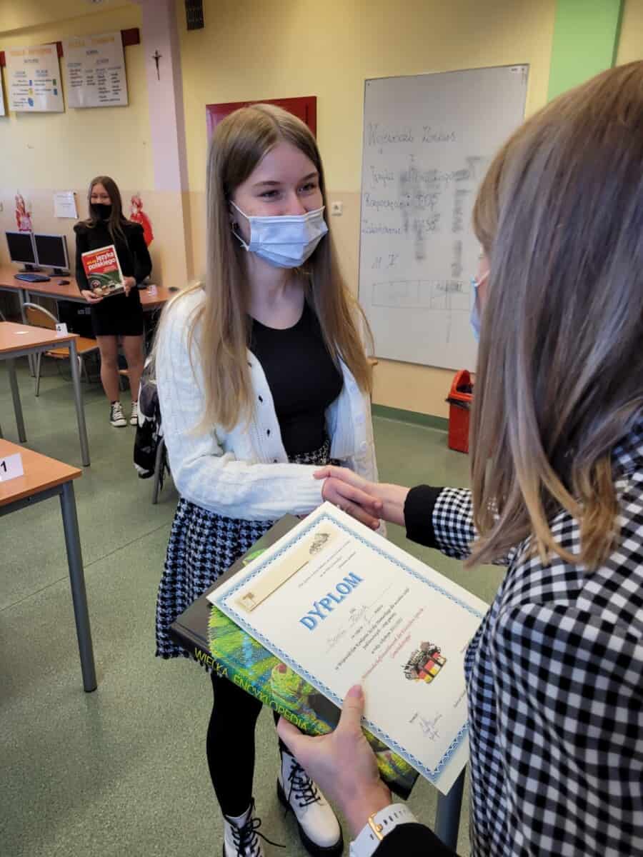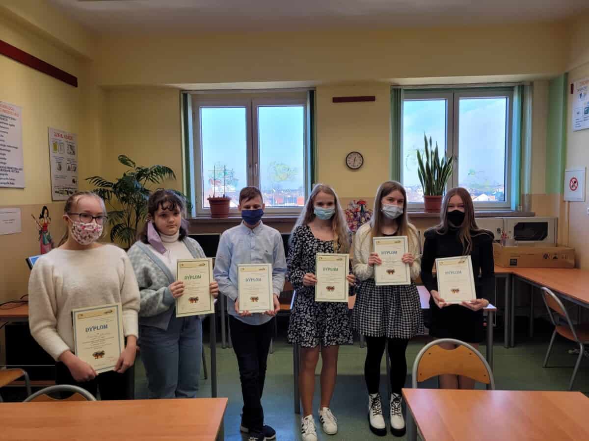 podstawowych województwa opolskiego. Z zadaniami konkursowymi na tym etapie zmierzyło się 12 uczniów naszej szkoły, z klas IV – VIII. Do kolejnego etapu – gminnego, zakwalifikowało się trzech uczniów: Fabian Kaluża z klasy VII b, Sonia Kociok z klasy VIII a oraz Izabela Matros z klasy VIII b. Etap gminny Konkursu miał miejsce 12 stycznia 2022 i był przeprowadzony w Publicznej Szkole Podstawowej z Oddziałami Sportowymi w Dobrzeniu Wielkim. Na tym szczeblu zmierzyli się najlepsi uczniowie ze szkół podstawowych naszej gminy, gdzie w czasie 90 minut rozwiązywali zadania testowe, podzielone na III części: I – rozumienie testu czytanego (dwa długie teksty), II – test gramatyczno-leksykalny ( 12 zadań ) oraz III – Landeskunde ( realioznawstwo krajów niemieckojęzycznych, trzy zadania ) – maksymalnie uczniowie mogli uzyskać z testu 110 punktów. Uczennica naszej szkoły Sonia Kociok zdobyła 103,5 punktów, co stanowi 94%. Obecnie czekamy na weryfikację prac przez komisję wojewódzką oraz na zaproszenie uczennicy do eliminacji wojewódzkich. Sonia już drugi rok z rzędu będzie reprezentować naszą szkołę na najwyższym szczeblu konkursów przedmiotowych z języka niemieckiego.