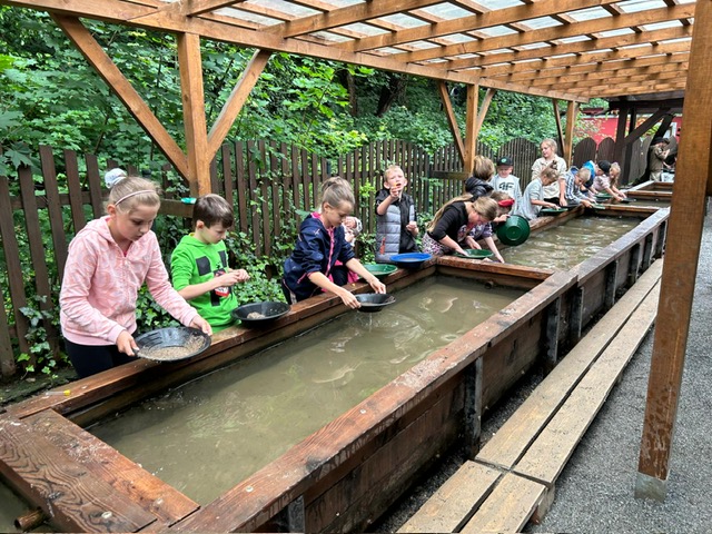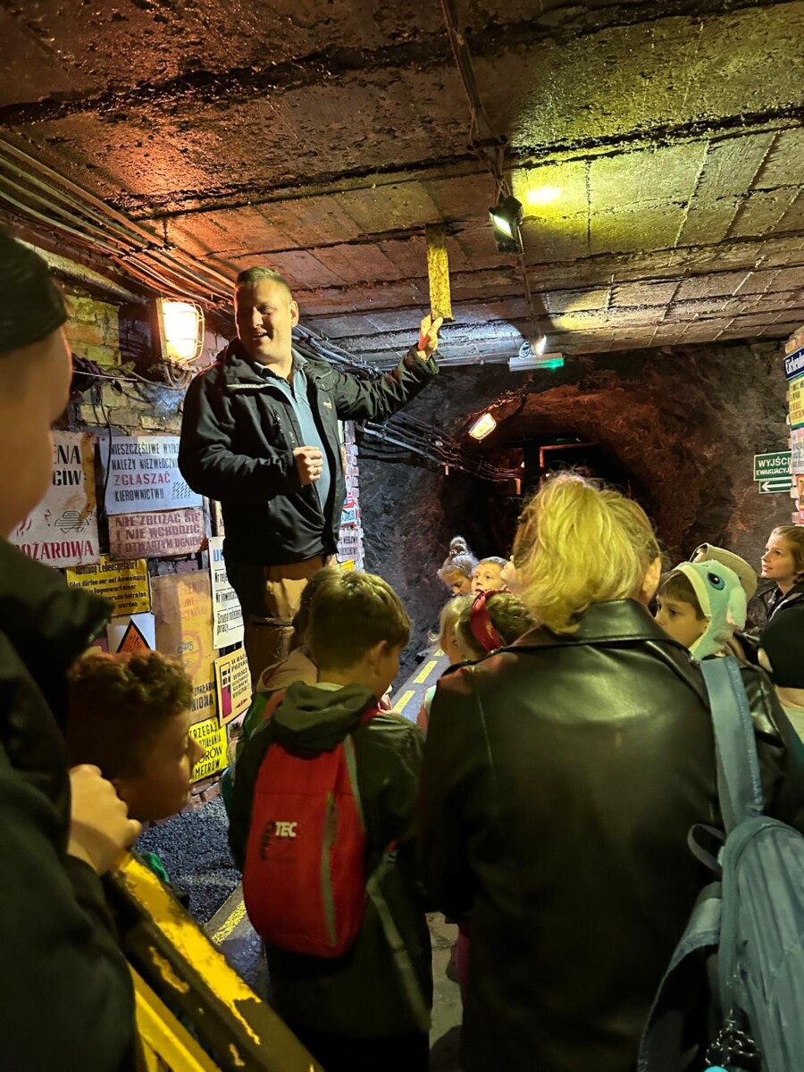 3 czerwca odbyło się długo wyczekiwane przez klasę drugą wydarzenie. Wyruszyliśmy autokarem w podróż pełną przygód do Złotego Stoku położonego w Górach Sowich. Znajduje się tam kopalnia, w której wydobywano kiedyś złoto. Po przyjeździe zostaliśmy serdecznie przywitani przez przewodnika, który zabrał nas w fascynującą podróż do wnętrza kopalni. W trakcie zwiedzania opowiedział nam historię wydobywania złota z tego miejsca. Górnictwo w Złotym Stoku sięga czasów średniowiecza. Kiedy podążaliśmy za przewodnikiem, przekazywał nam informacje na temat technik wydobywczych stosowanych w przeszłości oraz życia górników. Byliśmy pod wrażeniem trudu i determinacji, jakie musieli wykazać górnicy, aby wydobyć cenny materiał spod ziemi. Przewodnik pokazał nam również niektóre narzędzia i maszyny używane do wydobycia złota. Było to fascynujące zobaczyć, jak technologia górnicza ewoluowała na przestrzeni wieków. Zobaczyliśmy skarbiec kopalni oraz pokój (w dawnych czasach) alchemiczny. Następnie przeszliśmy przez tunel strachu, w którym roiło się od pajęczyn i szkieletów. Kolejną atrakcją był „Wodospad Życzeń”, gdzie wypowiada się życzenia, a on kiedyś je spełni. Niesamowitą atrakcją okazał się pociąg, który wywiózł nas z kopalni. Na powierzchni mieliśmy okazję poczuć się jak prawdziwi poszukiwacze złota. Każdy z nas otrzymał talerz z wymieszanym piaskiem i złotem. Naszym zadaniem było wypłukiwanie piasku z talerza. Kiedy piasek został w części wypłukany, były widoczne połyskujące w słońcu grudki złota. Oprócz płukania piasku mogliśmy wydobywać minerały i kamienie szlachetne np. rubiny czy ametyst. Na zakończenie zjedliśmy jeszcze pyszny obiad w restauracji