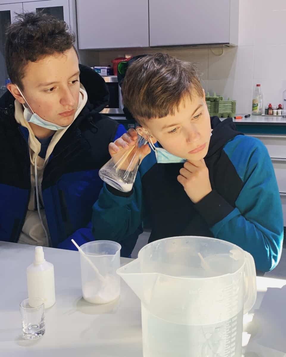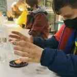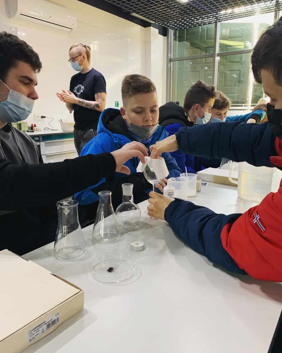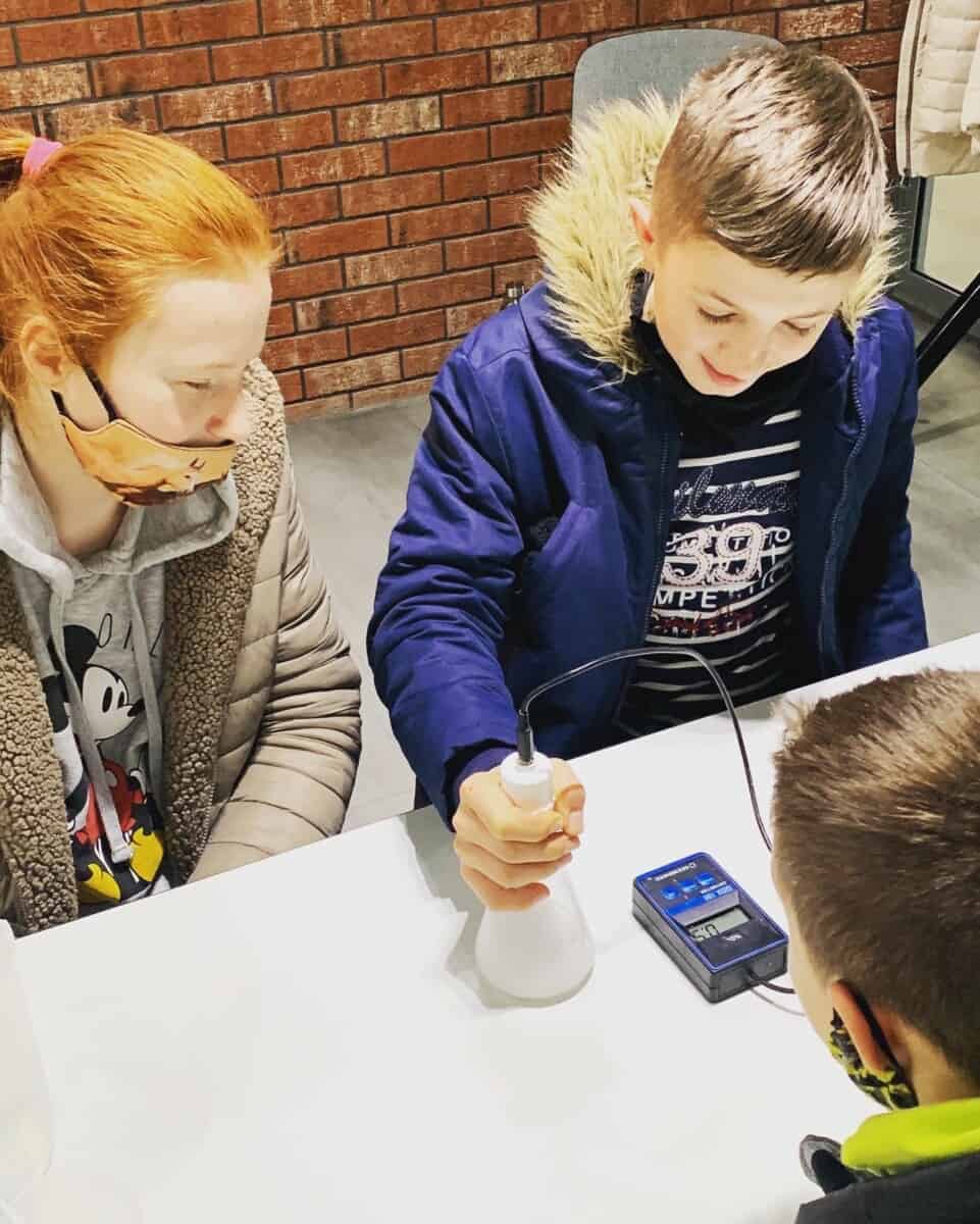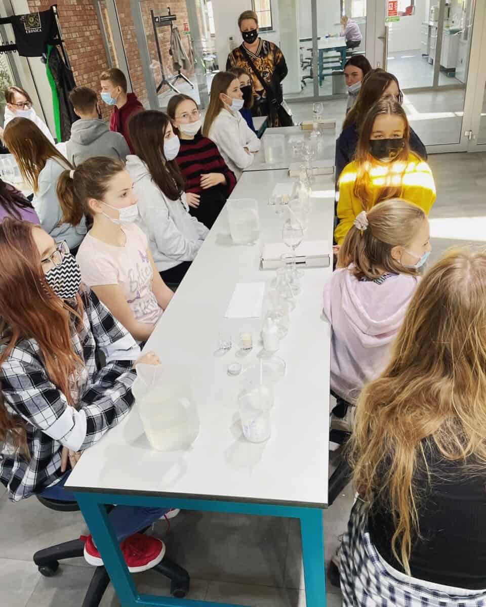 Uczniowie wzięli udział z wielkim zaangażowaniem w nietypowej lekcji fizyki, chemii i matematyki podczas warsztatów „Powietrze i jego skład”.