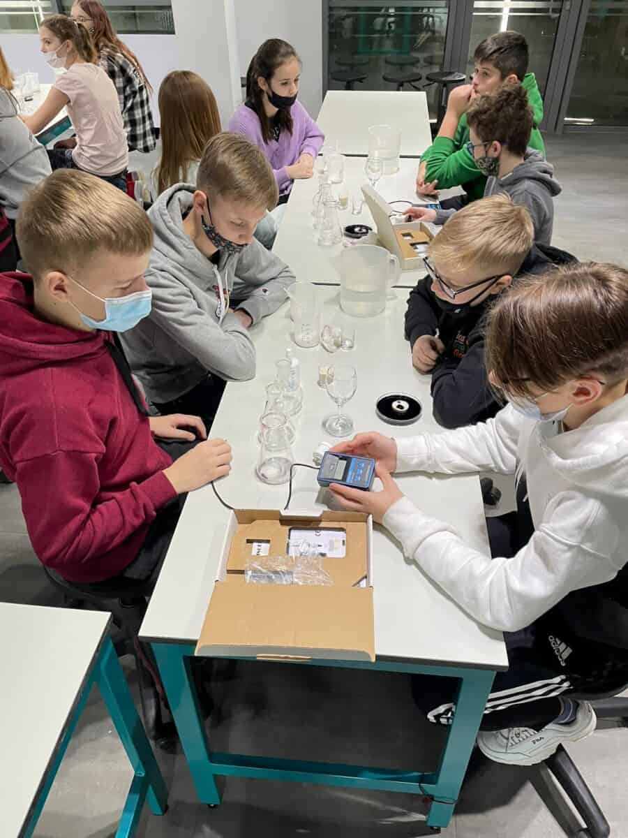 Swoją wiedzę z przedmiotów ścisłych poszerzali również podczas aktywnego zwiedzania HYDROPOLIS z przewodnikiem. Uczniowie ze względu na wiele informacji zapisanych w języku angielskim mogli utrwalać słownictwo dotyczące zmian klimatu i ochrony środowiska.