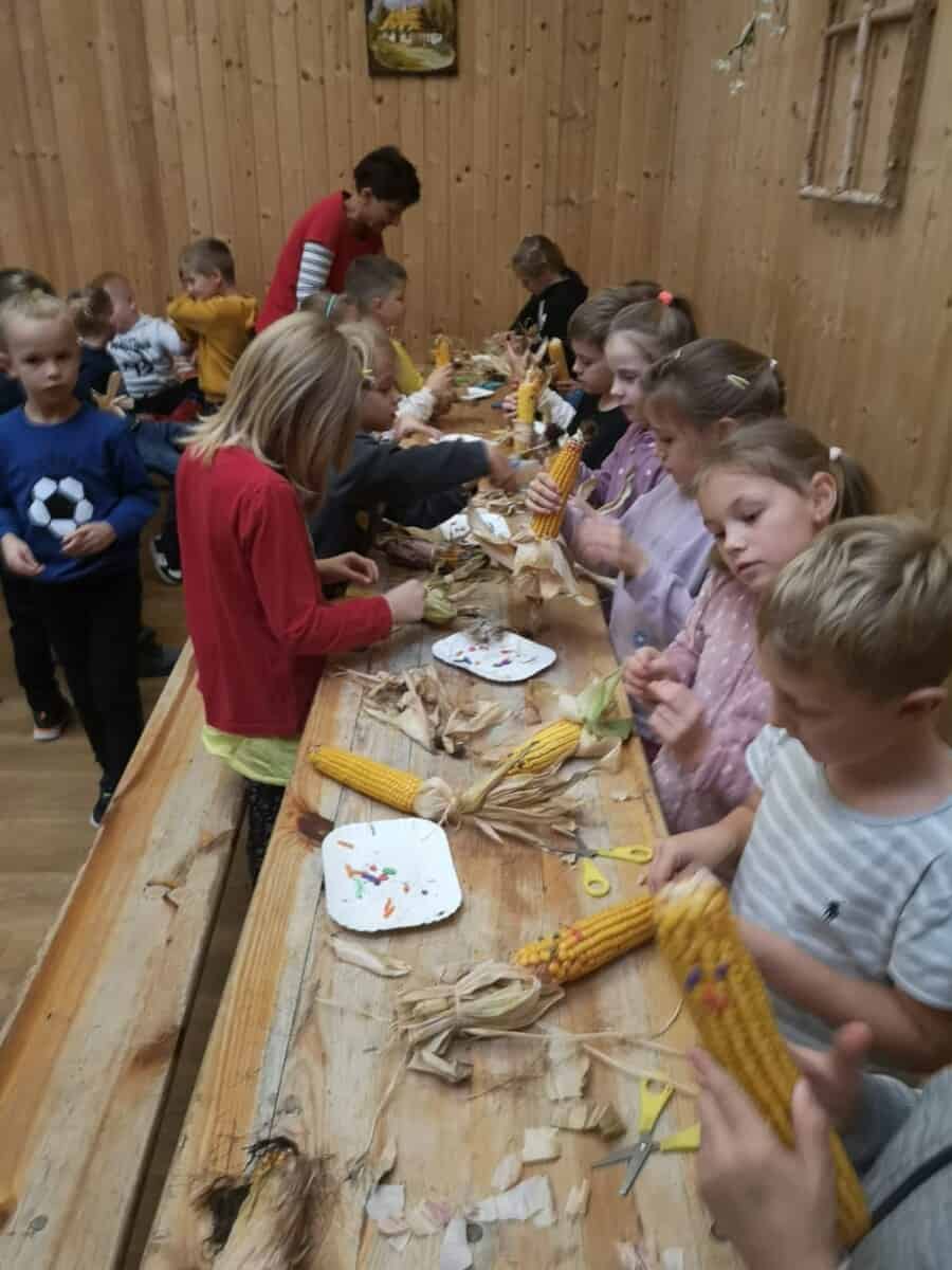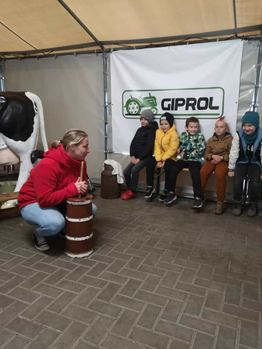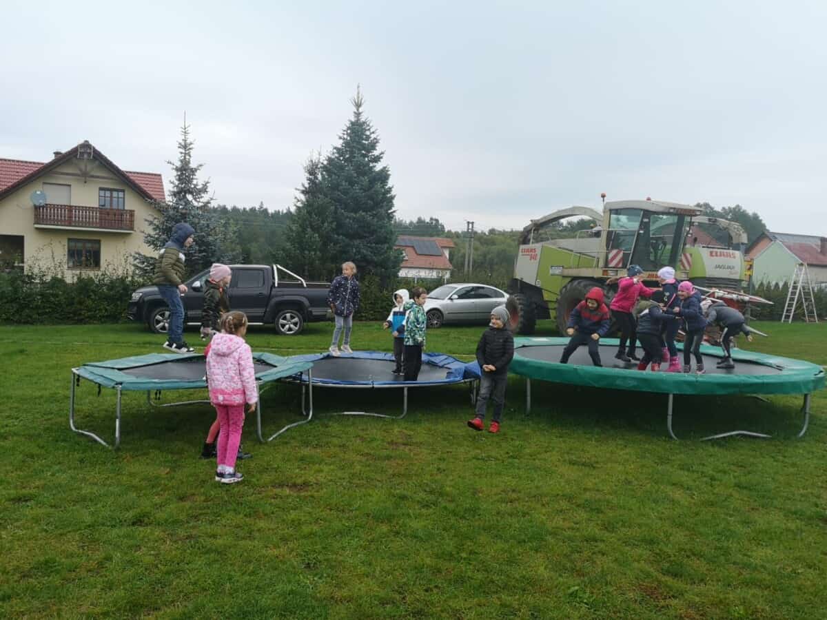 Dnia 30 września br. klasa 1a była na wycieczce w gospodarstwie agroturystycznym w Staniszczach Małych. Dzieci miały okazję być na zajęciach w Zagrodzie Edukacyjnej. Uczniowie poznali, co to jest wieś i gospodarstwo rolne w innym wymiarze – jako miejsce , atrakcji, rozrywki, odpoczynku , aktywności. Dzieci poznały uroki tego nietypowego gospodarstwa, którego głównym zajęciem jest edukacja poprzez działanie i zabawę w różnych formach , treściach i metodach. Miały okazję upiec samodzielnie chleb, zrobić kukiełkę z kukurydzy, wykopać ziemniaki w polu, przejść przez labirynt kukurydzy, wydoić samodzielnie krowę. A to wszystko pod czujnym okiem pań instruktorek. Nie zabrakło również zabawy – na trampolinach i na „gokartach”.