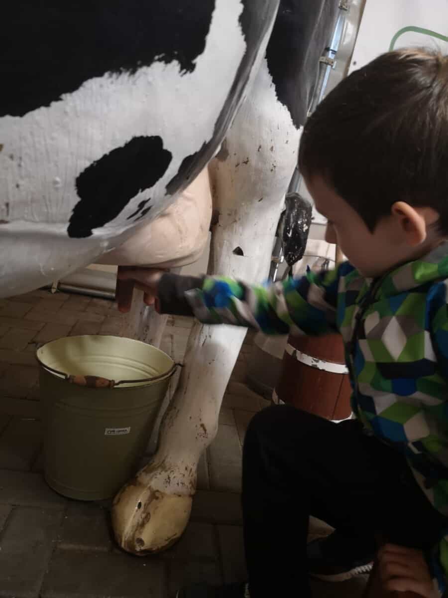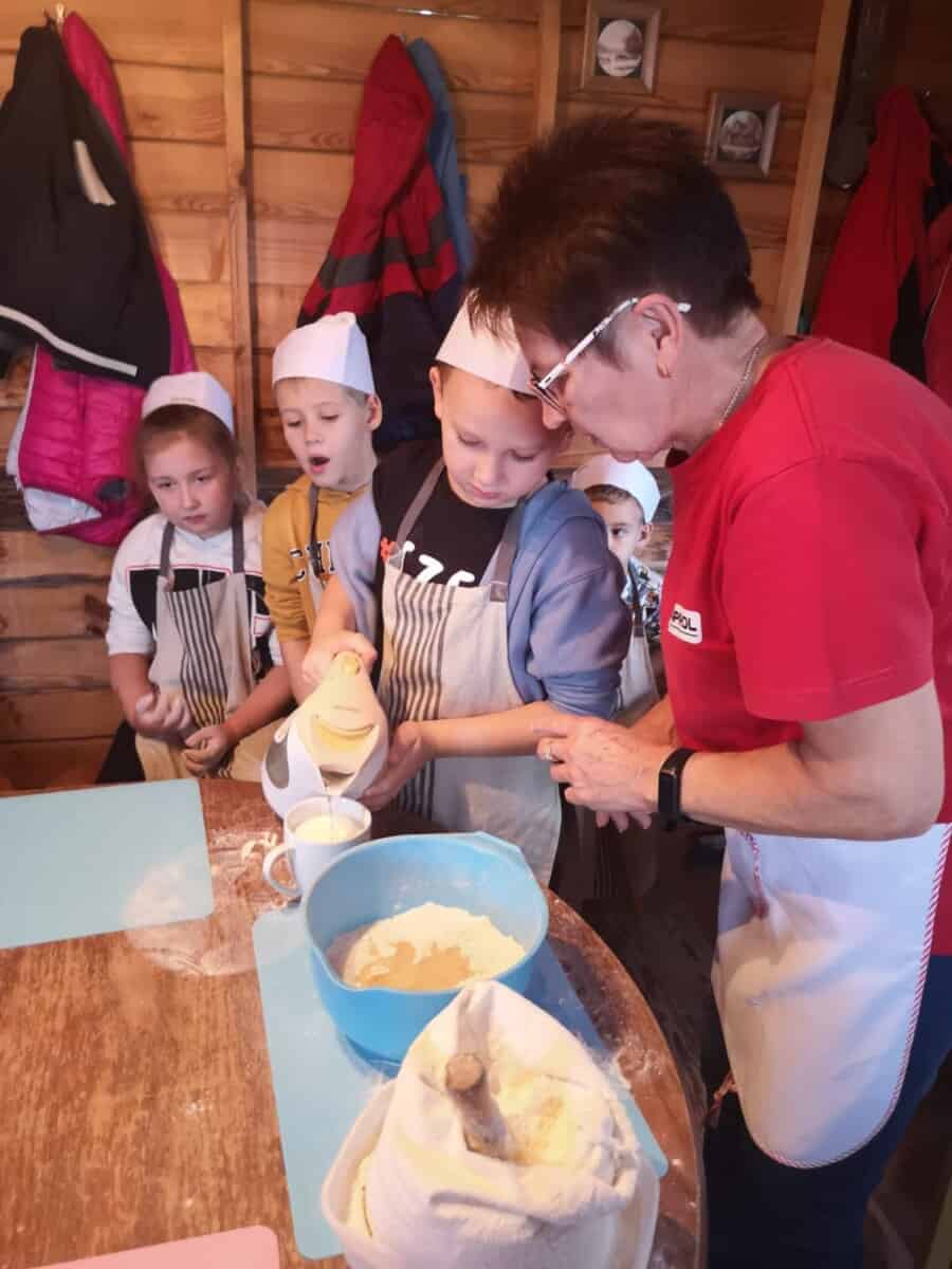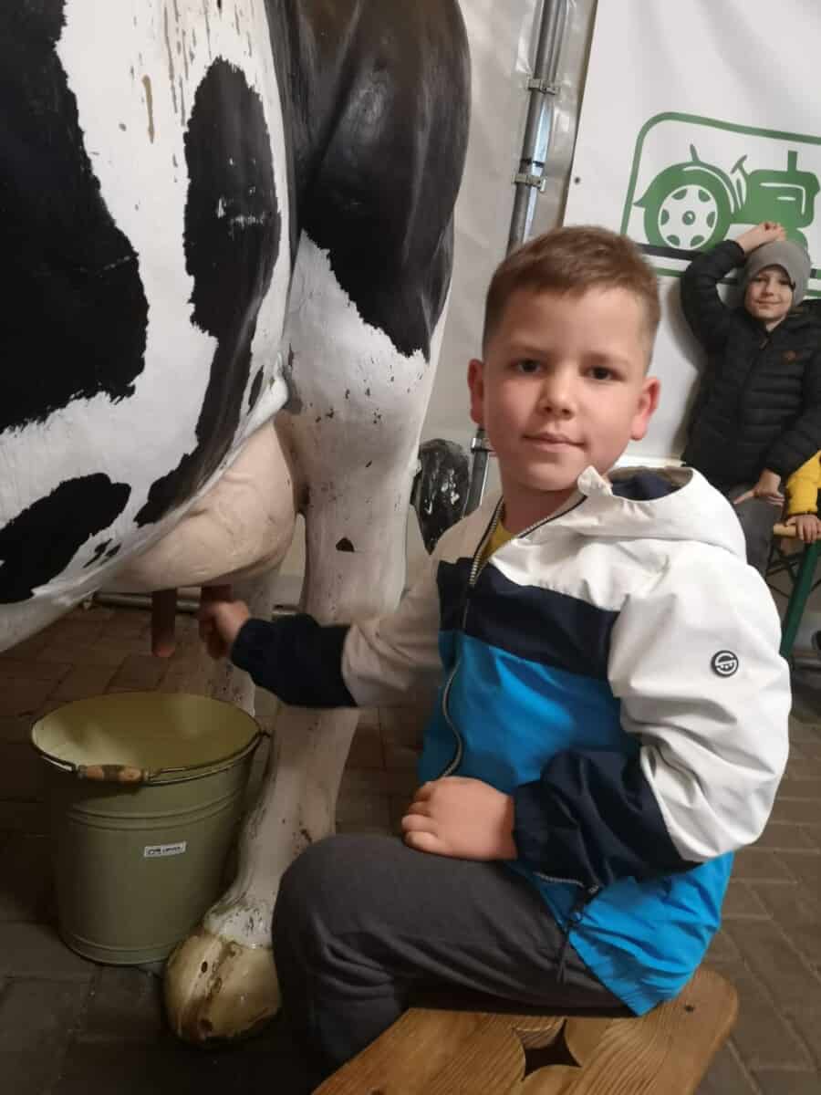 Dnia 30 września br. klasa 1a była na wycieczce w gospodarstwie agroturystycznym w Staniszczach Małych. Dzieci miały okazję być na zajęciach w Zagrodzie Edukacyjnej. Uczniowie poznali, co to jest wieś i gospodarstwo rolne w innym wymiarze – jako miejsce , atrakcji, rozrywki, odpoczynku , aktywności. Dzieci poznały uroki tego nietypowego gospodarstwa, którego głównym zajęciem jest edukacja poprzez działanie i zabawę w różnych formach , treściach i metodach. Miały okazję upiec samodzielnie chleb, zrobić kukiełkę z kukurydzy, wykopać ziemniaki w polu, przejść przez labirynt kukurydzy, wydoić samodzielnie krowę. A to wszystko pod czujnym okiem pań instruktorek. Nie zabrakło również zabawy – na trampolinach i na „gokartach”.