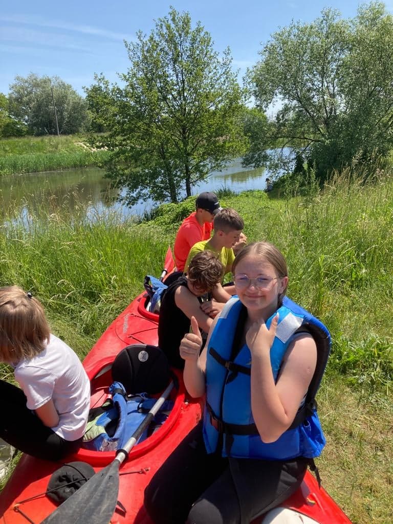 W dniu 31.05.23r. odbyła się wycieczka uczniów ze szkolnego koła wolontariatu na kajaki. Trasa wyjazdu obejmowała tereny Borek oraz Kolanowic. Uczniowie płynęli Małą Panwią aż do Borek. Ale zanim wsiedli do kajaków musieli odbyć rozgrzewkę pod czujnym okiem Reprezentantki Polski w kajakarstwie – pani Agaty Zielińskiej, później krótki instruktaż na temat bezpieczeństwa udzielany przez pana wójta i można zacząć kajakową przygodę. Młodzież stawiła czoło kajakowemu wyzwaniu i pokonała dystans od Kolanowic do Borek. Podsumowaniem wyprawy było ognisko z kiełbaskami. Wycieczkę można uznać za wspaniałą i niezapomnianą przygodę. Dziękujemy również panu wójtowi oraz pani kierownik Wydziału Wychowania Fizycznego i Sportu Politechniki Opolskiej – pani Dorocie Borzuckiej za ubogacenie naszego wyjazdu.