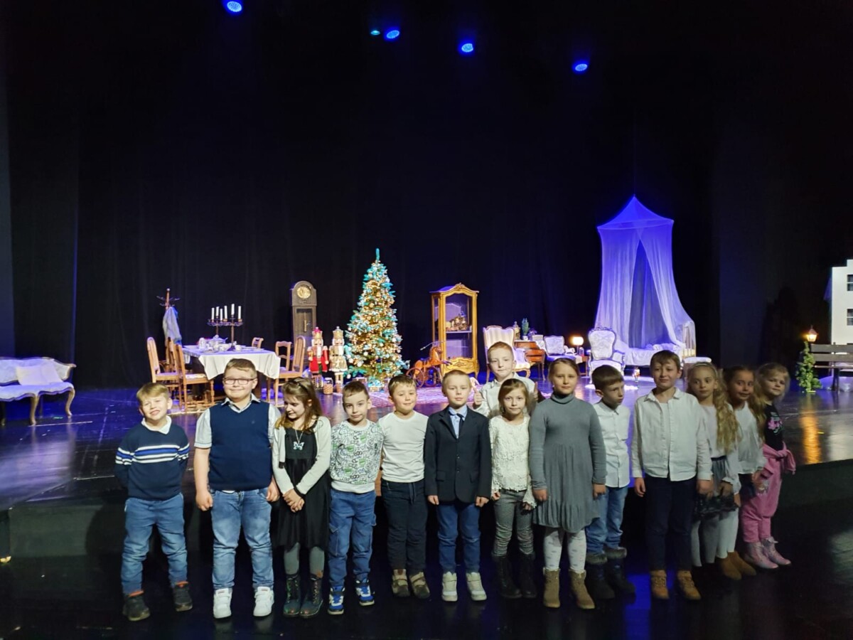 16 lutego wyjechaliśmy na przedstawienie do teatru imienia Jana Kochanowskiego w Opolu. Wyjazd był po trzeciej lekcji o 11.00. Pojechaliśmy autobusem. Byliśmy trochę wcześniej, dlatego musieliśmy poczekać parę minut na rozpoczęcie spektaklu. Aktorami na scenie byli uczniowie i przedszkolaki z Kup. Spektakl opowiadał o przygodach Klary i jej zabawkach, które ożyły. Całe przedstawienie było opowiadane przez narratora. Mali aktorzy tylko odgrywali role, ale nic nie mówili. Podczas przedstawienia było dużo muzyki i dużo tańców baletowych. Było to piękne przedstawienie. Nasi koledzy z Kup bardzo się postarali. Dzięki temu wydarzeniu dowiedzieliśmy się, że „Dziadek do orzechów” jest bardzo znanym baletem na świecie.