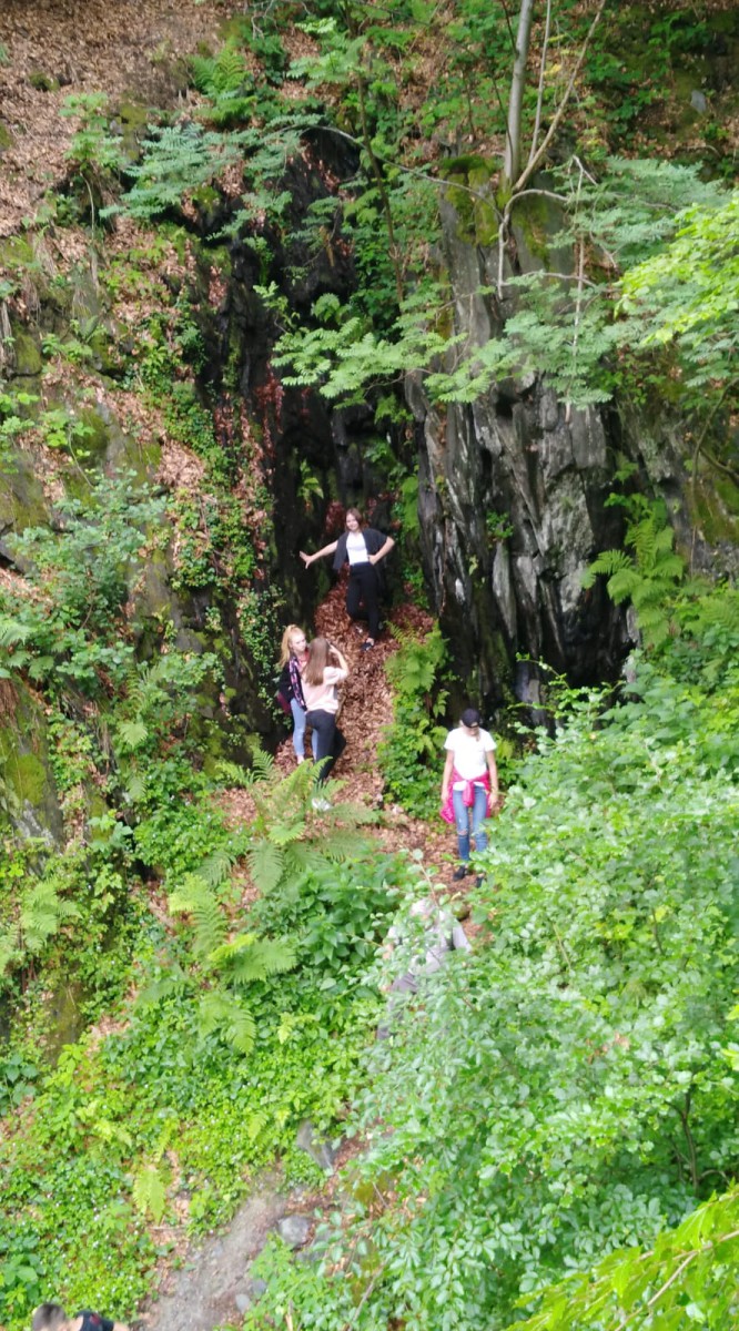 Wędrówka o długości 20 km szlakiem żółtym i czerwonym dała możliwość zobaczenia malowniczej Gwarkowej Skałki i Piekiełka. Nie brakowało marudzenia “a daleko jeszcze?”, chociaż grupa poradziła sobie wybornie z Kopą. Podejście na wysokość 889 m.n.p.m i zejście wzmocniło nasze mięśnie kończyn dolnych i kondycję. Tym ważniejsza była odnowa biologiczna na pobliskim basenie. Po wodzie wiadomo, głód człowieka dopada. Dlatego do późnych godzin nocnych regenerowaliśmy się przy ognisku.