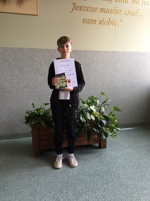 Z kolei w kategorii klas 5-8 zwycięzcami konkursu zostali : I miejsce – Julia Smolińska – klasa 8 , II miejsce -Maksymilian Taszycki – klasa 5.
