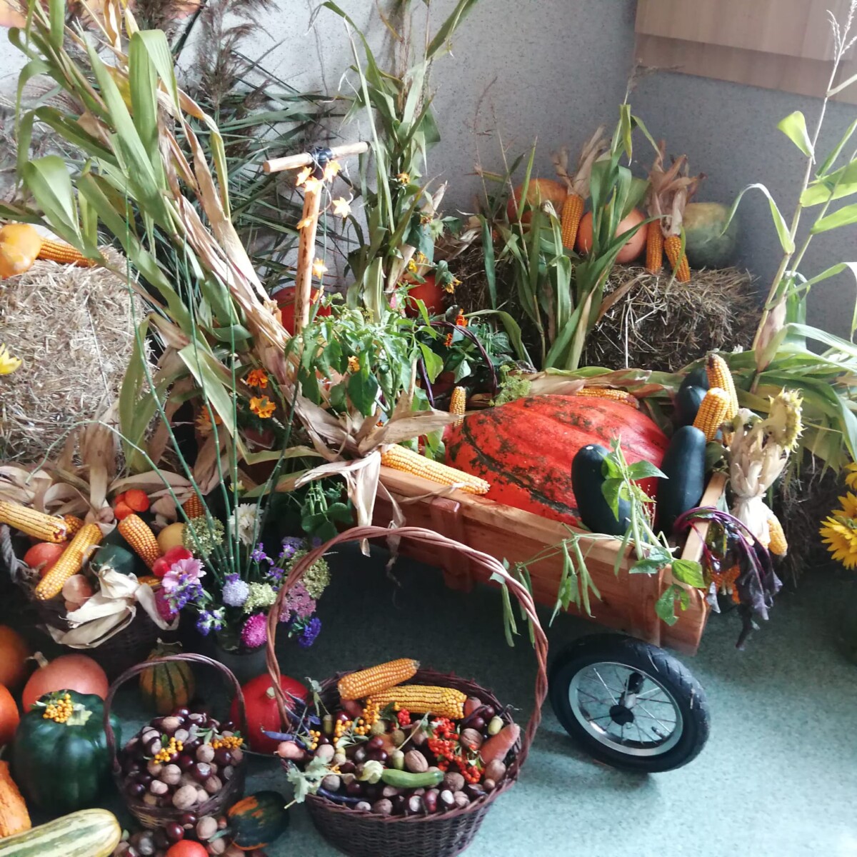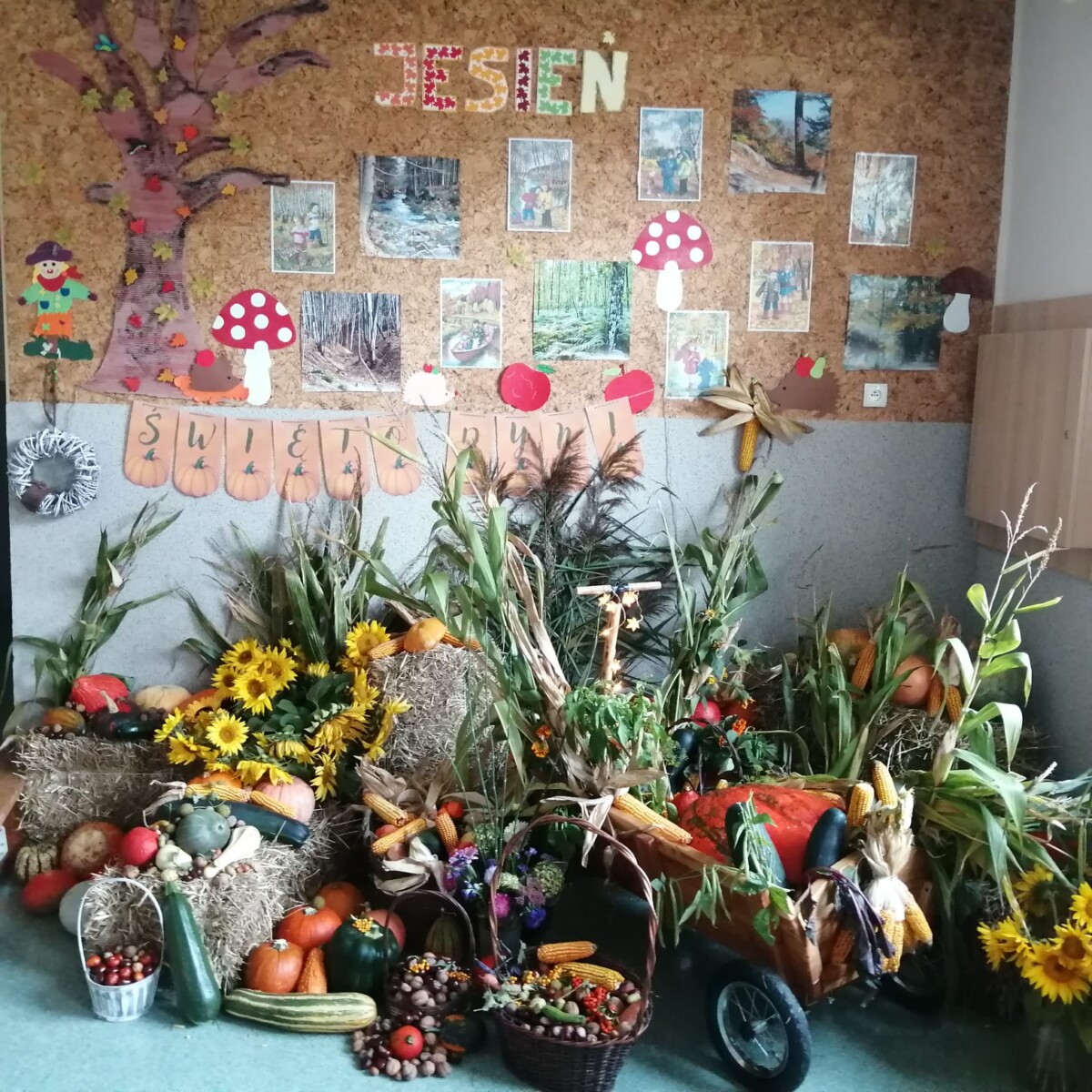 11 października 2023 r. w holu naszej szkoły została przygotowana wystawa dyń. Naszym zadaniem było przynieść dynie do szkoły. Mieliśmy z nich zrobić wspólną wystawę razem z klasą 3b. Na pierwszej lekcji razem z panią ustawialiśmy dynie w holu i wkładaliśmy kasztany do koszyków, które były częścią dekoracji. Pani podawała ozdoby i mówiła, gdzie je położyć. Razem udało nam się stworzyć ciekawą dyniową dekorację. Ładnie ozdabia naszą szkołę.