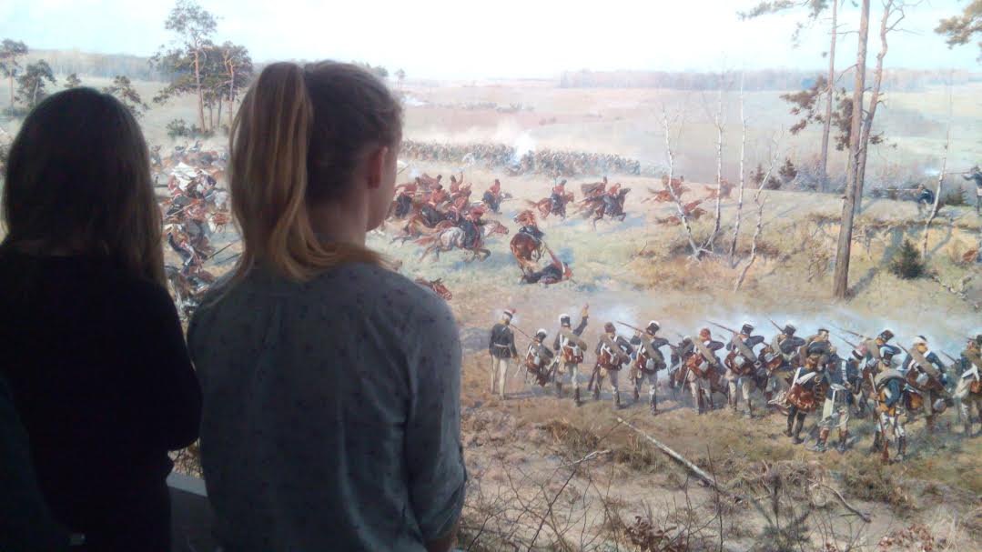 12 grudnia klasa trzecia gimnazjum wybrała się pociągiem na wycieczkę do Wrocławia. Udaliśmy się tam by podziwiać relikt dziewiętnastowiecznej kultury masowej, czyli PANORAMĘ RACŁAWICKĄ. Z dworca PKP udaliśmy się pieszo na ul. Jana Ewangelisty Purkyniego 11, gdzie znajduje się rotunda, a w niej wielkie malowidło o wymiarach 15m x 114m. Ponieważ do godziny zwiedzania pozostało nam sporo czasu skorzystaliśmy z okazji i zwiedziliśmy znajdujące się nieopodal MUZEUM NARODOWE. Obejrzeliśmy cztery wystawy stałe tamtejszego muzeum a mianowicie: SZTUKA ŚLĄSKA XII–XVI w.; SZTUKA ŚLĄSKA XVI – XIX w.; SZTUKA EUROPEJSKA XV-XX w.; SZTUKA POLSKA XVII – XIX w. oraz jedną z wystaw czasowych: „Skarb średzki”. Na więcej niestety nie starczyło nam czasu. Udaliśmy się więc do budynku w którym znajduje się Panorama Racławicka. Byliśmy wszyscy pod ogromnym wrażeniem tego monumentalnego dzieła. Z zaciekawieniem słuchaliśmy historii jego powstania oraz późniejszych dziejów. Po zakończeniu zwiedzania udaliśmy się na wrocławski rynek, gdzie odbywał się jarmark świąteczny. Po drobnych zakupach udaliśmy się w drogę powrotną do Chróścic. Dzień był pełen wrażeń i jak zwykle miło spędziliśmy wspólnie czas na nauce i rozrywce.
