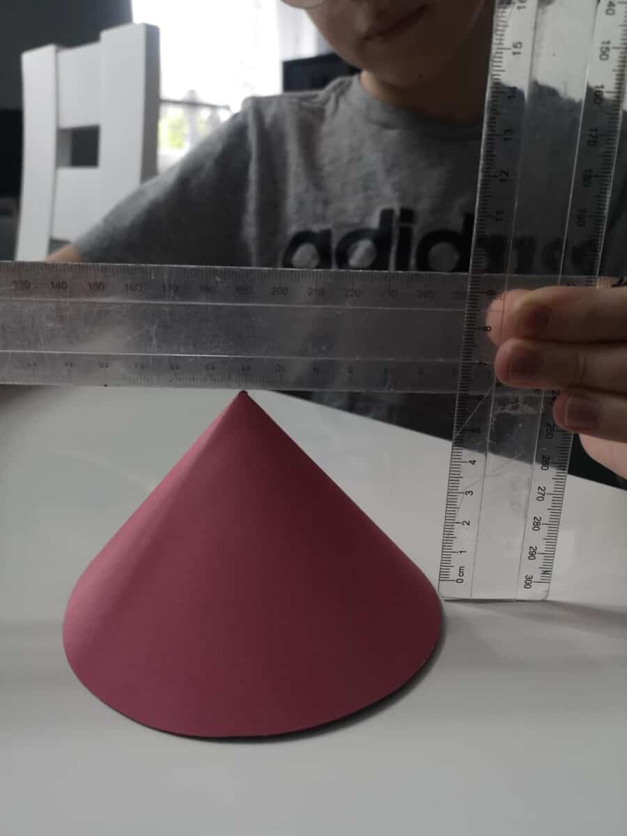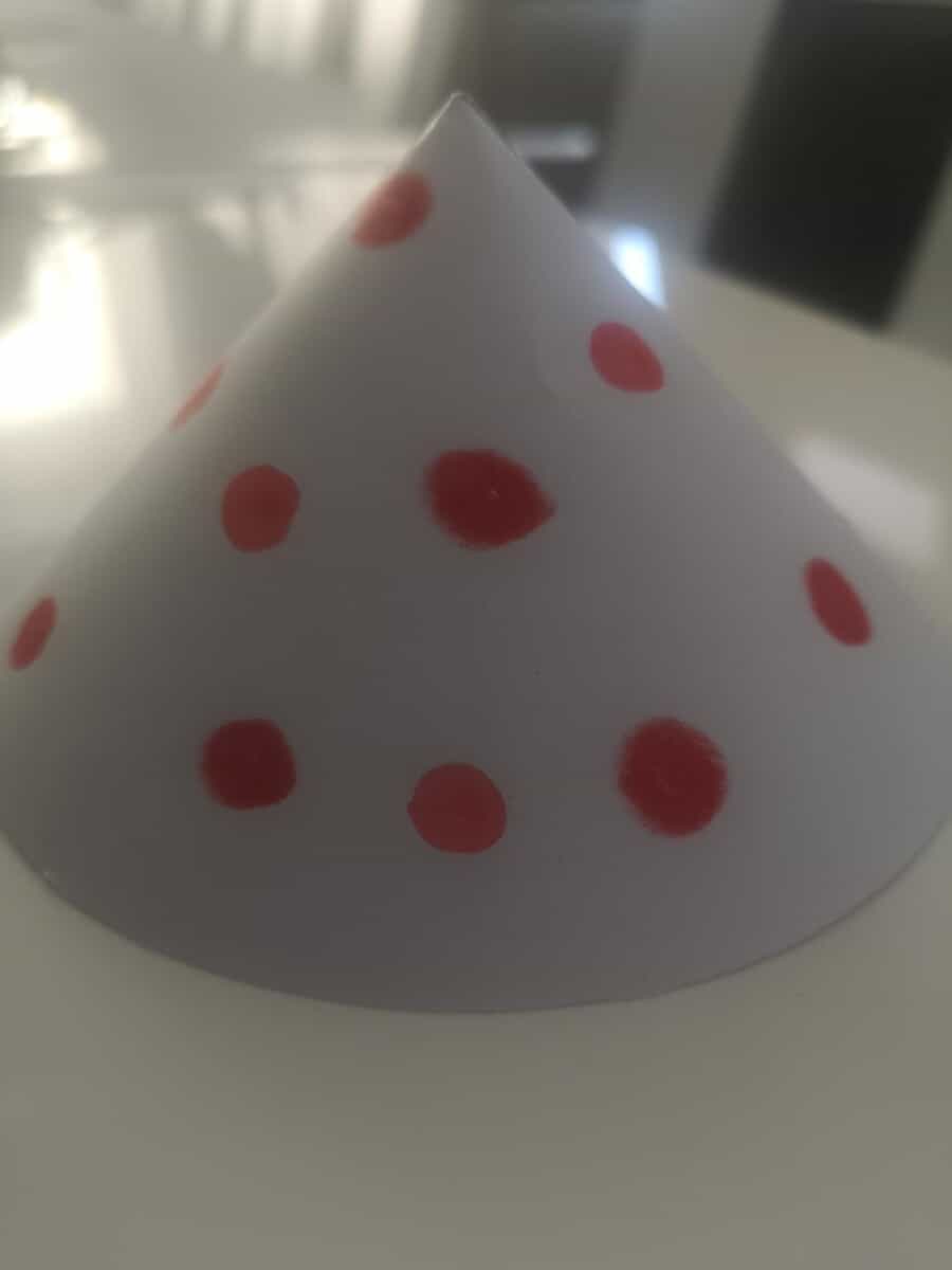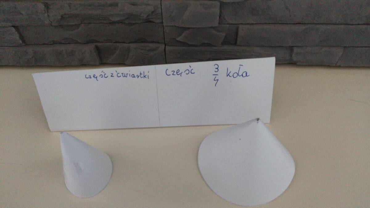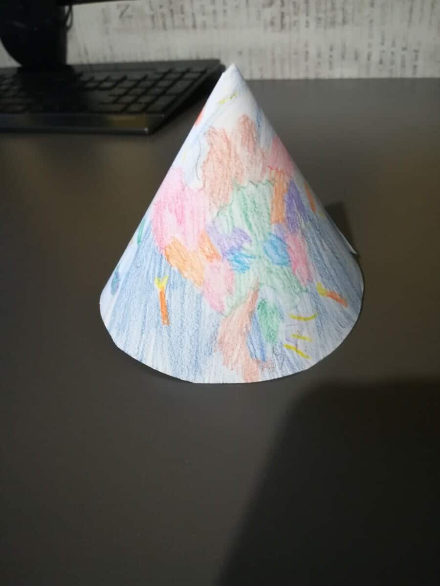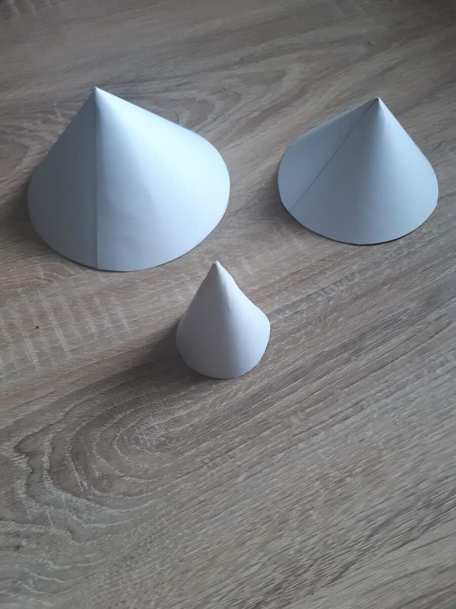 Klasa 6b w ramach zadania domowego, odkrywała różne formy stożka – w tym zadaniu jako czapeczki urodzinowej oraz z wycinków różnych części koła. Oto niektóre zdjęcie z ich matematycznego doświadczenia . Można zauważyć, że podstawą stożka jest koło a jego ściana boczna to “Pac-Man” –  komputerowa gra zręcznościowa stworzona przez przedsiębiorstwo Namco, wydana po raz pierwszy w 1980 roku !