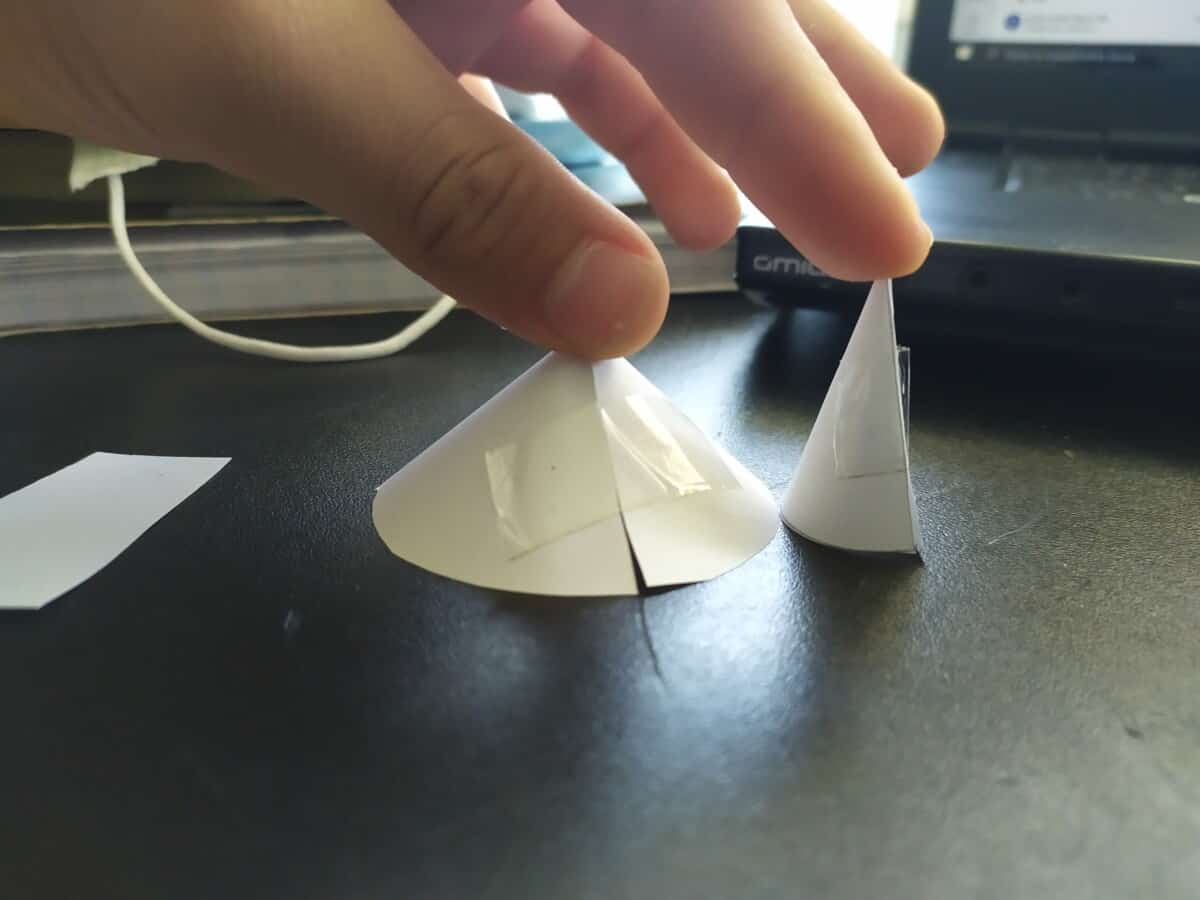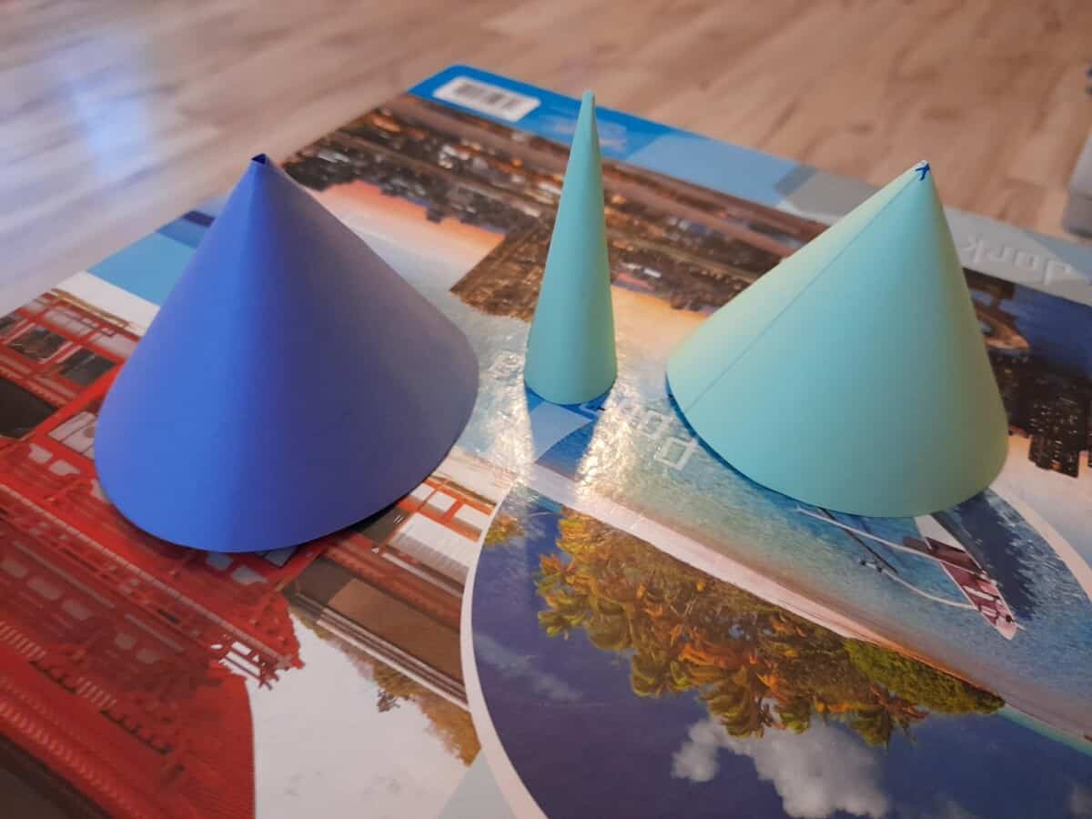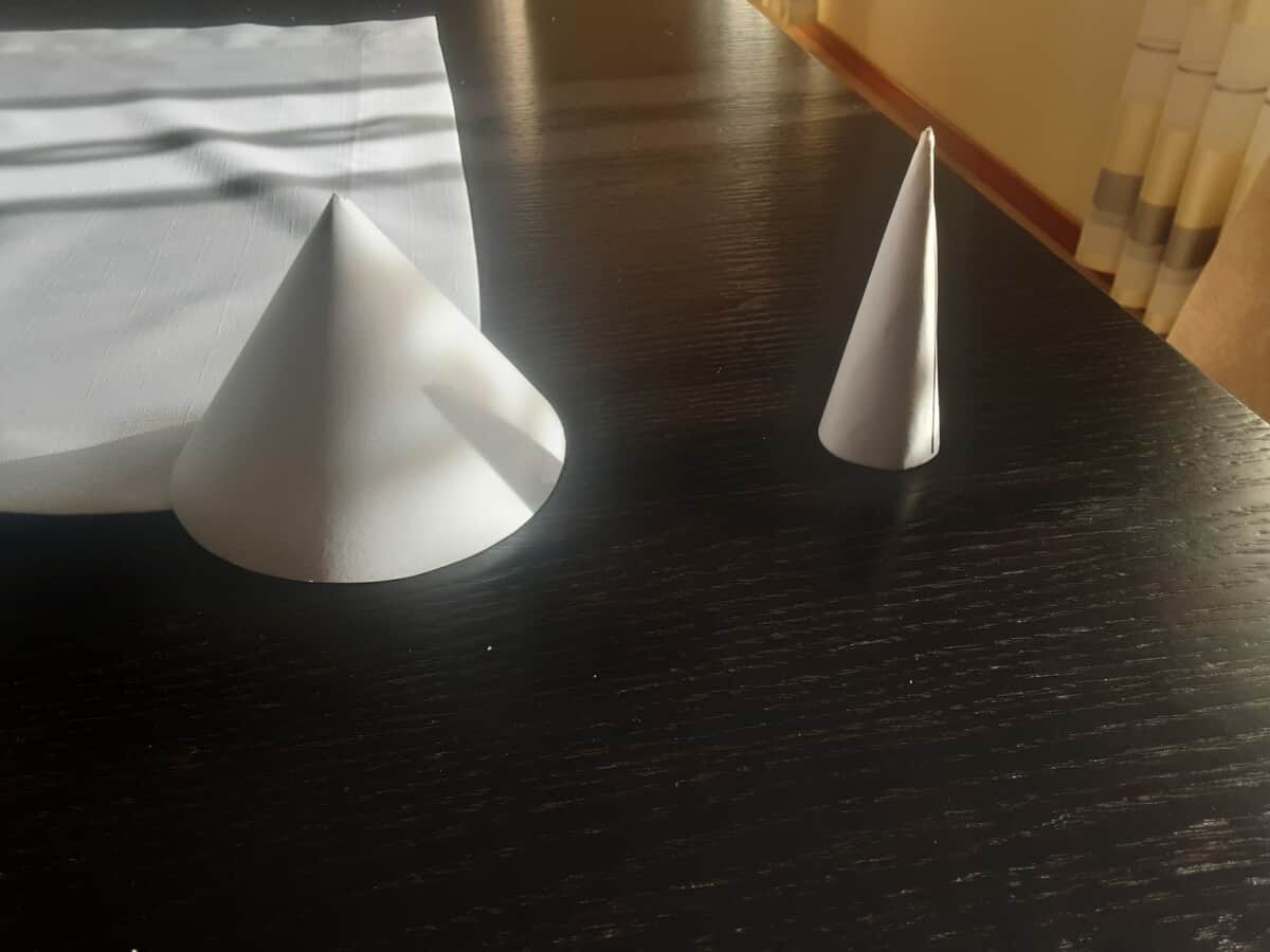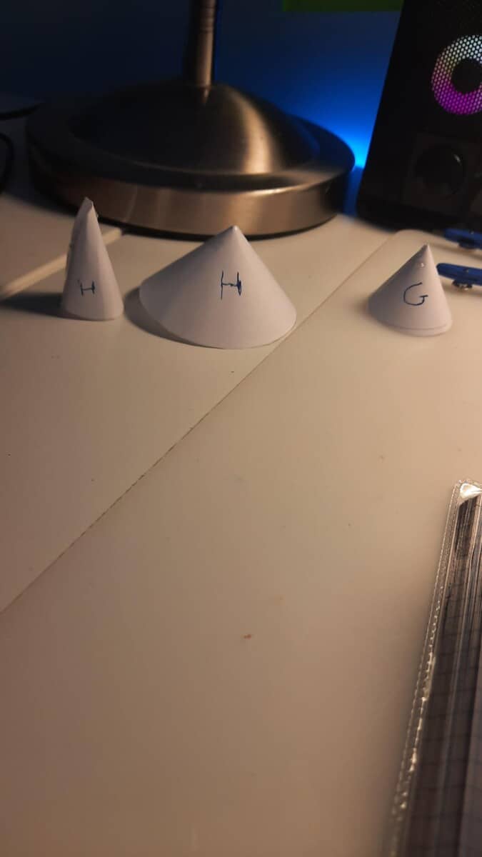 Klasa 6b w ramach zadania domowego, odkrywała różne formy stożka – w tym zadaniu jako czapeczki urodzinowej oraz z wycinków różnych części koła. Oto niektóre zdjęcie z ich matematycznego doświadczenia . Można zauważyć, że podstawą stożka jest koło a jego ściana boczna to “Pac-Man” –  komputerowa gra zręcznościowa stworzona przez przedsiębiorstwo Namco, wydana po raz pierwszy w 1980 roku !