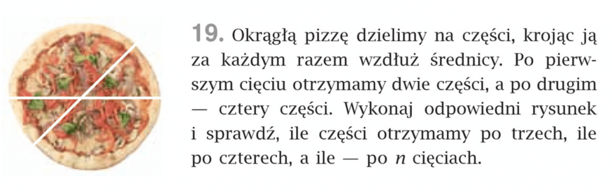 Warto robić doświadczenia. Dzięki nim wiele odkryto. Julia Smolińska z klasy 6b postanowiła wykonać zadanie 19 z tematu “Zapisywanie wyrażeń algebraicznych w praktyce ” . Skoro 1 cięcie daje 2 kawałki ….. 2 cięcia – 4 kawałki …. 3 cięcia  – 6 kawałków …. to faktycznie n cięć to 2n kawałków !