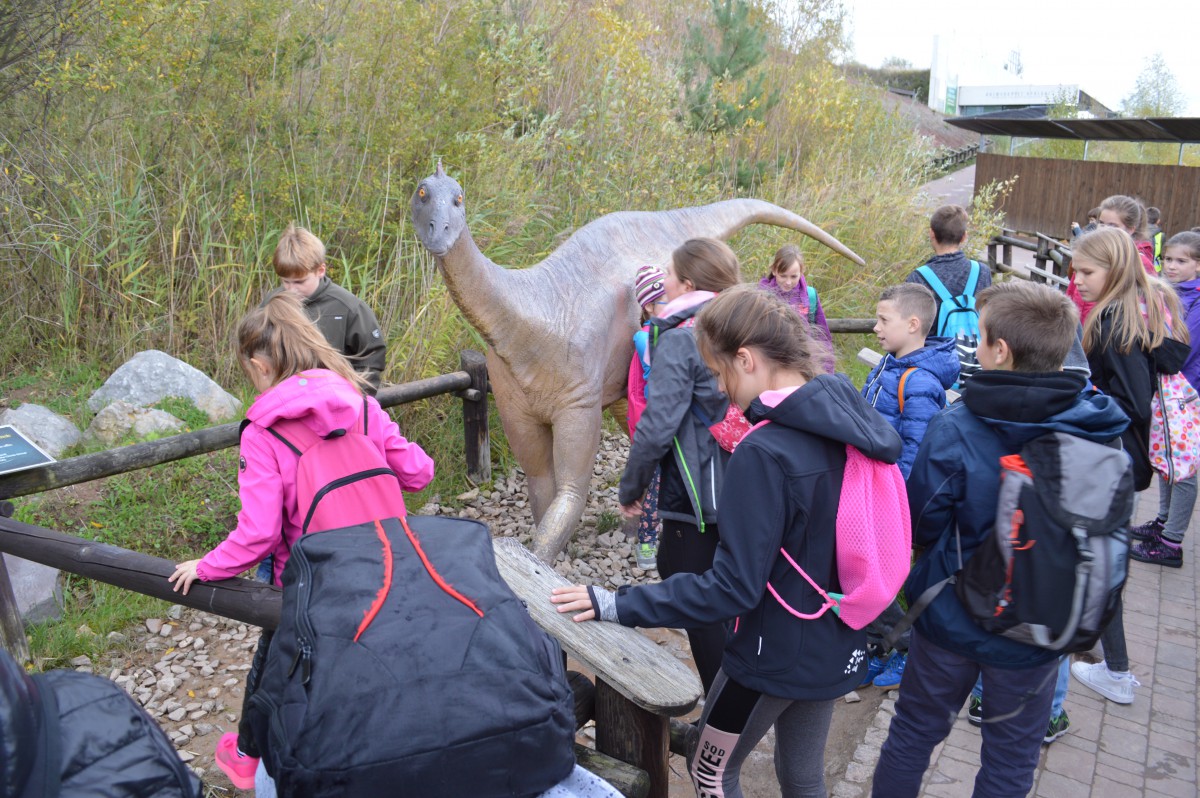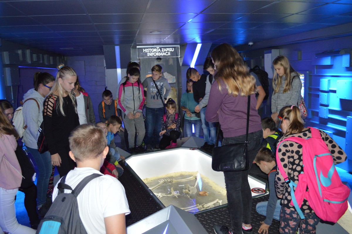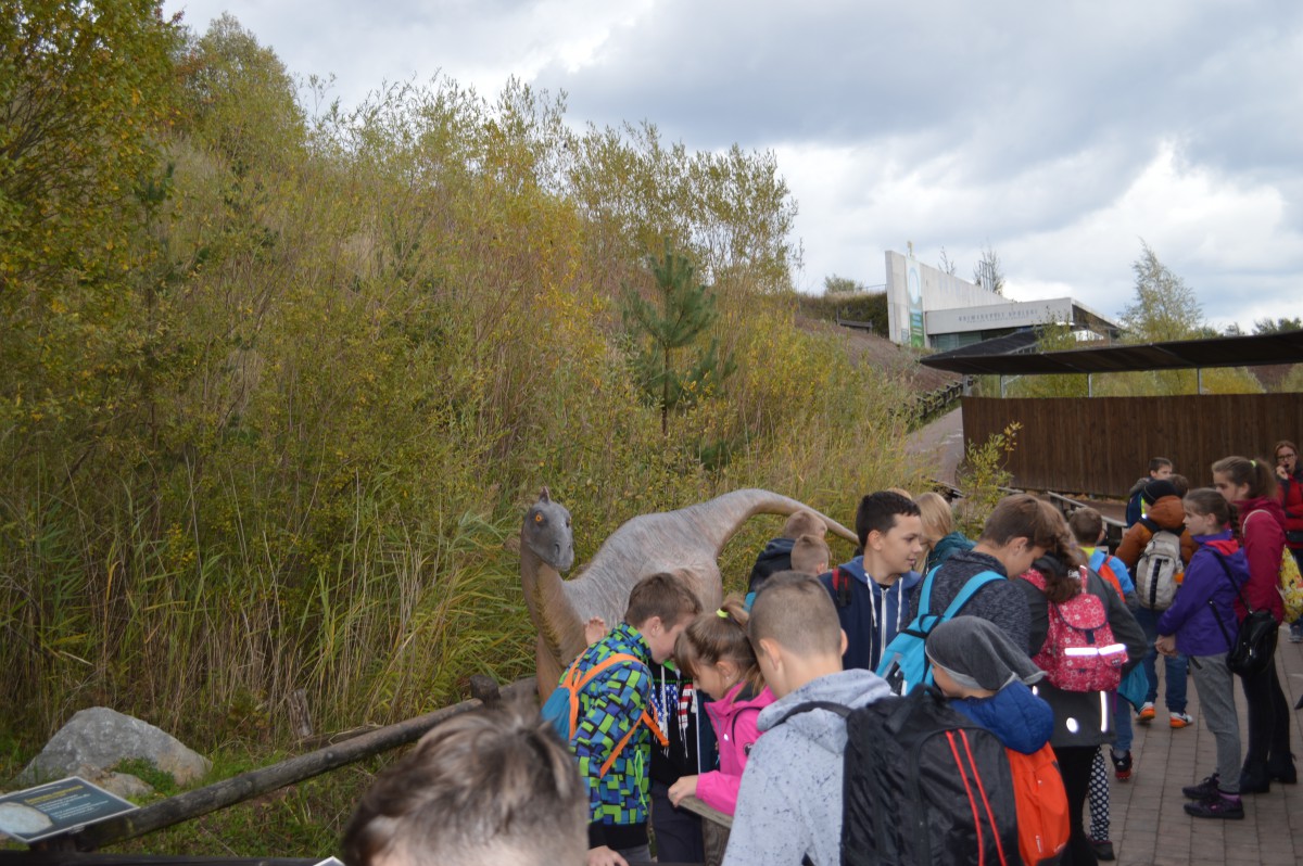 W środę 4 października uczniowie klas Va, Vb, oraz VII wraz z opiekunami udali się na pełen wrażeń wyjazd do Parku Nauki i Ewolucji Człowieka w Krasiejowie. Była to kontynuacja zajęć wyjazdowych w ramach projektu Sekrety Nauki 9.1.2 współfinansowanego ze środków EFS. Na sam początek uczniowie zapoznali się z ekspozycjami:Rozwój Noża,Rozwój Naczyń, Rozwój Pisma, Grobowiec.Kolejnym punktem zwiedzania były Okna Prehistorii. Nie zabrakło też podróży promem kosmicznym. Wehikuł czasu pozwolił odczuć na własnej skórze powiew przeszłości. Uczniowie zwiedzili także oceanarium prehistoryczne i pawilon paleontologiczny. Przed powrotem do domu na wszystkich czekał obfity obiad.