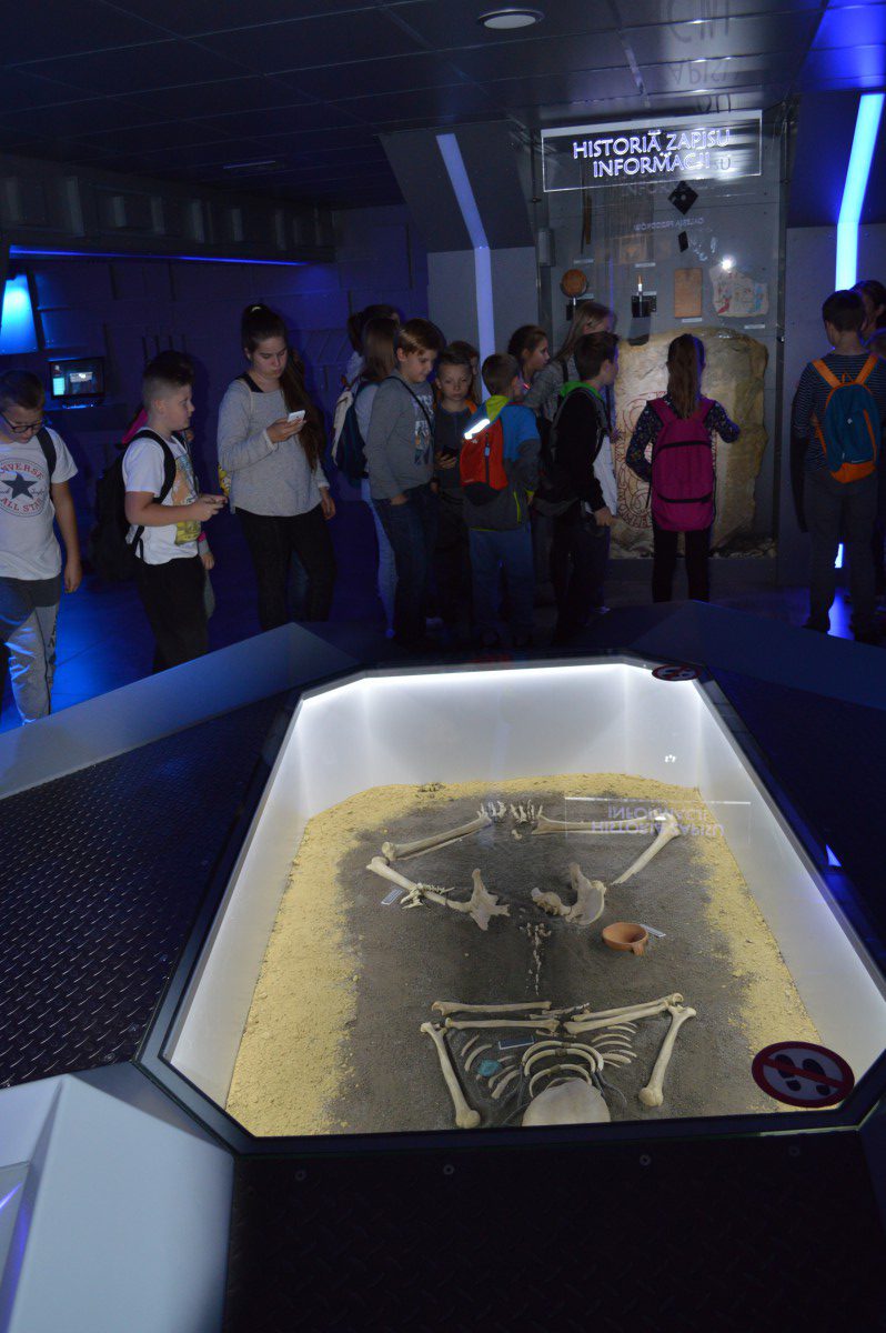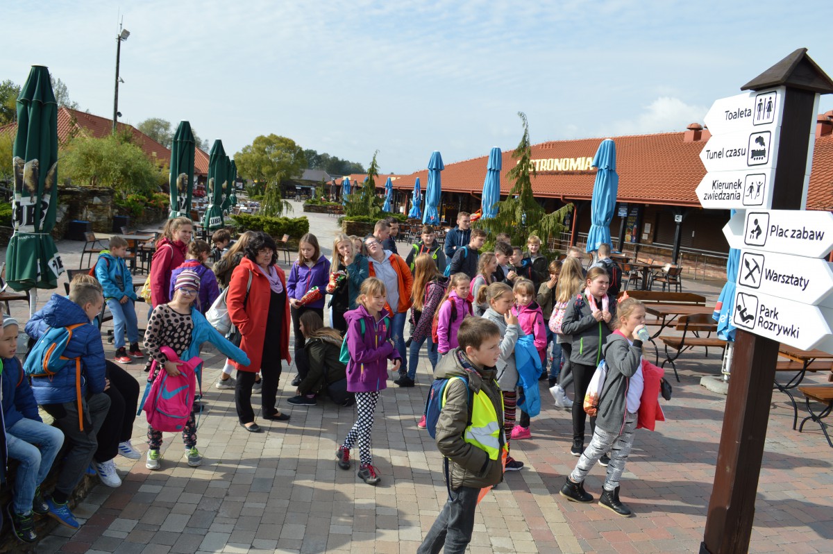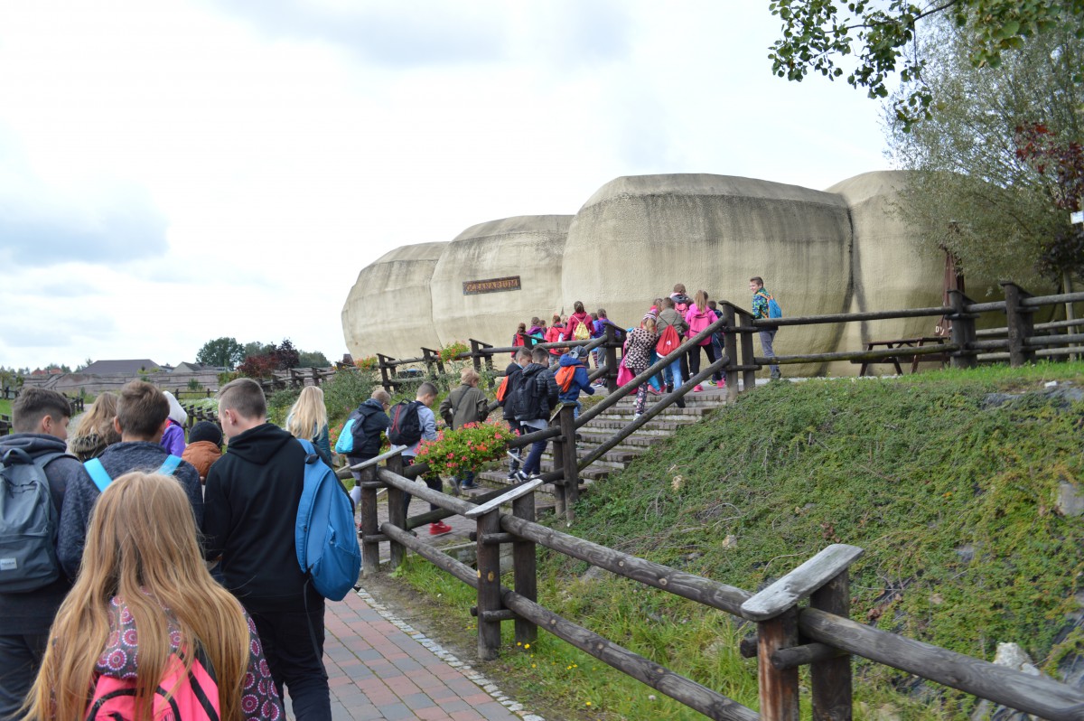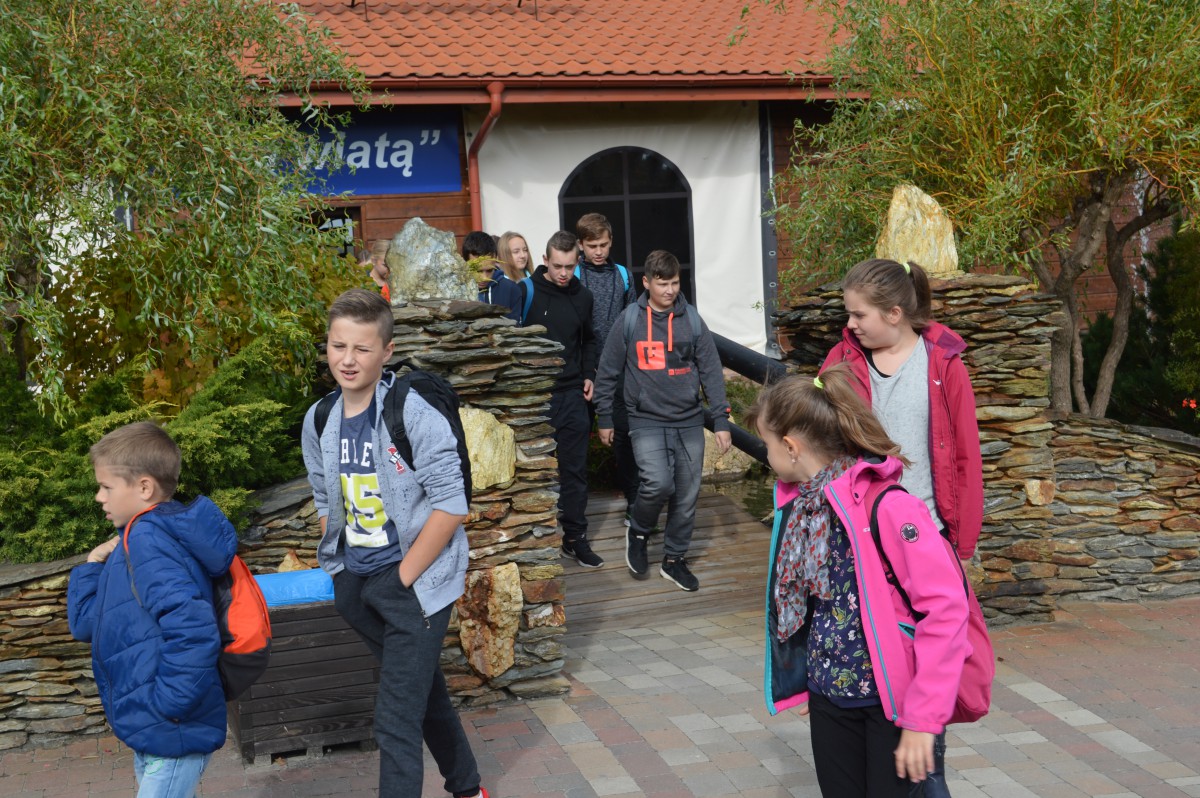 W środę 4 października uczniowie klas Va, Vb, oraz VII wraz z opiekunami udali się na pełen wrażeń wyjazd do Parku Nauki i Ewolucji Człowieka w Krasiejowie. Była to kontynuacja zajęć wyjazdowych w ramach projektu Sekrety Nauki 9.1.2 współfinansowanego ze środków EFS. Na sam początek uczniowie zapoznali się z ekspozycjami:Rozwój Noża,Rozwój Naczyń, Rozwój Pisma, Grobowiec.Kolejnym punktem zwiedzania były Okna Prehistorii. Nie zabrakło też podróży promem kosmicznym. Wehikuł czasu pozwolił odczuć na własnej skórze powiew przeszłości. Uczniowie zwiedzili także oceanarium prehistoryczne i pawilon paleontologiczny. Przed powrotem do domu na wszystkich czekał obfity obiad.