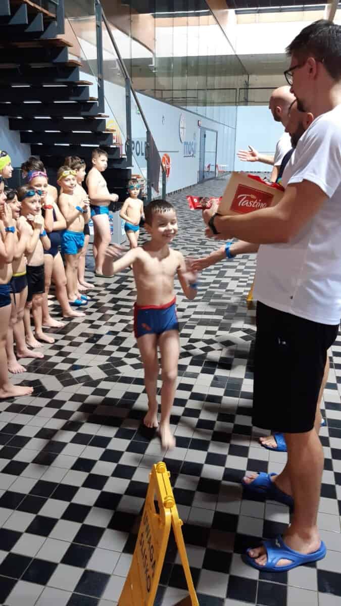 19 listopada 2021 roku dobiegł końca kolejny etap ministerialnego projektu powszechnej nauki pływania „ Umiem Pływać 2021”. Uczniowie klas II-III Szkoły Podstawowej w Chróścicach w liczbie 25 uczestników pod opieką nauczycieli Pani Sabiny Lazik-Wodarz i Pana Mateusza Młynka przeszli kurs nauki pływania w ramach kolejnego etapu programu powszechnej nauki pływania ,,Umiem pływać” . Zajęcia sportowe dla dzieci zostały zorganizowane i przeprowadzone na pływalni „Wodna Nuta” w Opolu. Nauka pływania była bezpłatna i trwała od 10 września do 19 listopada br. Organizatorem projektu jest Wojewódzkie Zrzeszenie LZS i Ministerstwo Sportu i Turystyki (połowa kosztów pochodzących z projektu pokrywa Gmina Dobrzeń Wielki). Głównym celem zajęć było upowszechnianie aktywności fizycznej dzieci w środowisku wodnym oraz nabywanie przez nie podstawowych umiejętności pływania, a także uświadomienie dzieciom i rodzicom korzyści zdrowotnych, jakie pociąga za sobą nauka tej ważnej umiejętności. W czasie 10 godzin zajęć na basenie pod kierunkiem 4 instruktorów uczniowie poznawali tajniki umiejętności pływackich. Dzieci bardzo chętnie i aktywnie uczestniczyły w zajęciach, z niecierpliwością czekały na kolejny wyjazd i ze smutkiem żegnały się po zakończeniu lekcji. Udział w tym projekcie dał dzieciom nie tylko możliwość nauki pływania, ale także aktywnego spędzania czasu wolnego i wspaniałej zabawy. Ćwiczenia w formie zabawowej dostarczały wiele radości i satysfakcji. Zajęcia na basenie rozbudziły potrzebę uczestnictwa w tej formie aktywności ruchowej, ucząc, jak w sposób odpowiedzialny i bezpieczny korzystać z basenu i innych akwenów wodnych. Udział w zajęciach umożliwił także nabycie podstawowych umiejętności pływania, rozwijania i podnoszenia sprawności fizycznej, zapobiegania wadom postawy, zachęcił także wychowanków do systematycznego uprawiania sportu w czasie wolnym od nauki i aktywnego stylu życia. Wspólne wyjazdy integrowały uczniów, zaangażowały także do wspólnych działań rodziców. Korzyści płynące z udziału w zajęciach to m.in. możliwość rozwijania i podnoszenia sprawności fizycznej, zapobiegania wadom postawy, utrzymanie dobrej kondycji i koordynacji ruchowej.