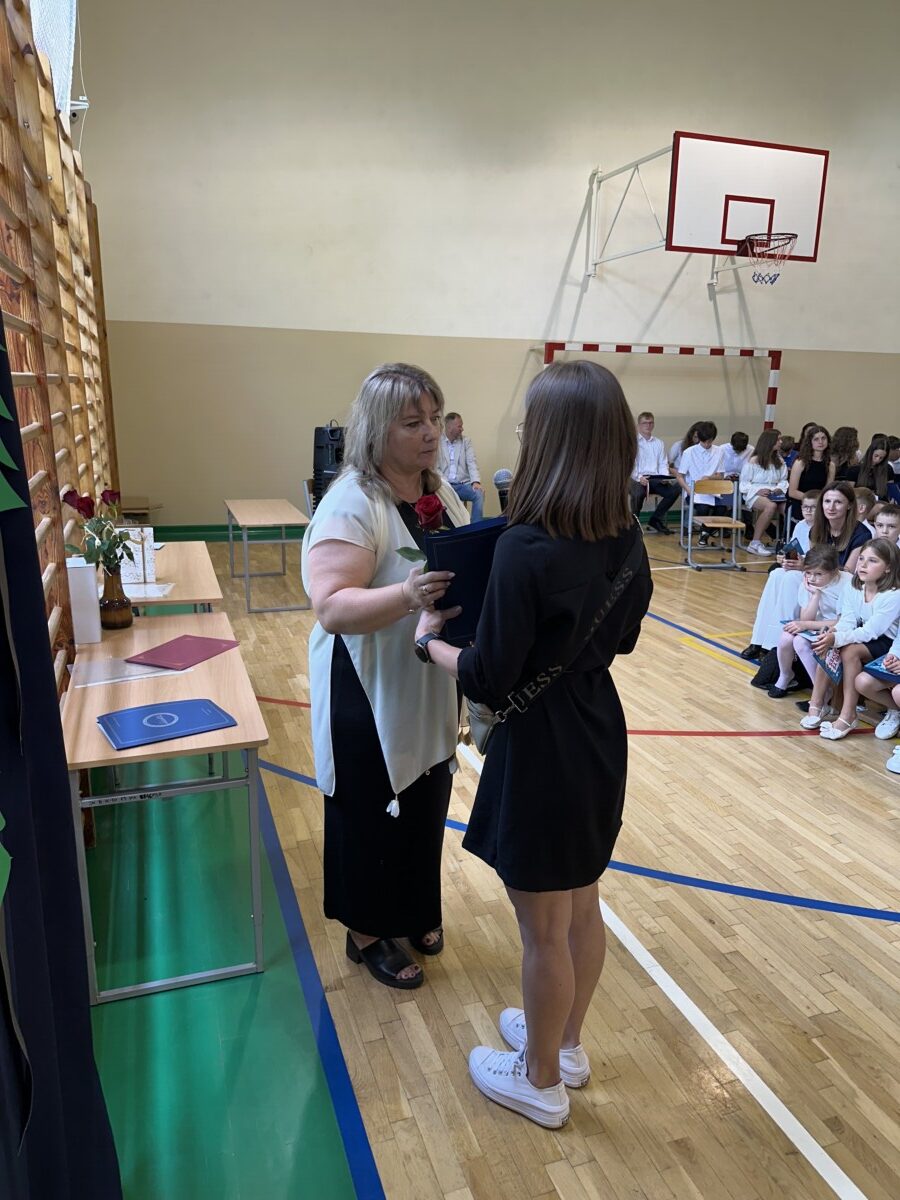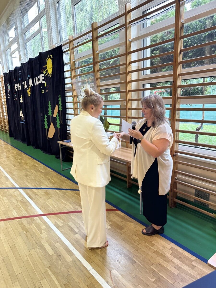 W piątek, 27 czerwca 2025 roku, w Szkole Podstawowej w Chróścicach odbyło się uroczyste zakończenie roku szkolnego. Był to dzień pełen wzruszeń, podsumowań oraz radosnego oczekiwania na wakacje. Uczniowie, nauczyciele, rodzice i pracownicy szkoły zgromadzili się w sali gimnastycznej, by wspólnie zakończyć kolejny etap edukacyjnej podróży. Podczas akademii uczniowie zaprezentowali program artystyczny, a dyrekcja szkoły wręczyła nagrody i dyplomy za wysokie wyniki w nauce, sukcesy sportowe i zaangażowanie w życie szkoły. Szczególnie ciepło pożegnano uczniów klas ósmych, którzy opuszczają mury naszej szkoły i rozpoczynają nowy rozdział w swoim życiu. Tegoroczne zakończenie roku miało wyjątkowy charakter – pożegnaliśmy również kilku nauczycieli, którzy odchodzą na zasłużoną emeryturę lub podejmują nowe wyzwania zawodowe. Pani Dyrektor, w imieniu całej społeczności szkolnej, podziękowała im za lata pracy, oddanie, cierpliwość i pasję, z jaką przekazywali wiedzę kolejnym pokoleniom uczniów. Słowa uznania i serdeczności dopełniły kwiaty, życzenia oraz brawa.
