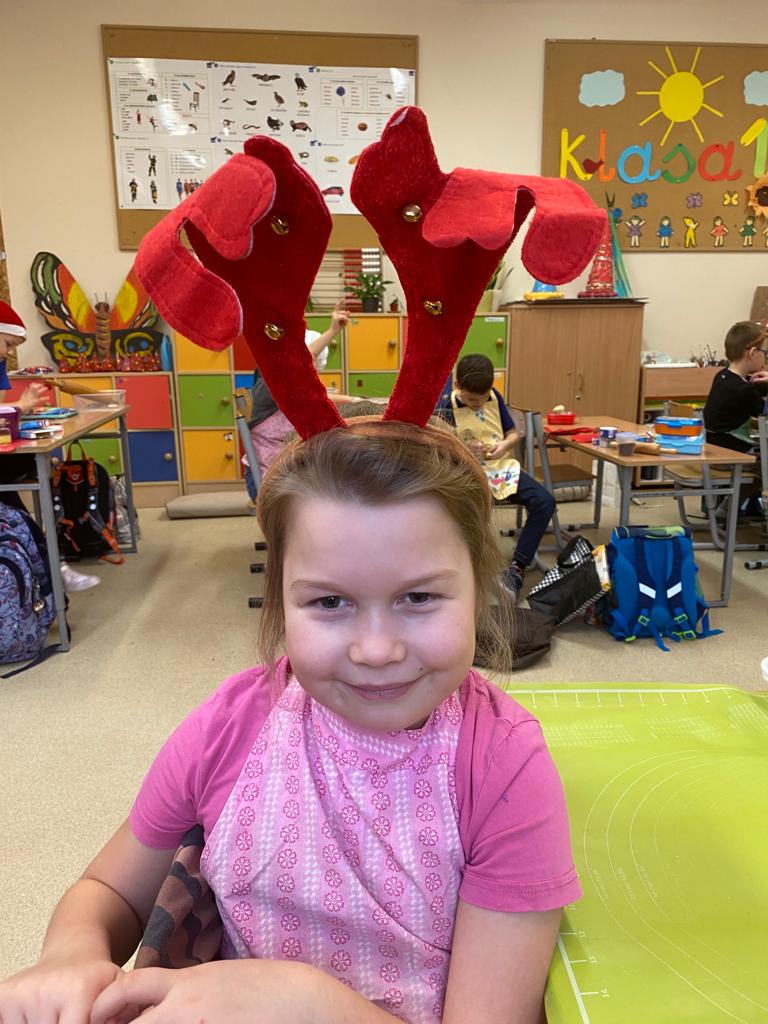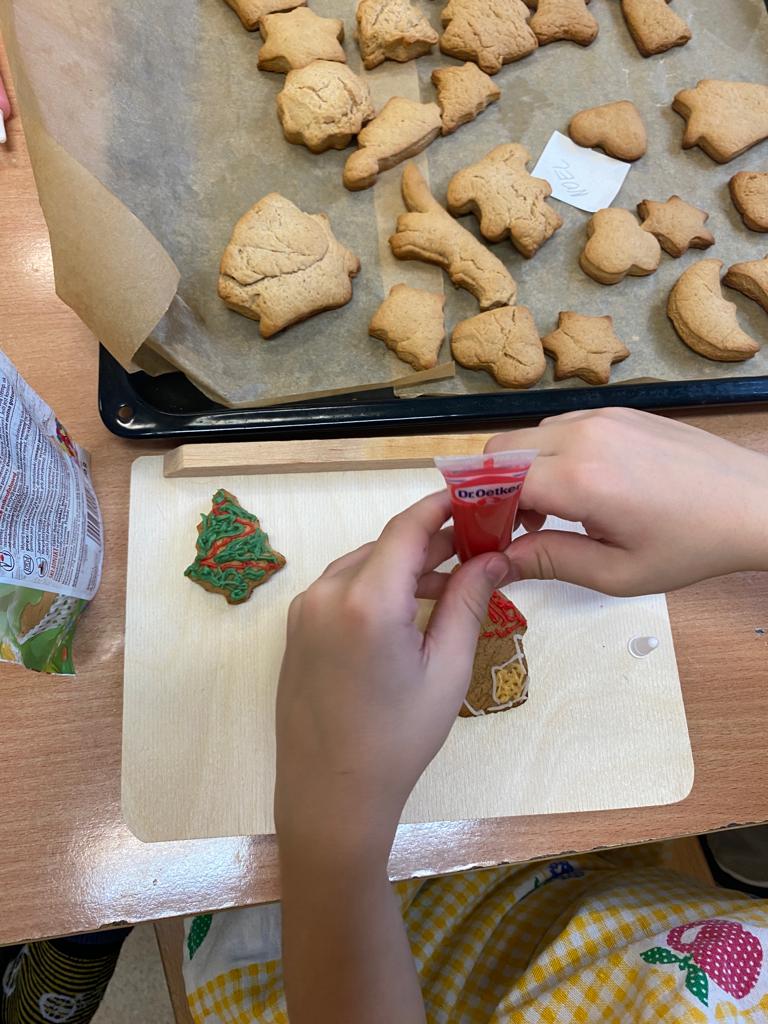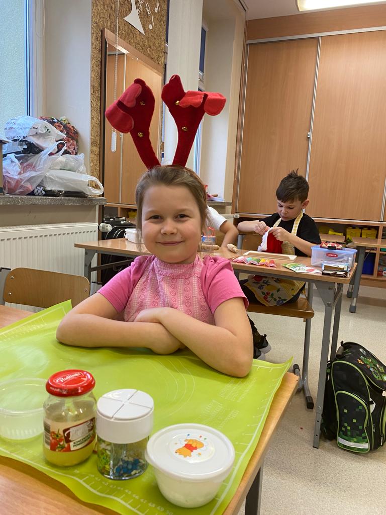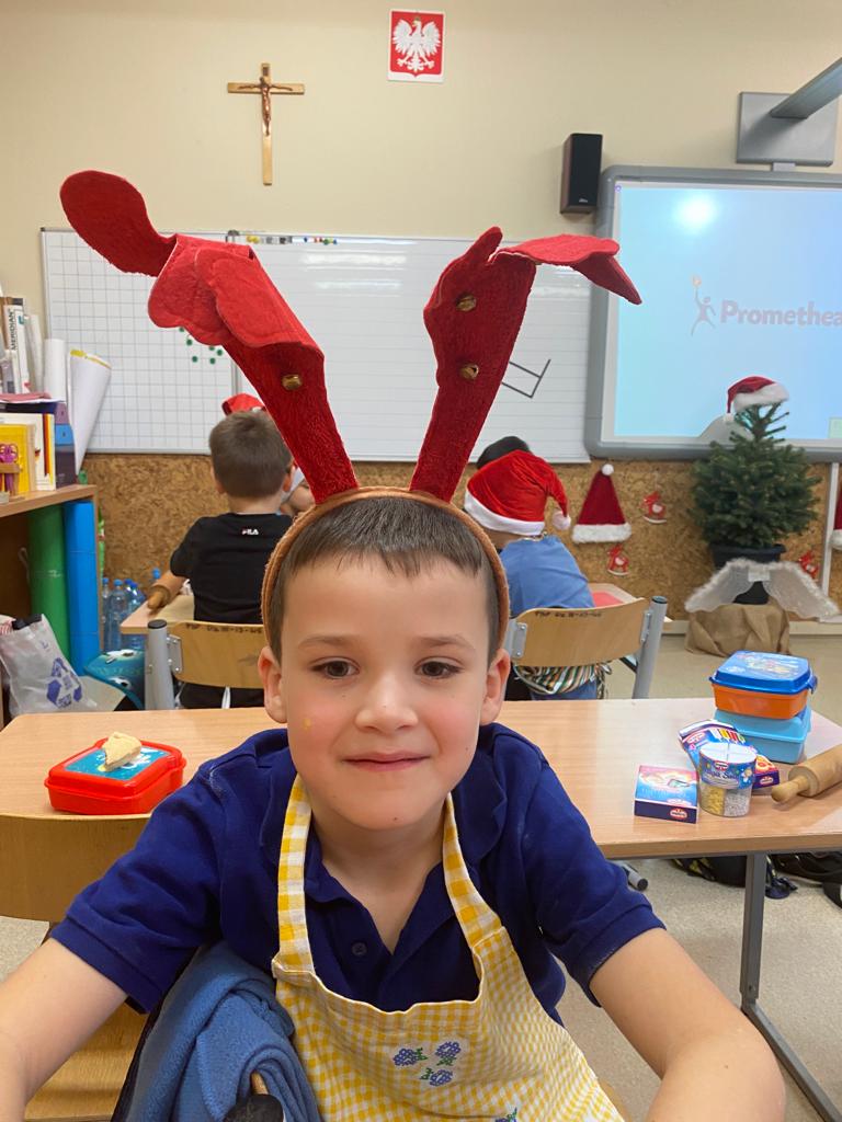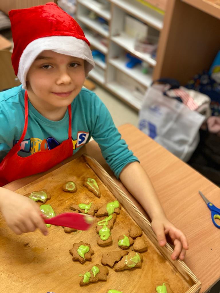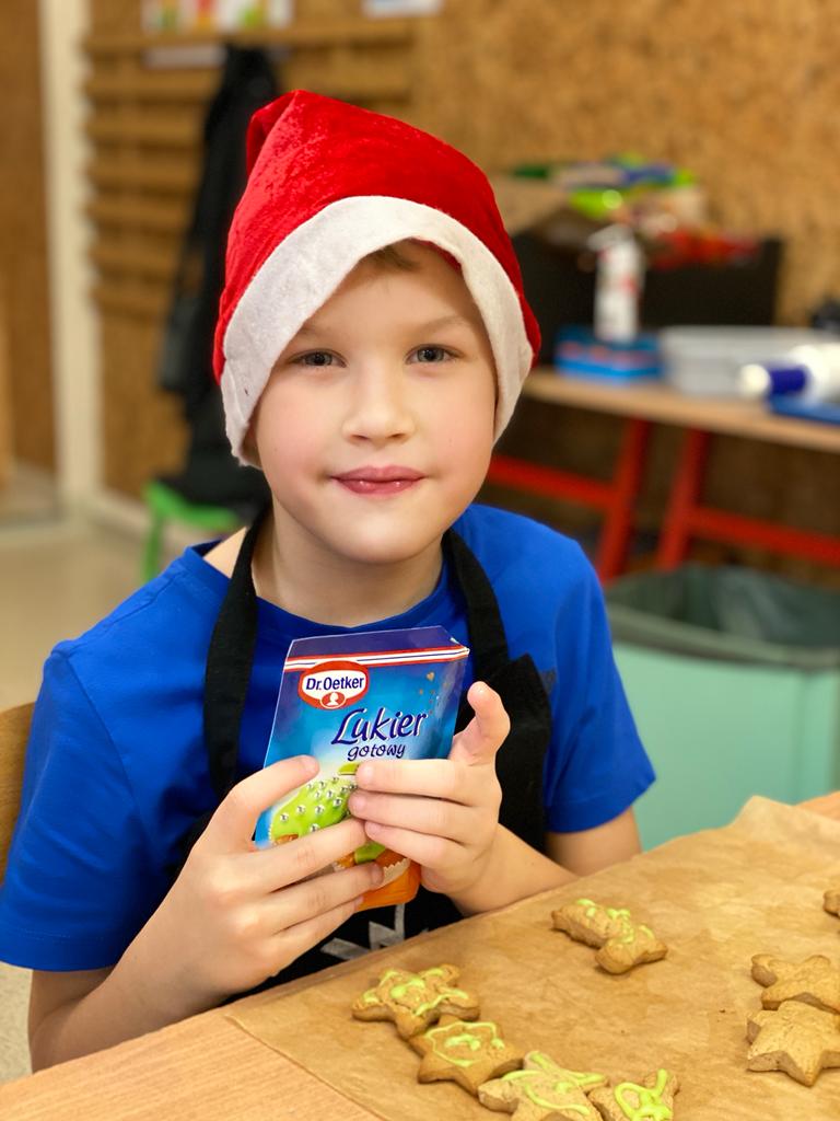 Boże Narodzenie nieodłącznie kojarzy się z zapachem pierników, doprawianych cynamonem, gałką muszkatołową czy imbirem, a wypiekanie ich to niemal rodzinne święto, na które cieszyły się w szczególności dzieci z klasy 1a. Piernik to nic innego jak ciasto wypiekane z mąki pszennej i żytniej, do której uczniowie klasy 1a dodali rozpuszczony, gorący miód, masło i jajka. Z rozwałkowanego ciasta o głębokim, brązowym kolorze uczniowie wykrawali różnorodne kształty, które kojarzą się ze Świętami: bałwanki, renifery, gwiazdki i Mikołaje. Przysmak ten to obok karpia, pierogów i kapusty z grzybami prawdziwy symbol polskich Świąt Bożego Narodzenia.