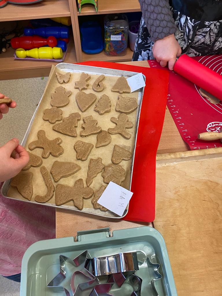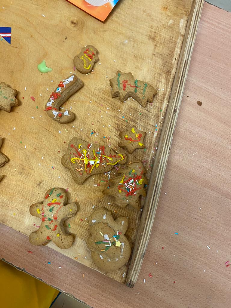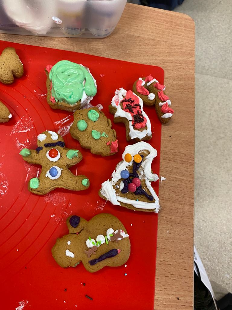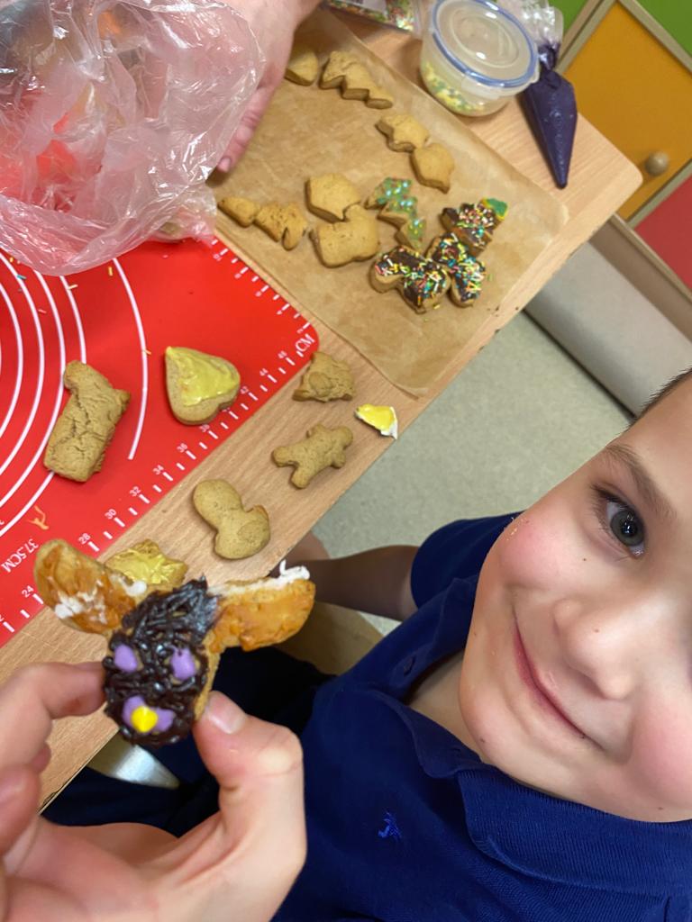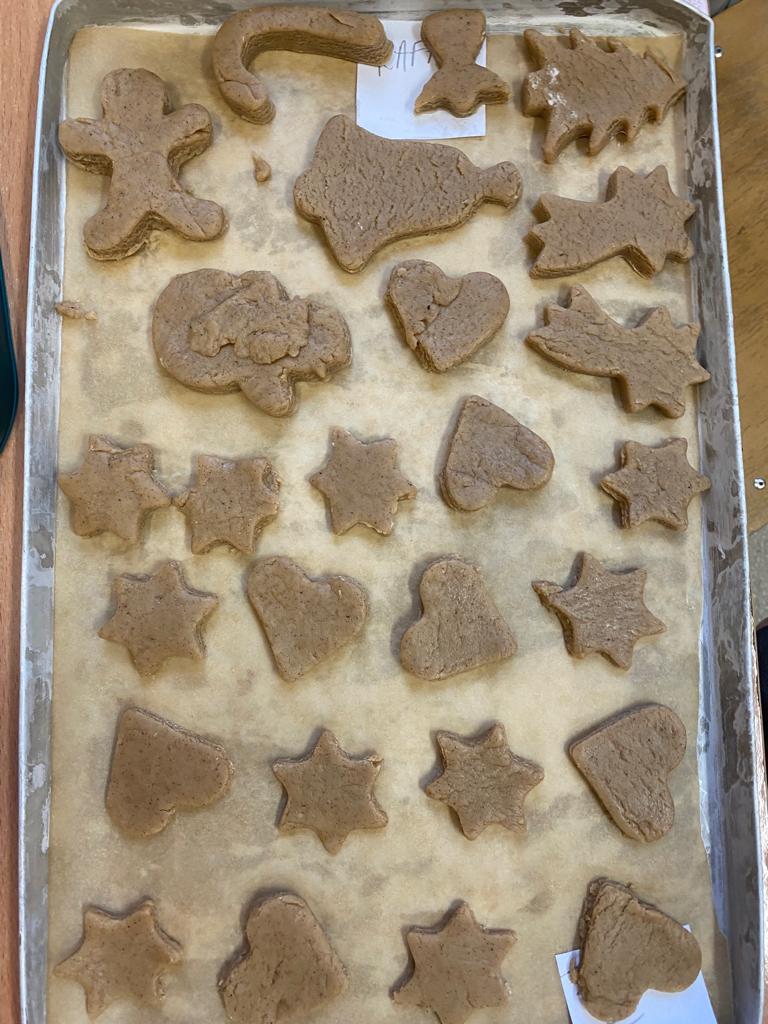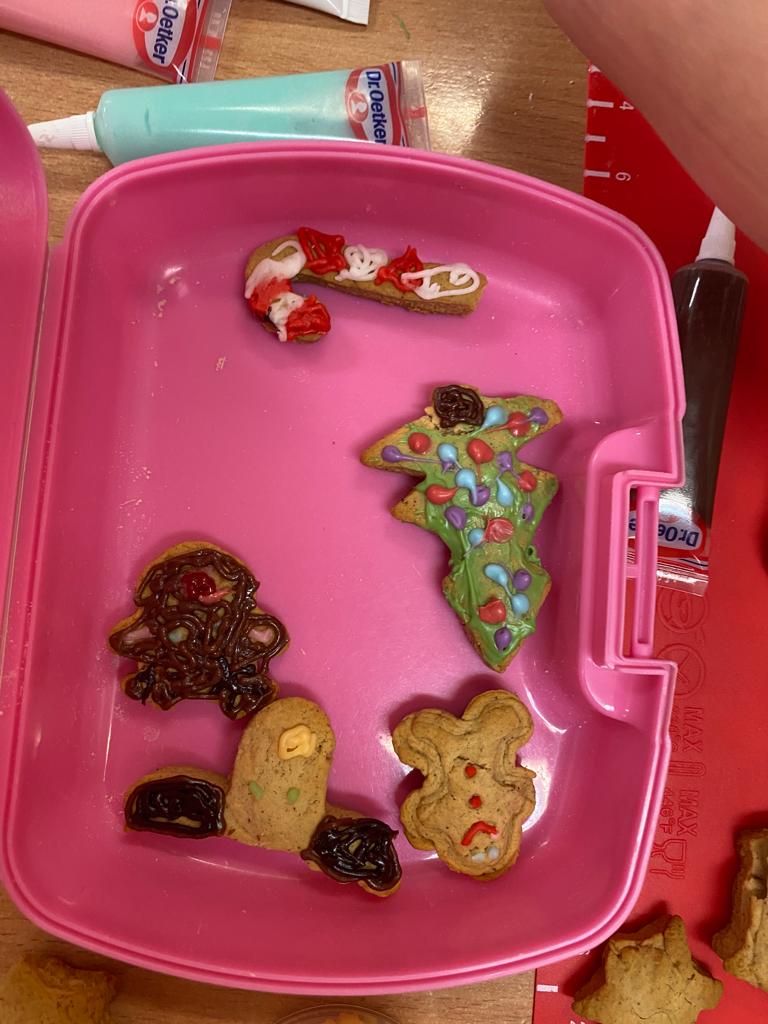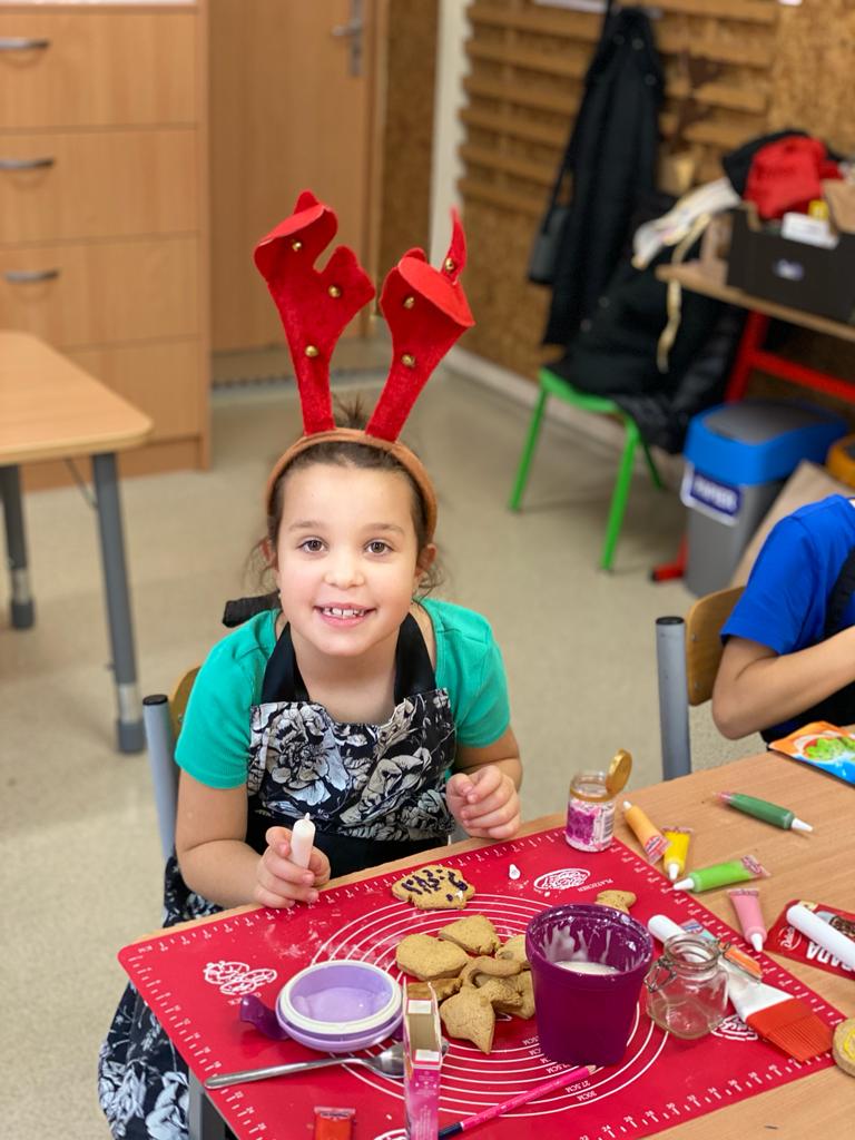 Boże Narodzenie nieodłącznie kojarzy się z zapachem pierników, doprawianych cynamonem, gałką muszkatołową czy imbirem, a wypiekanie ich to niemal rodzinne święto, na które cieszyły się w szczególności dzieci z klasy 1a. Piernik to nic innego jak ciasto wypiekane z mąki pszennej i żytniej, do której uczniowie klasy 1a dodali rozpuszczony, gorący miód, masło i jajka. Z rozwałkowanego ciasta o głębokim, brązowym kolorze uczniowie wykrawali różnorodne kształty, które kojarzą się ze Świętami: bałwanki, renifery, gwiazdki i Mikołaje. Przysmak ten to obok karpia, pierogów i kapusty z grzybami prawdziwy symbol polskich Świąt Bożego Narodzenia.