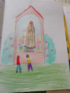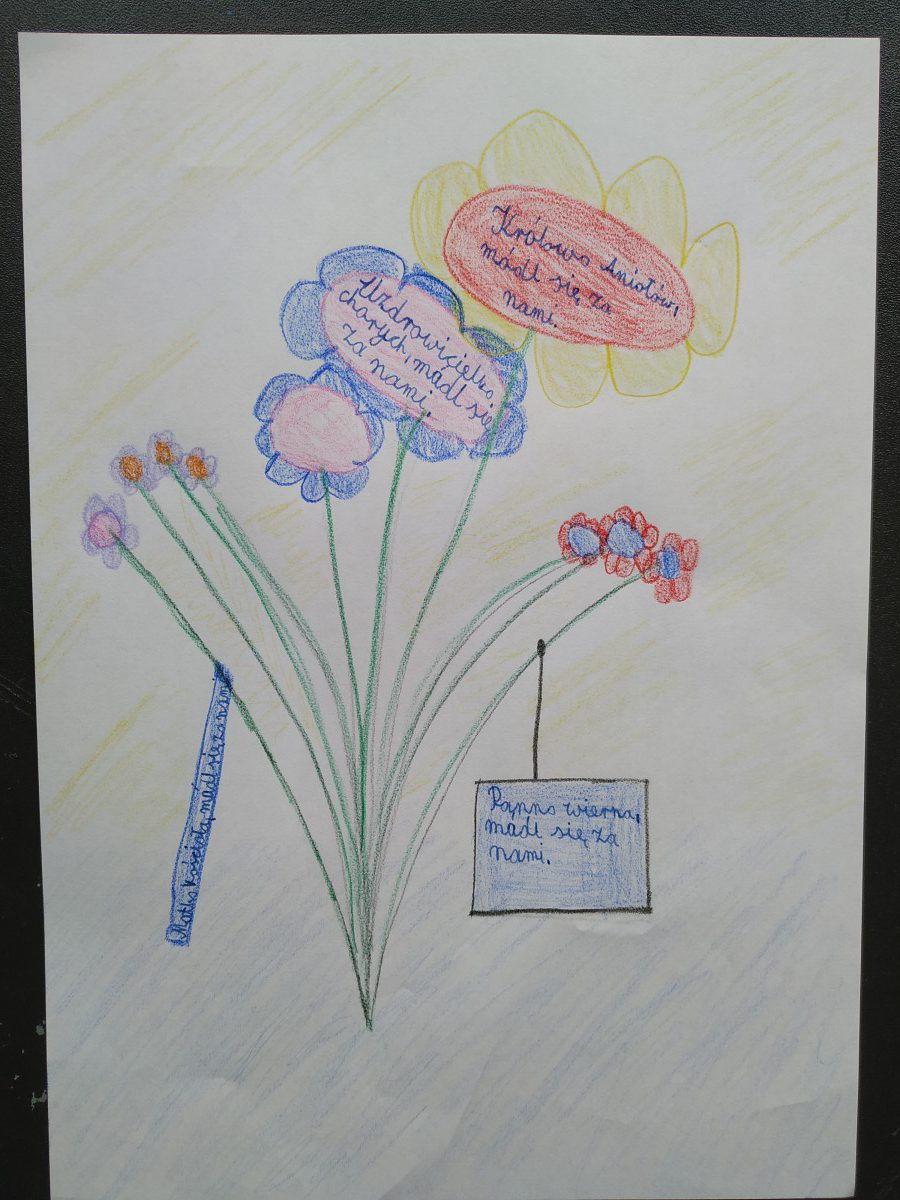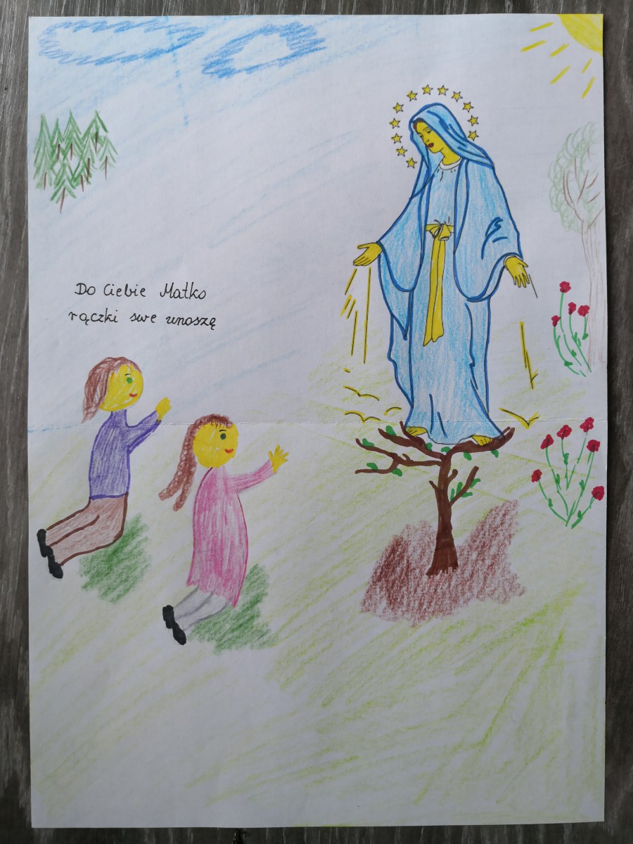 Rozpoczął się piękny majowy miesiąc. Przyroda ożyła w swej pełni, pola i lasy wypełniły się wonią kwiatów, radosnym śpiewem ptaków oraz pieśniami na cześć Maryi. Nasze dzieci na lekcji religii poprzez piękne prace , pokazały jak można oddawać cześć Maryi w miesiącu maju. Zapragnijmy zatem poznać Ją lepiej i pokochać gorąco , bo to Ona w tym trudnym czasie pomaga nam i okrywa swoim płaszczem .